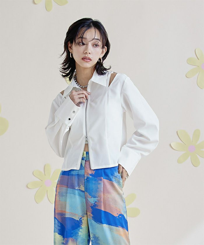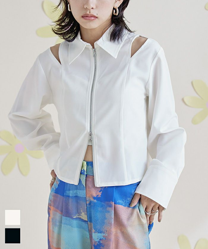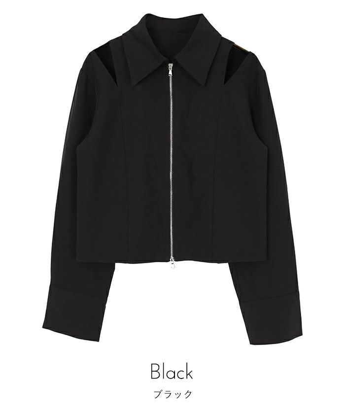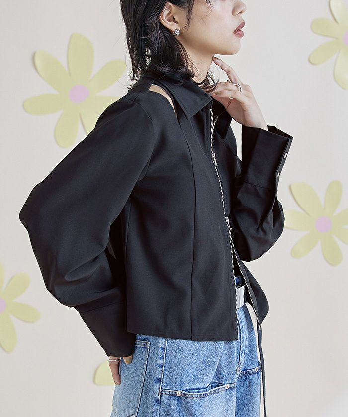 ショルダーカットアウトフロントジップシャツ〔メール便可/100〕