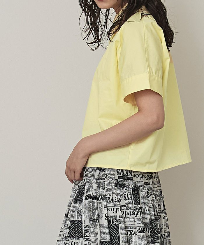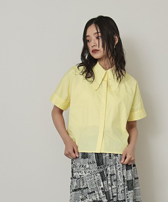 ・パールが施されたビッグカラーがポイントのシャツトップス。