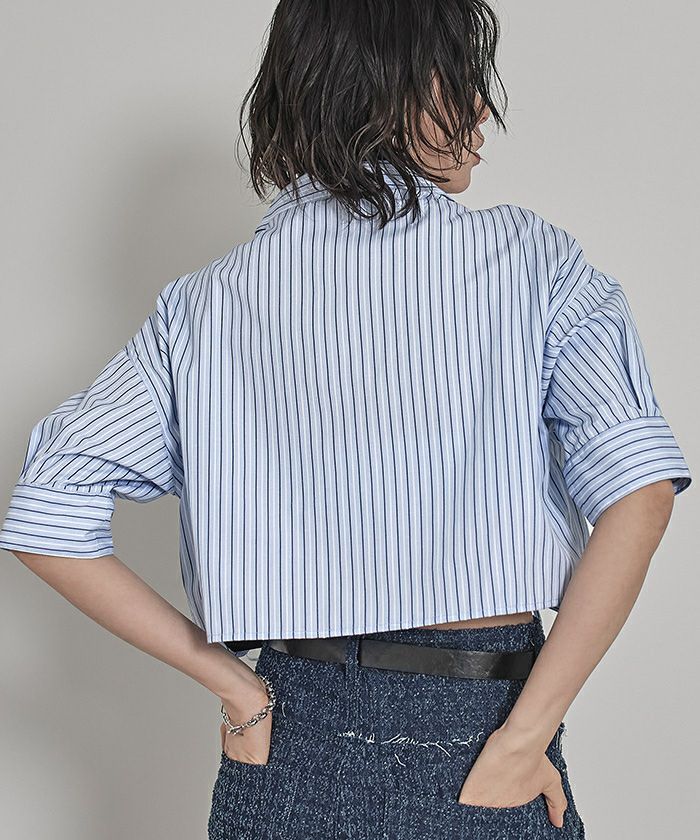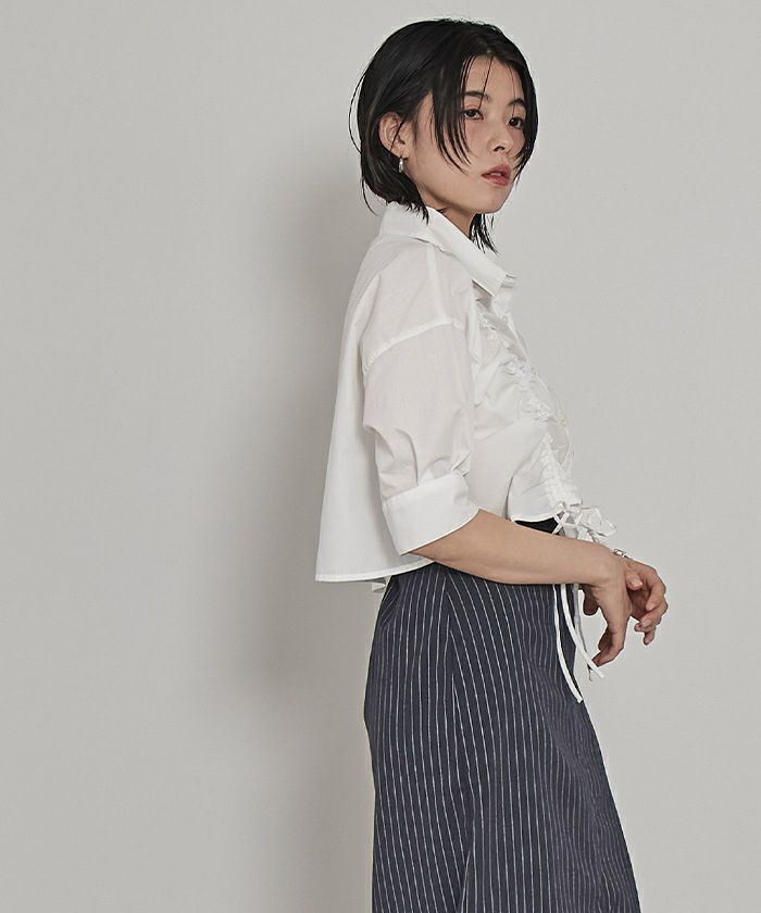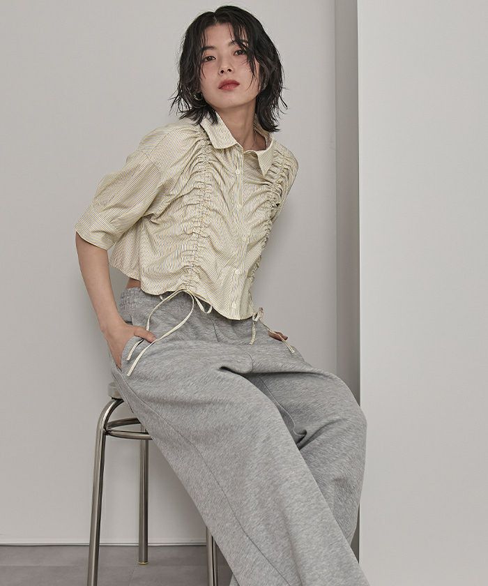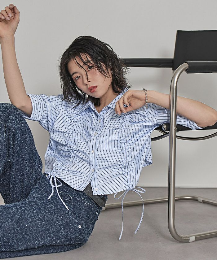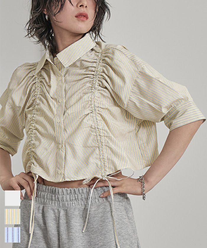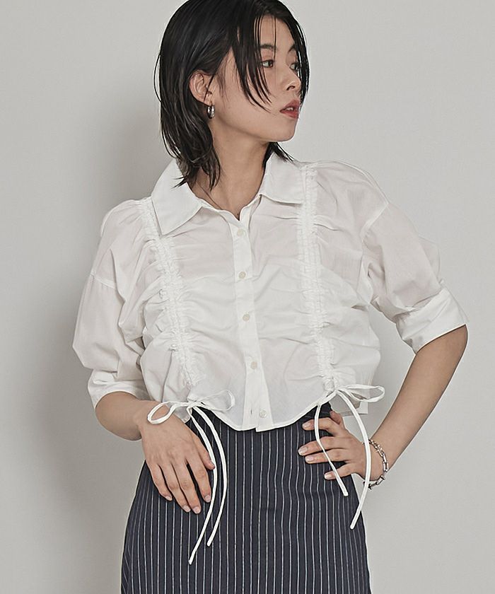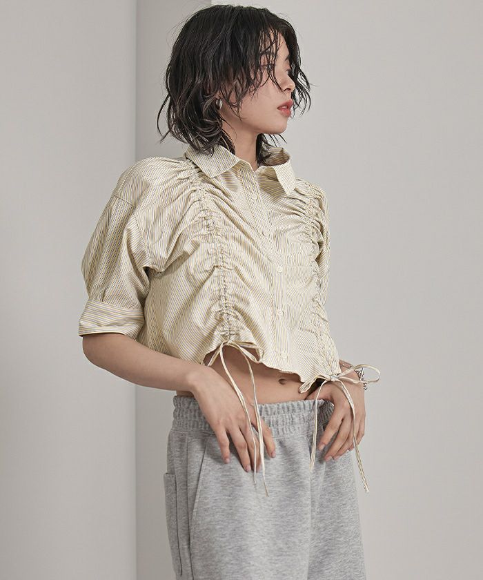 ・フロント部分に施されたシャーリングデザインが魅力のショートシャツ