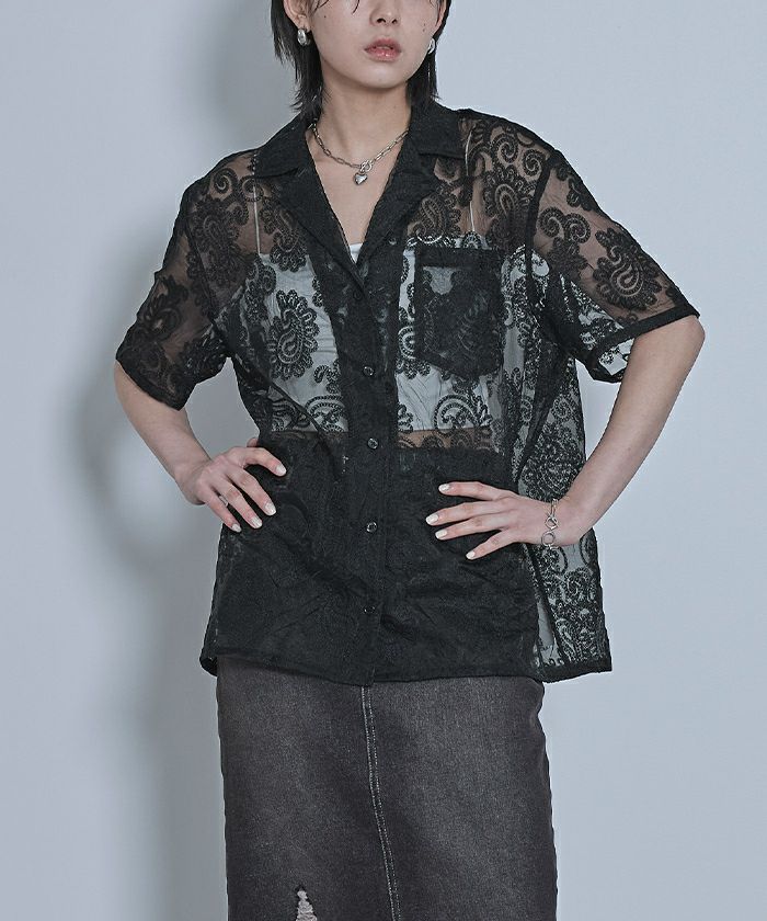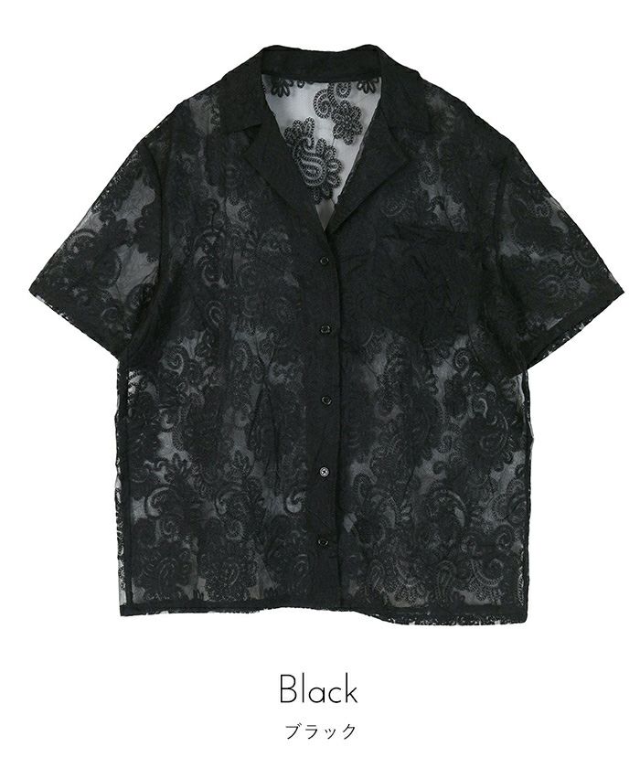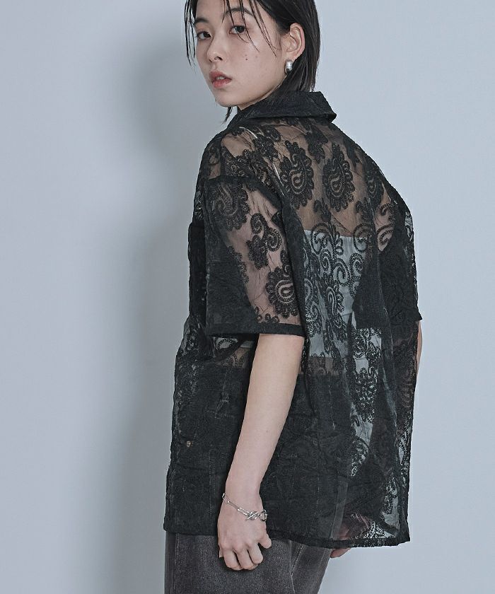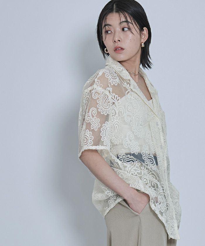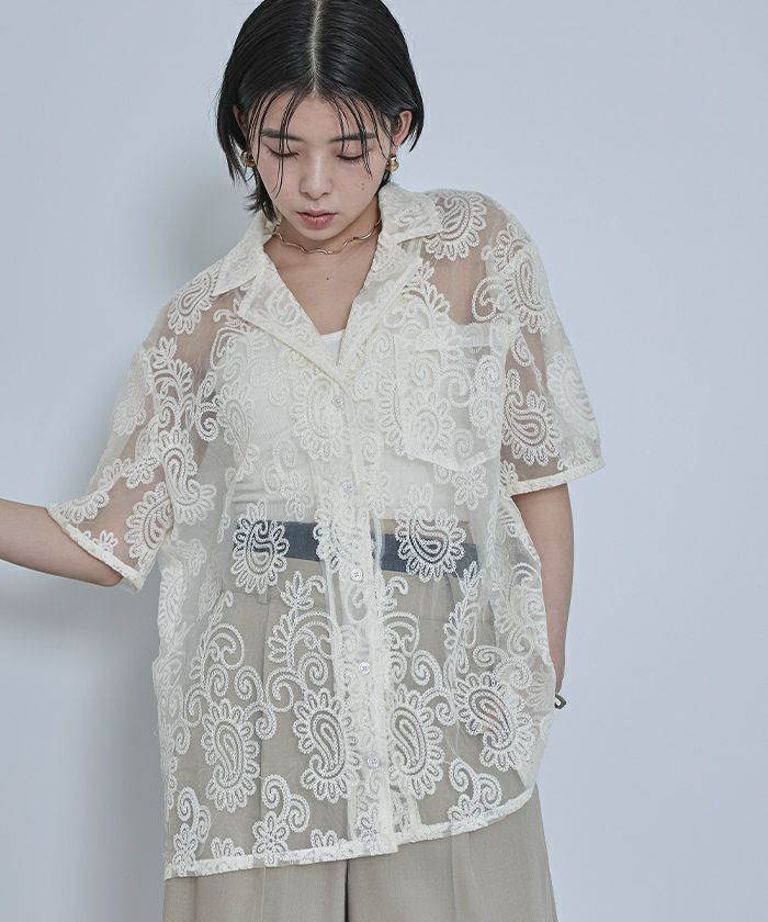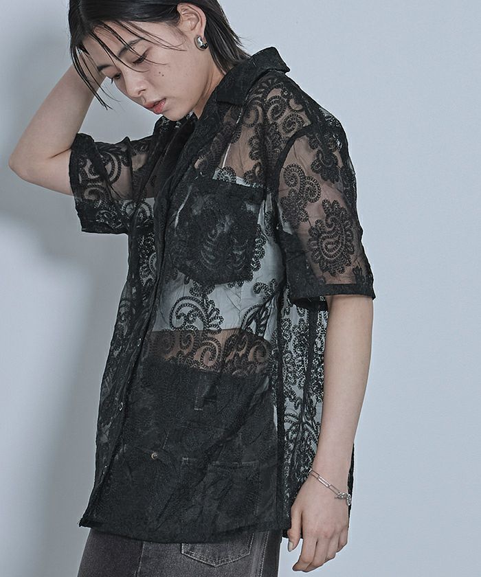 ・総柄刺繍のオーガンジー素材が高見えするシアーシャツ