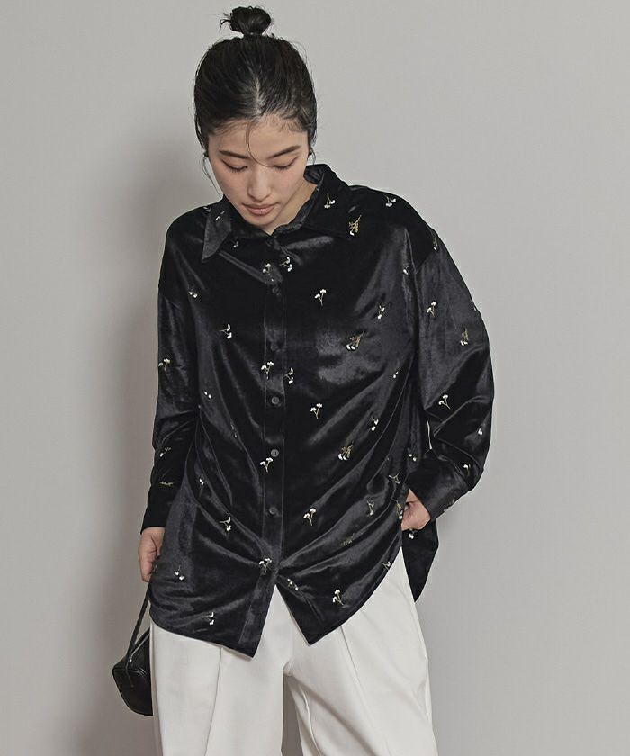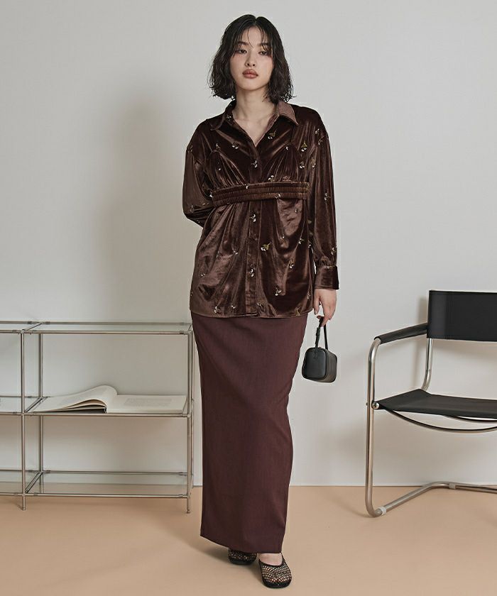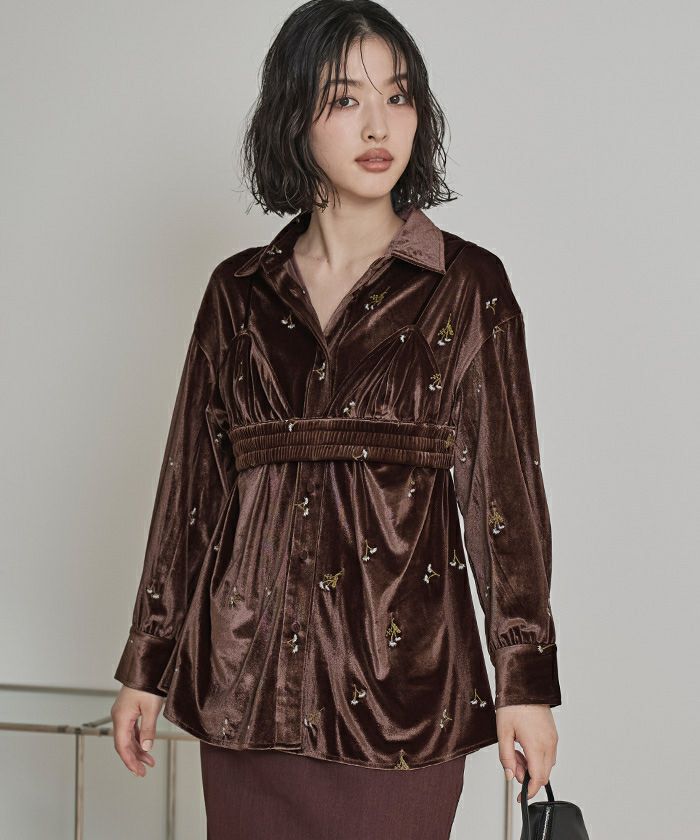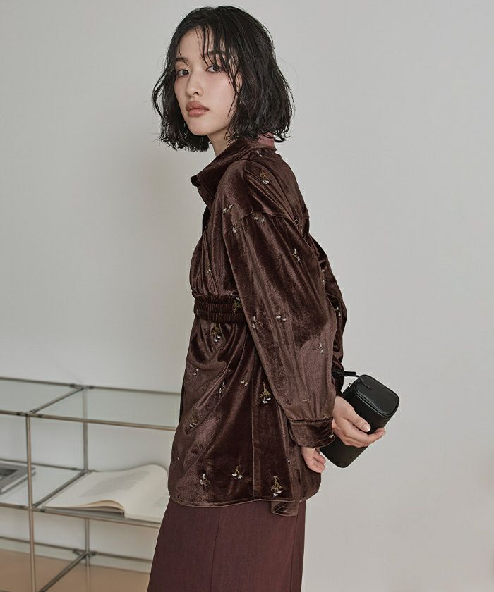 ・刺繍入りベロアシャツとベロアビスチェの2点セット