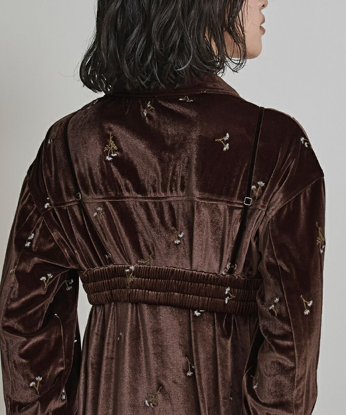 ・艶感のあるベロア素材に、小花の刺繍を散りばめた上品なデザイン