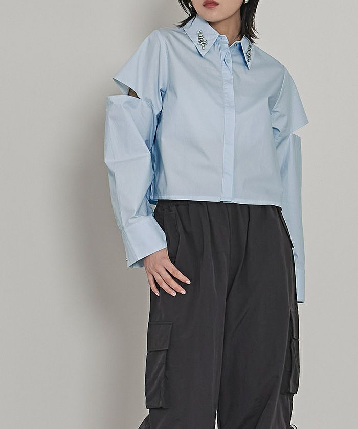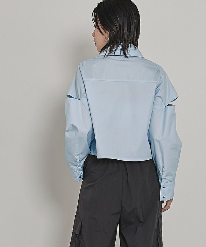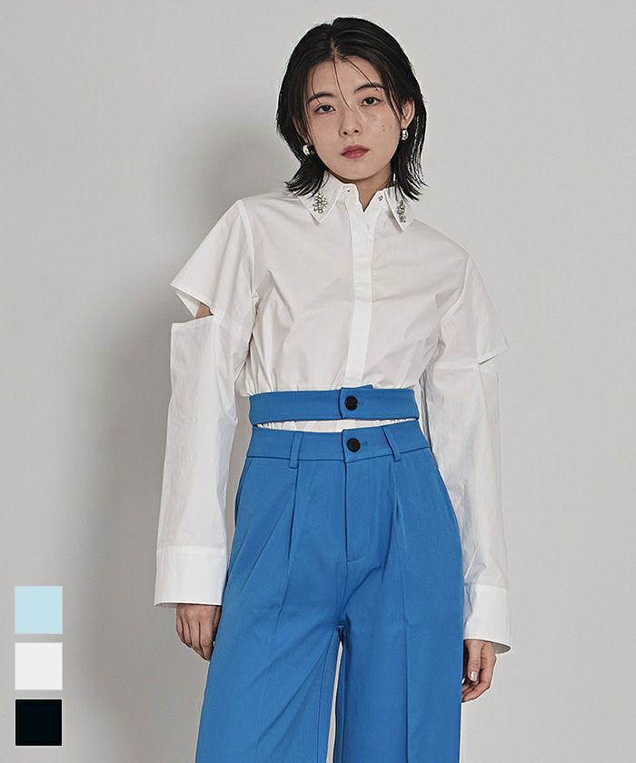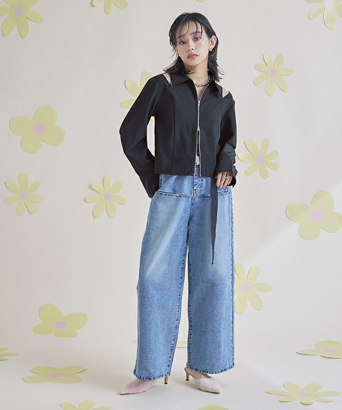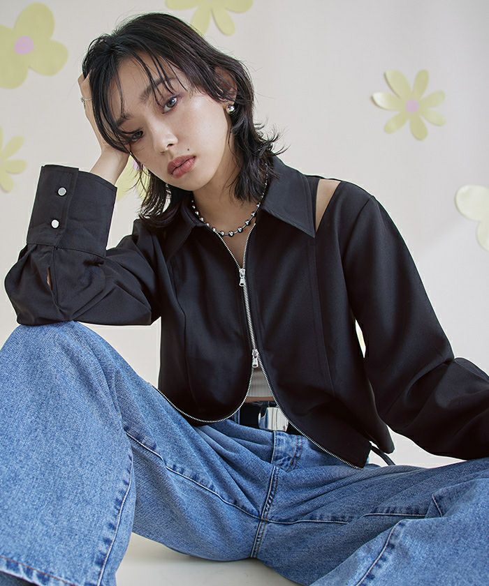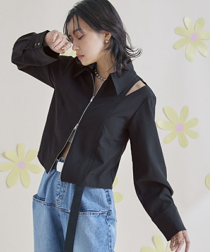 ショルダーカットアウトフロントジップシャツ〔メール便可/100〕