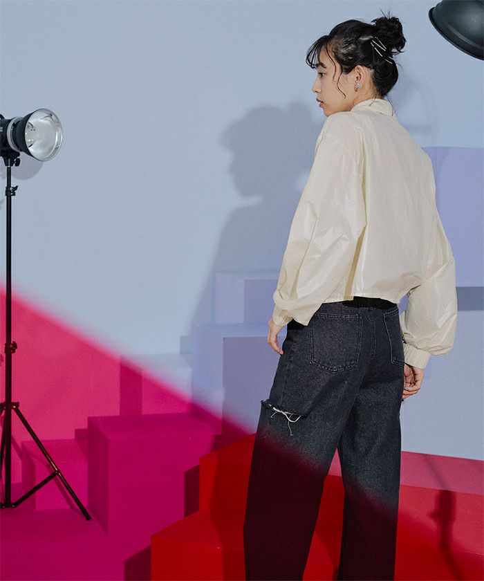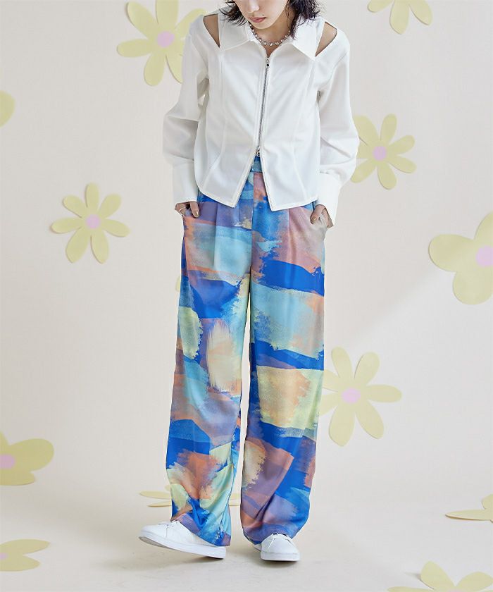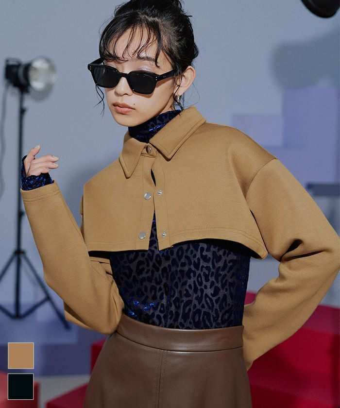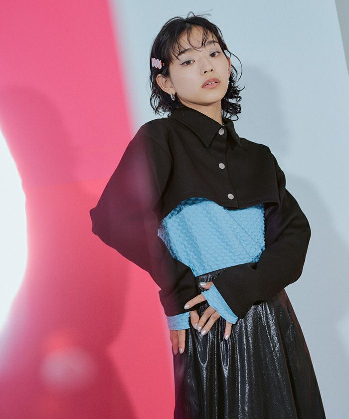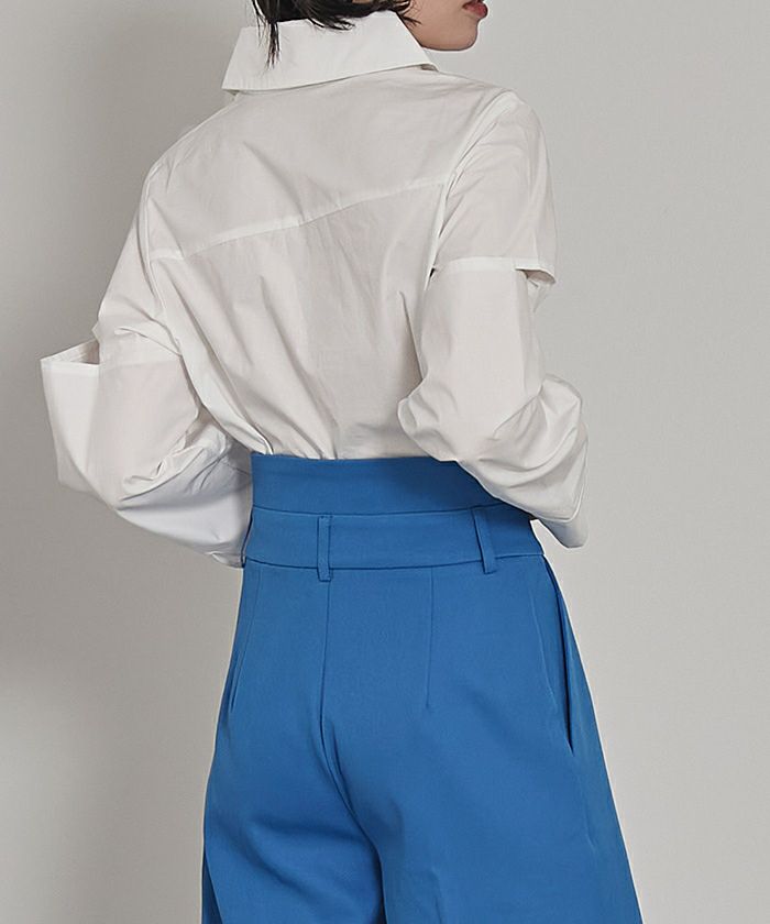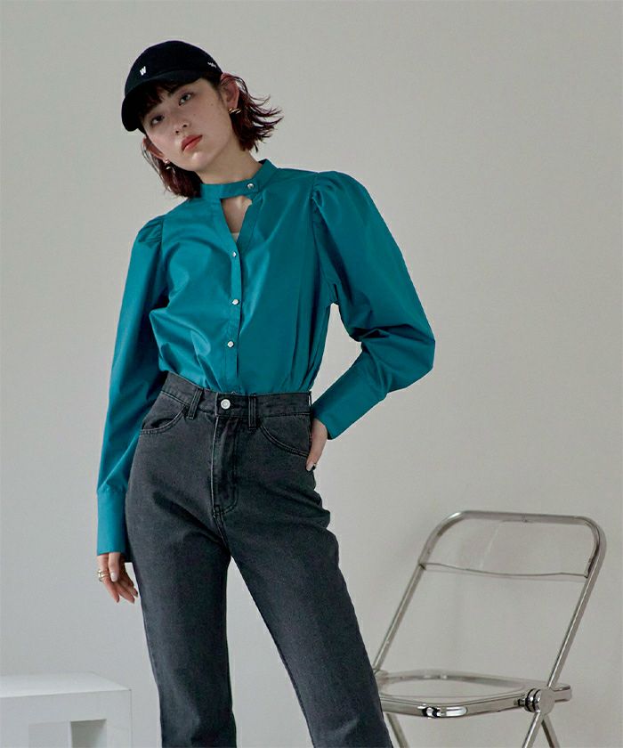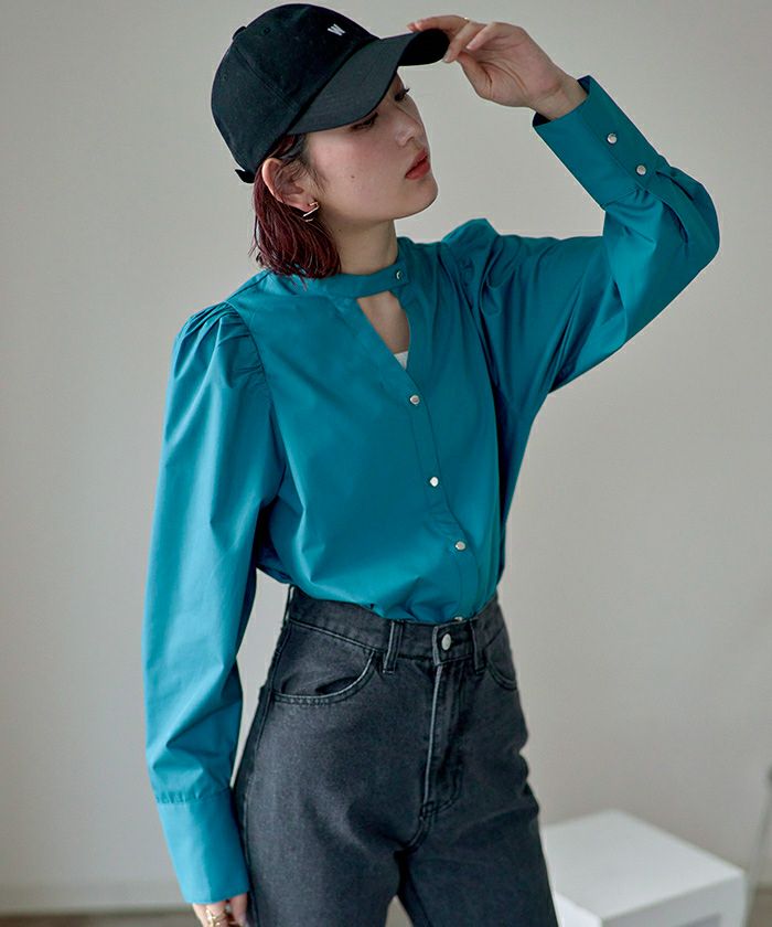 ショルダーカットアウトフロントジップシャツ〔メール便可/100〕