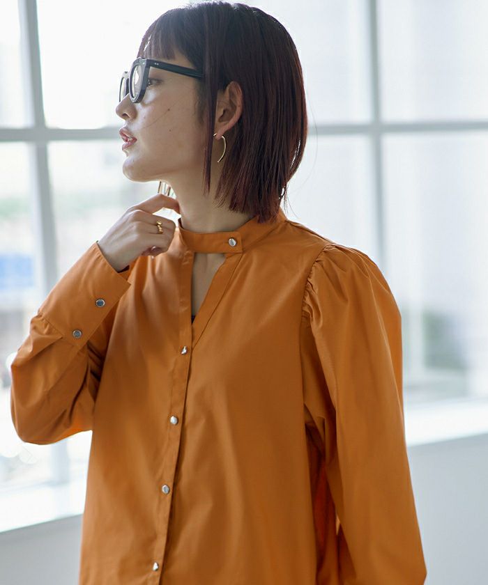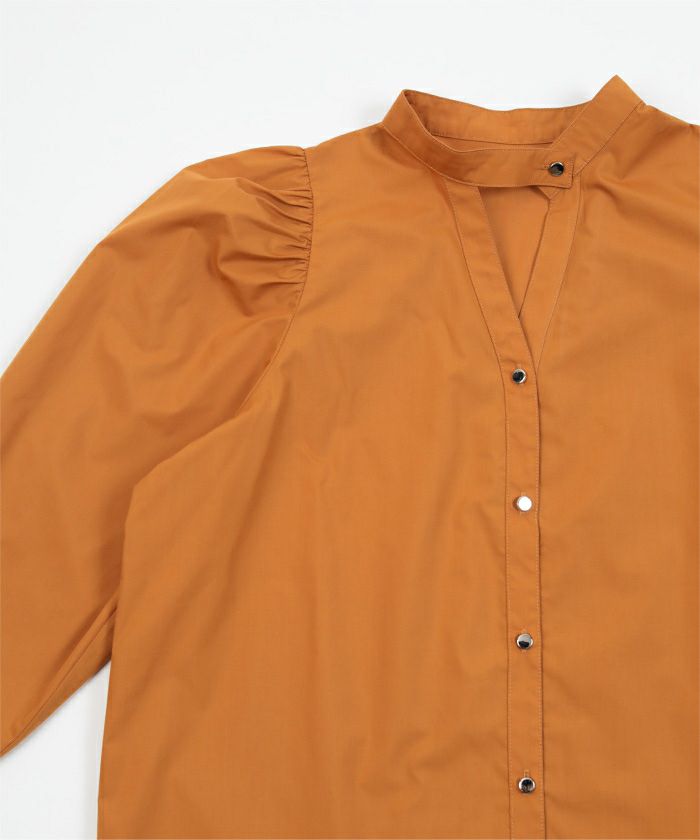 ギャザースリーブバンドカラーブラウス〔メール便可/80〕
