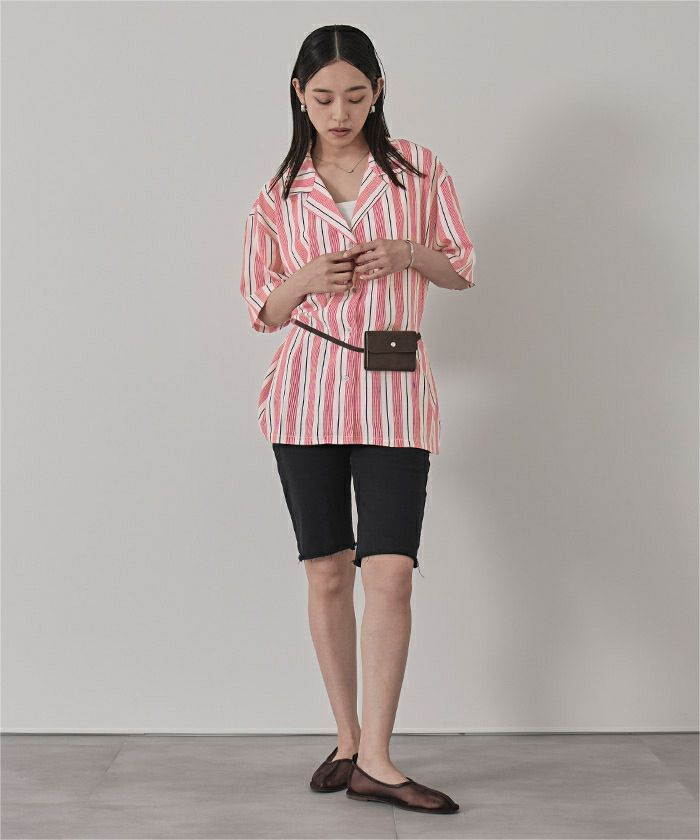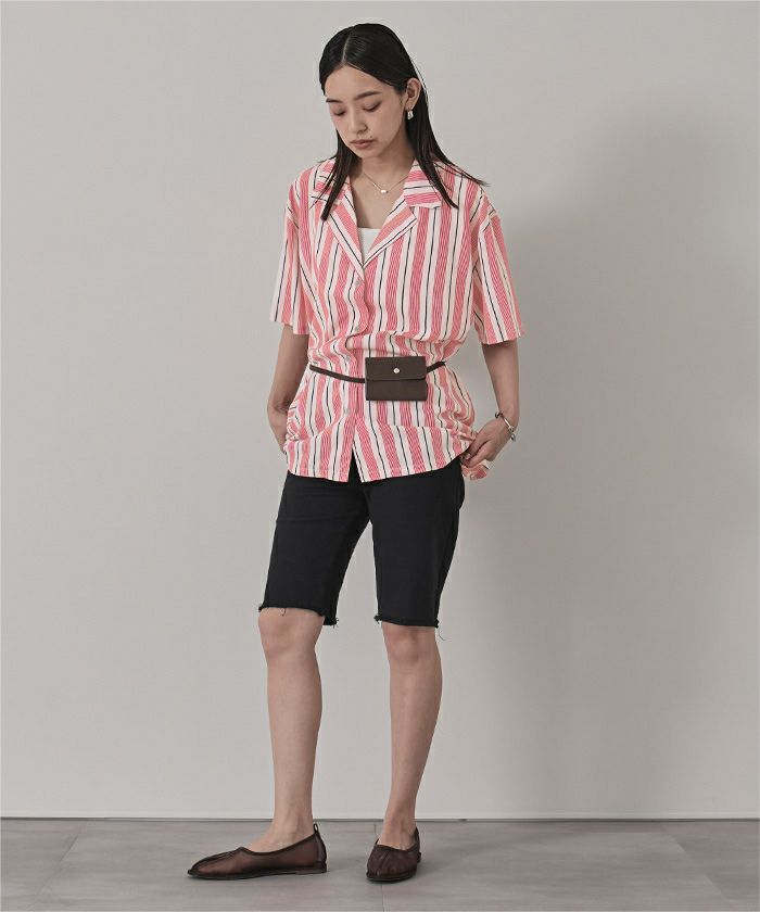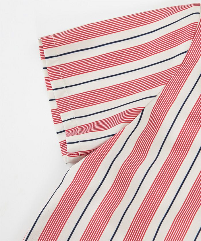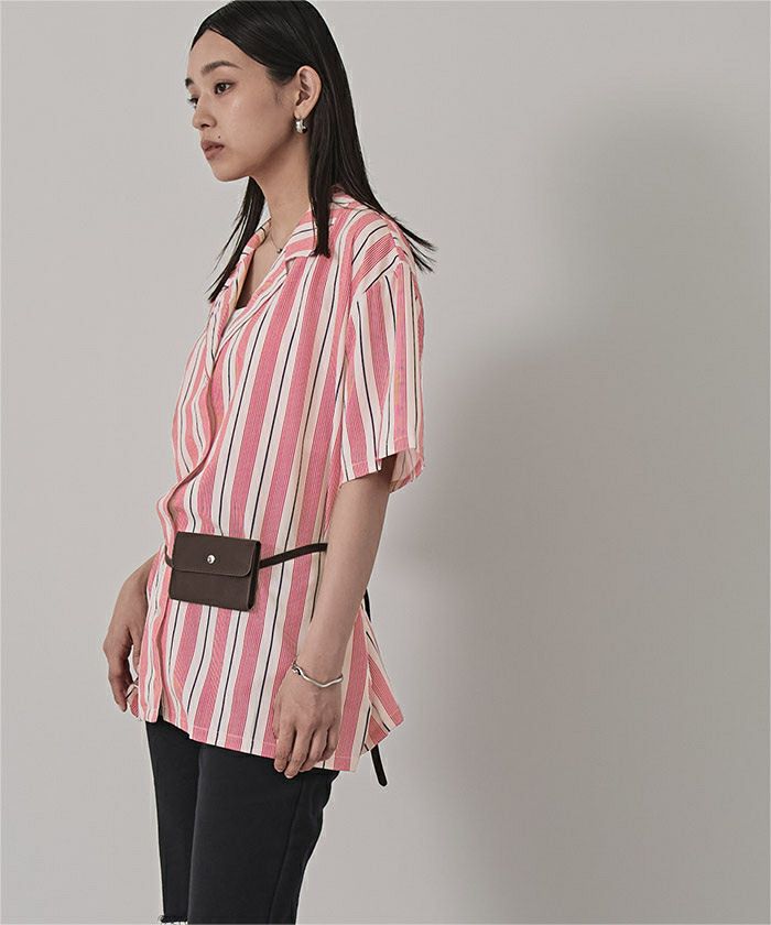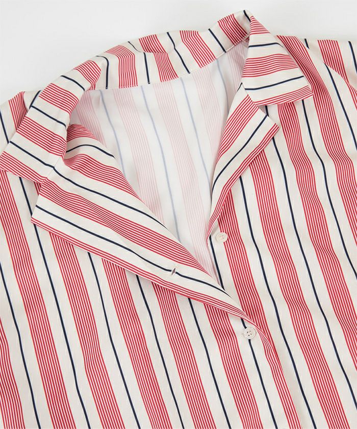 ストライプオーバーサイズ開襟シャツ〔メール便可/100〕