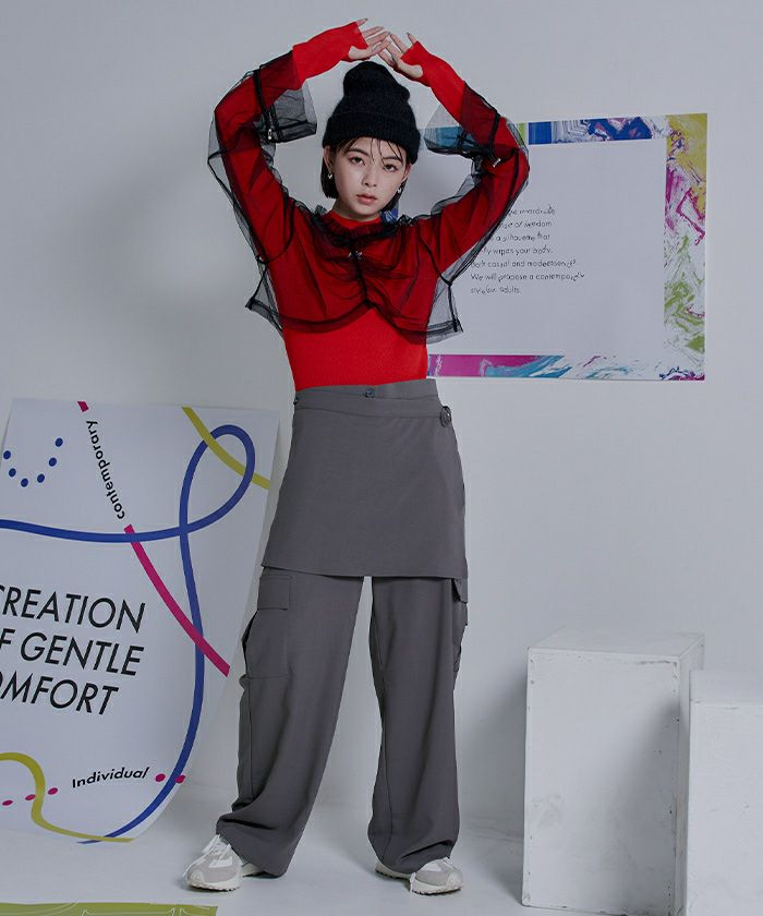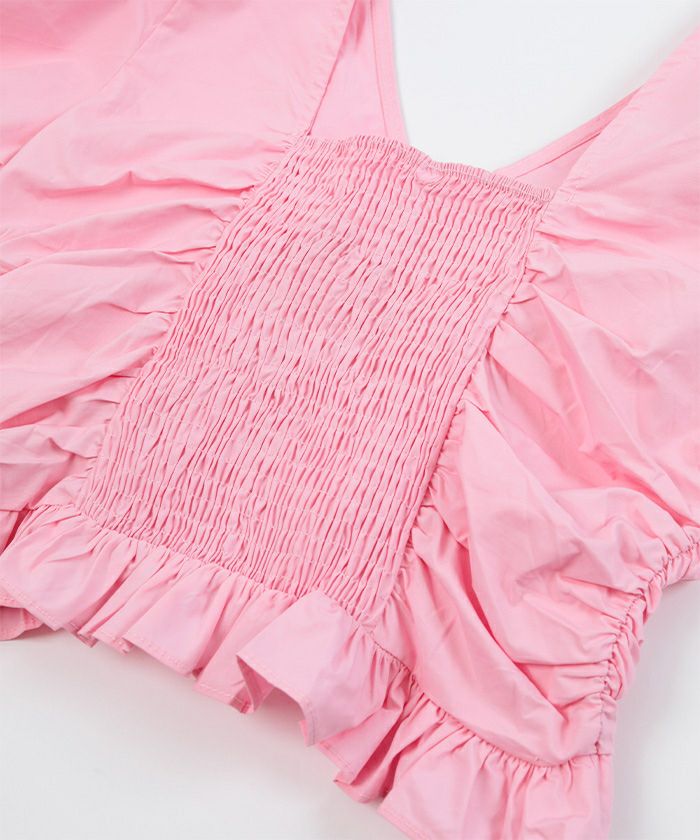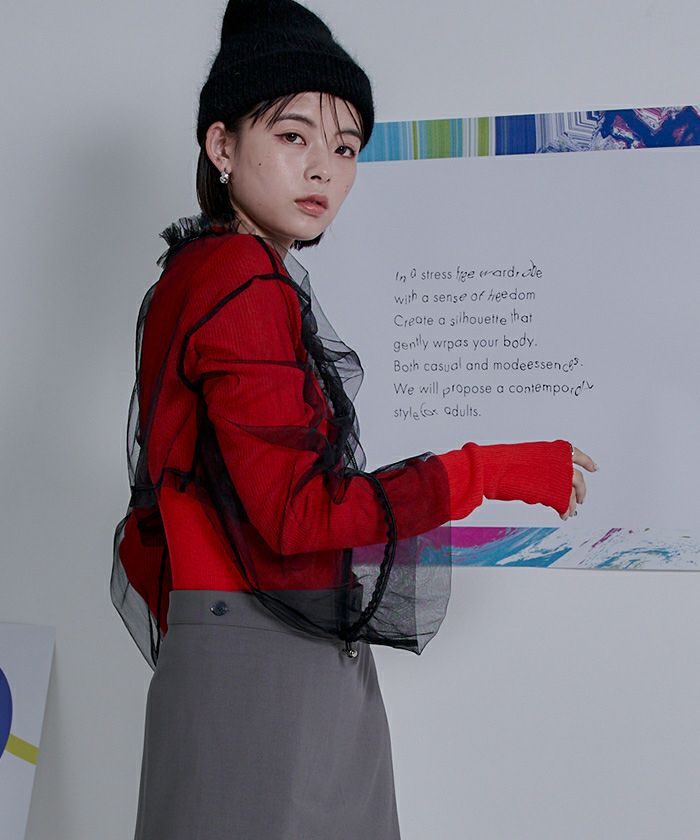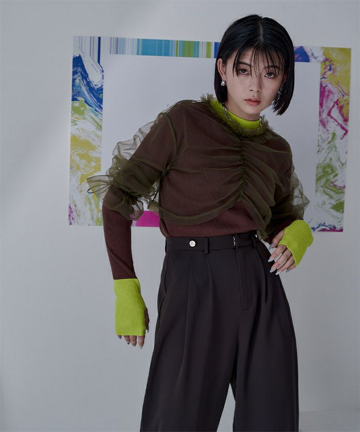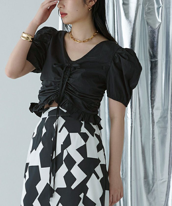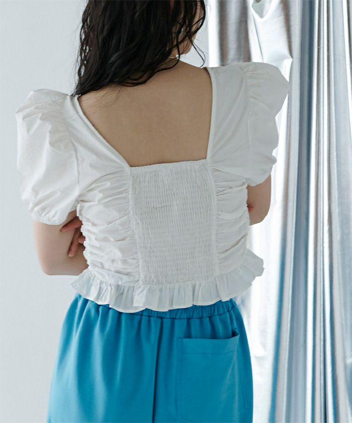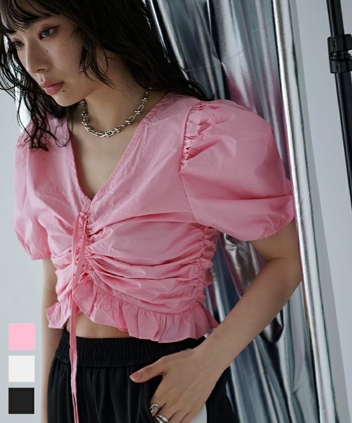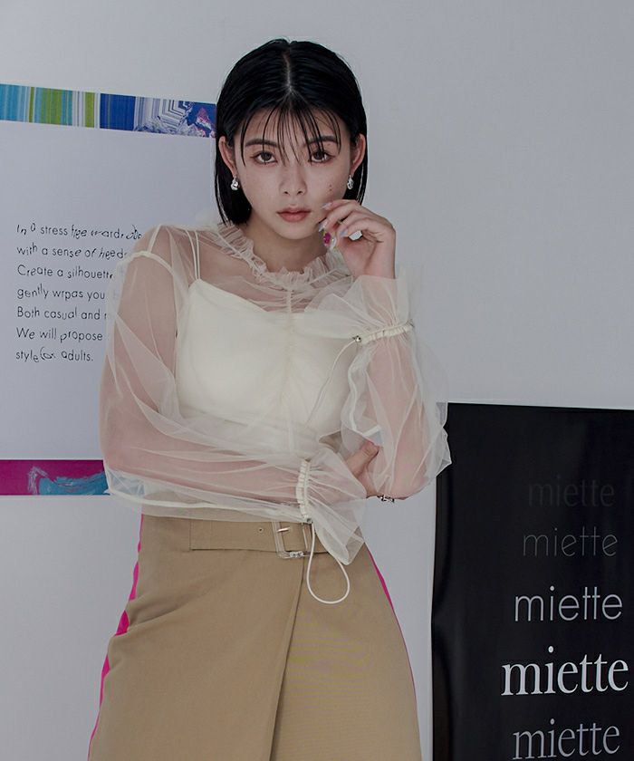 チュールギャザーシアーショートトップス〔メール便可/40〕