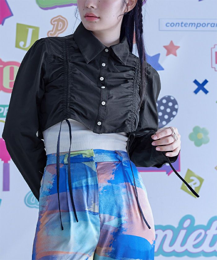 ドローストリングクロップドシャツ〔メール便可/70〕
