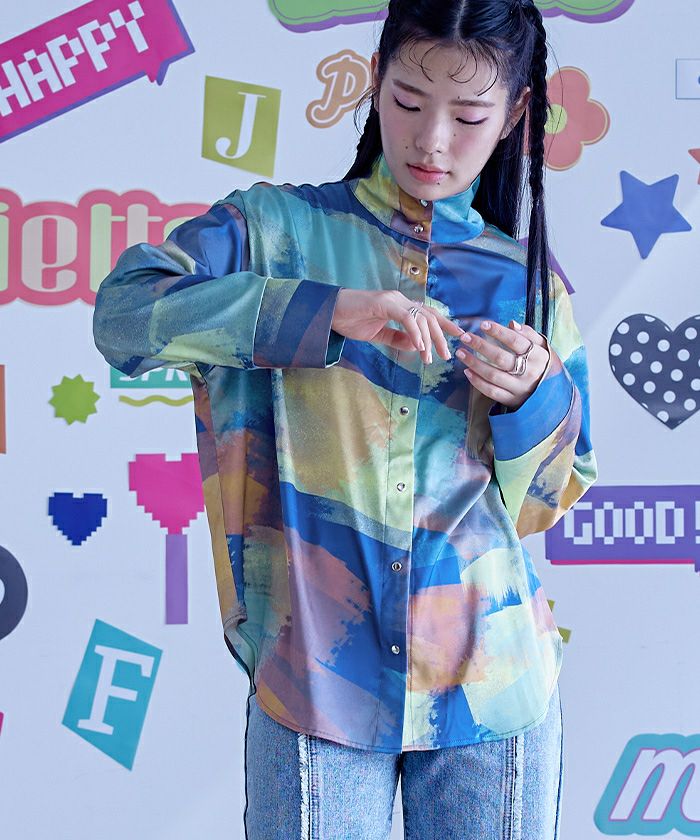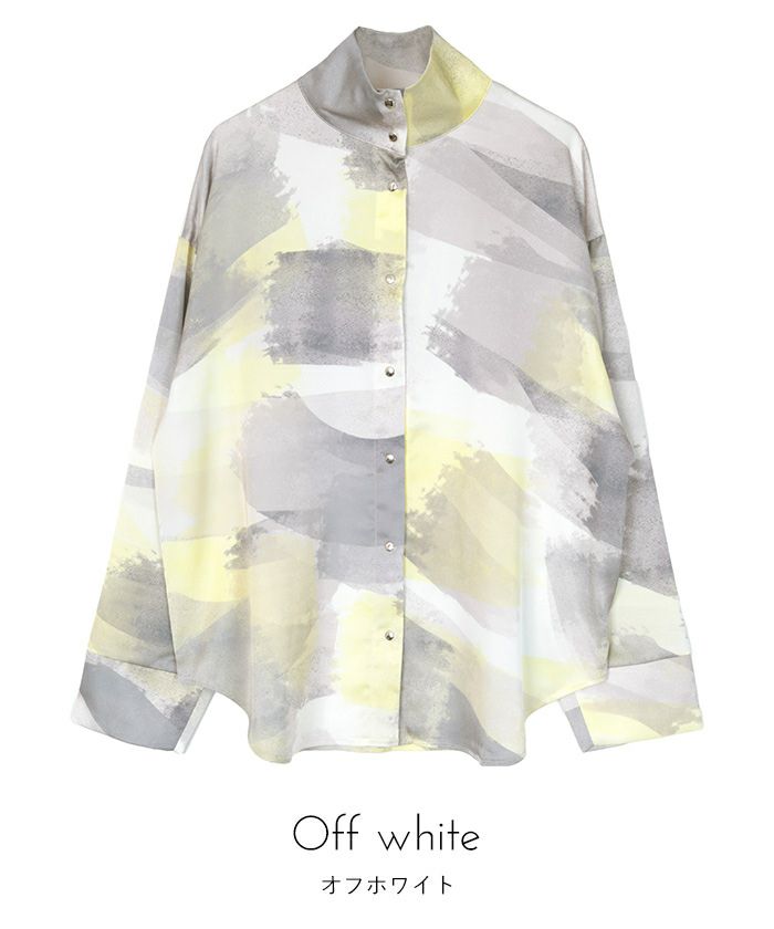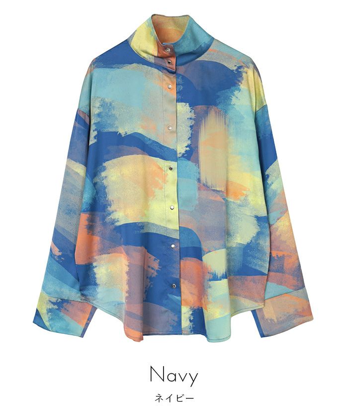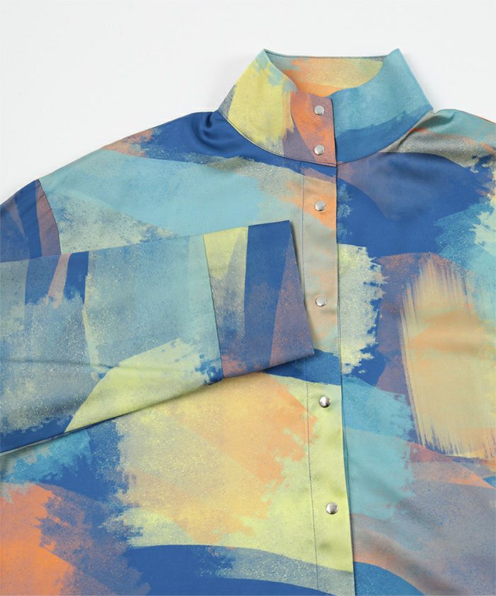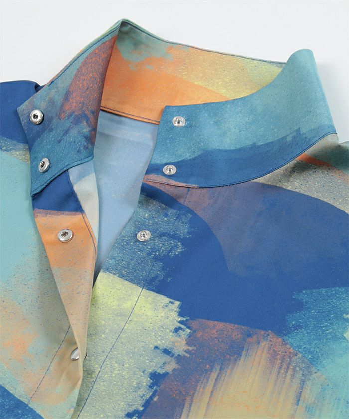 シルバーボタンプリントハイネックシャツ〔メール便可/50〕