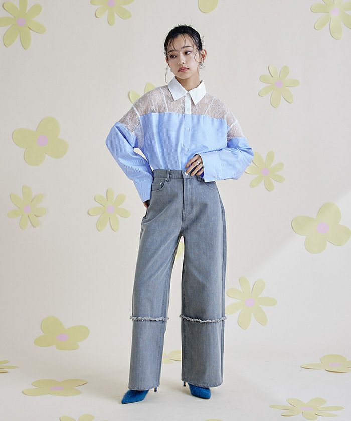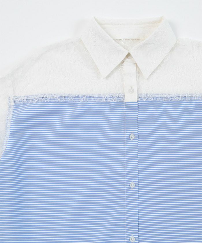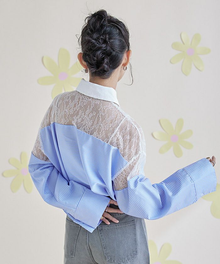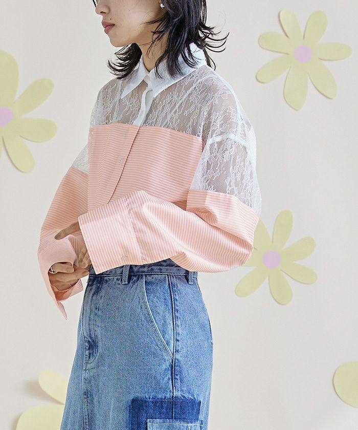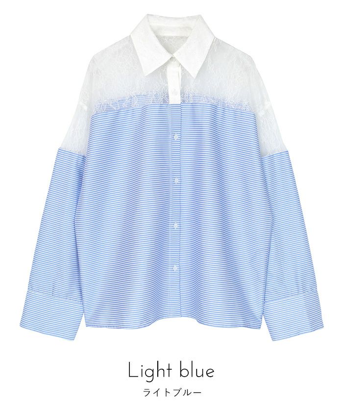 レース切替ボーダーシャツ〔メール便可/100〕