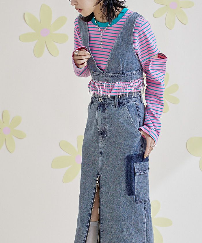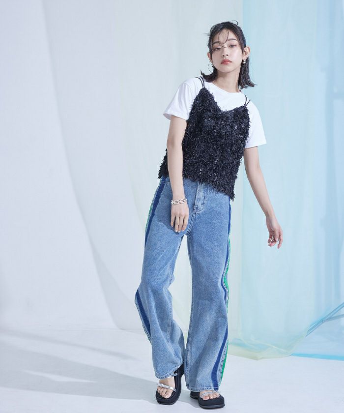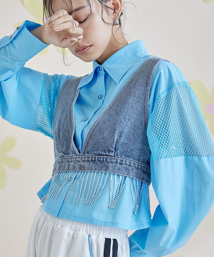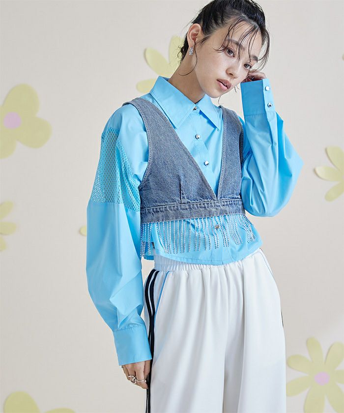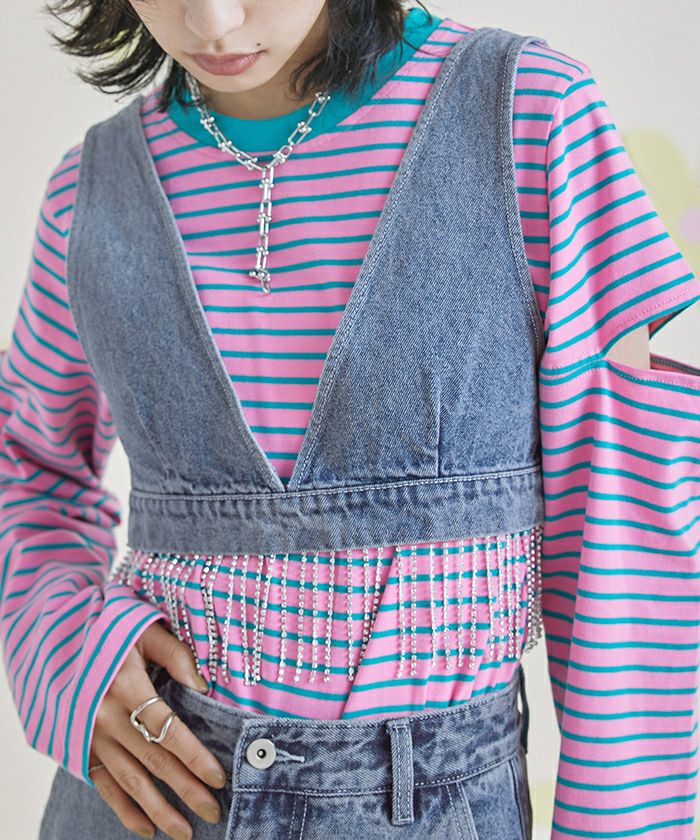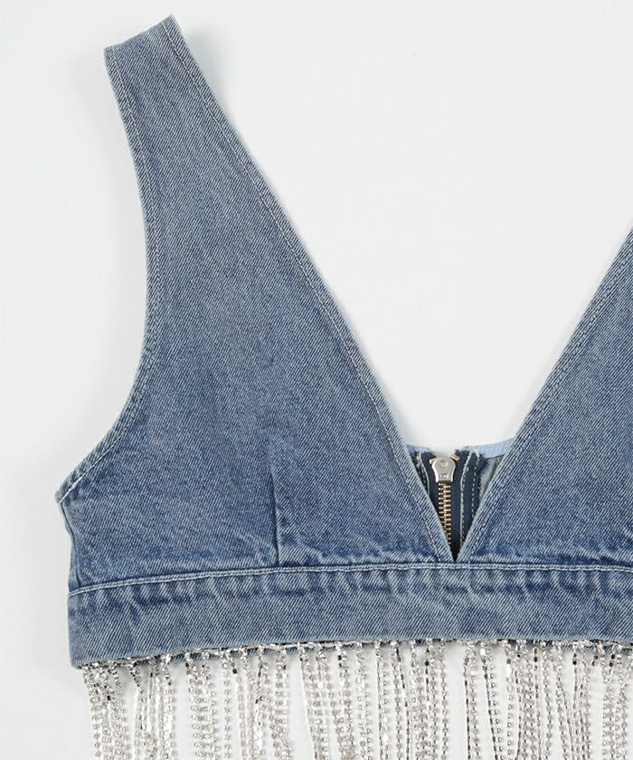 ビジューフリンジデニムビスチェ〔メール便可/50〕