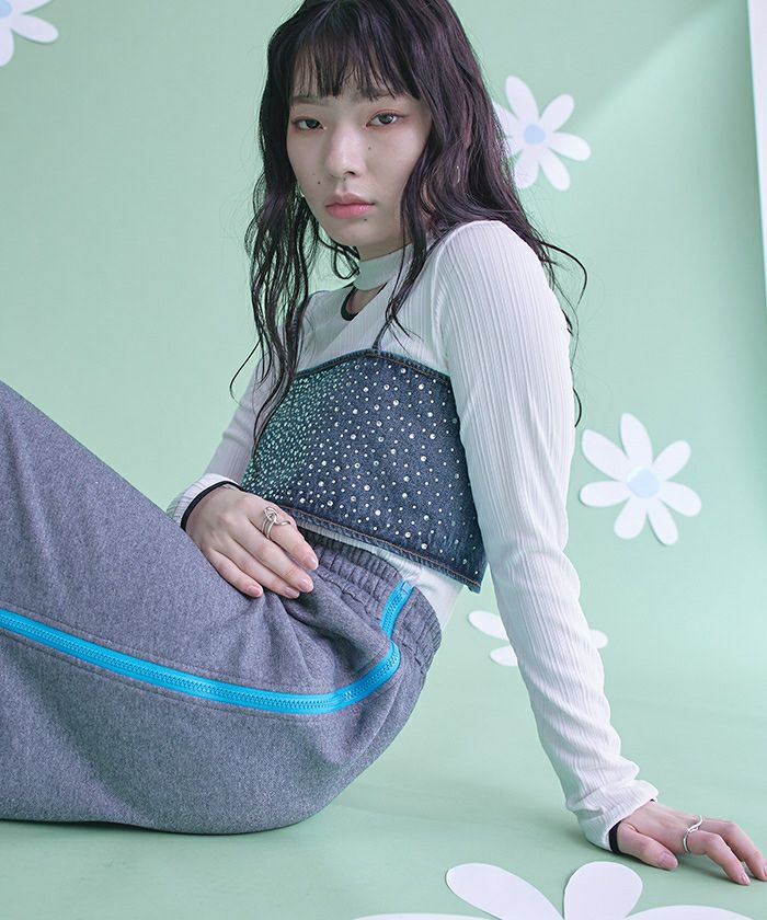 ラインストーンデニムビスチェ〔メール便可/50〕