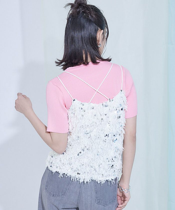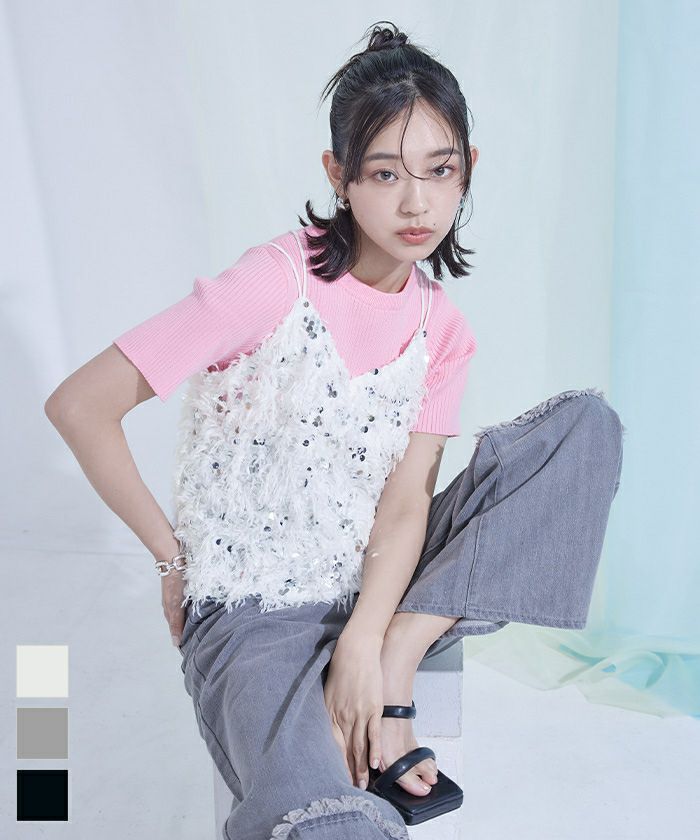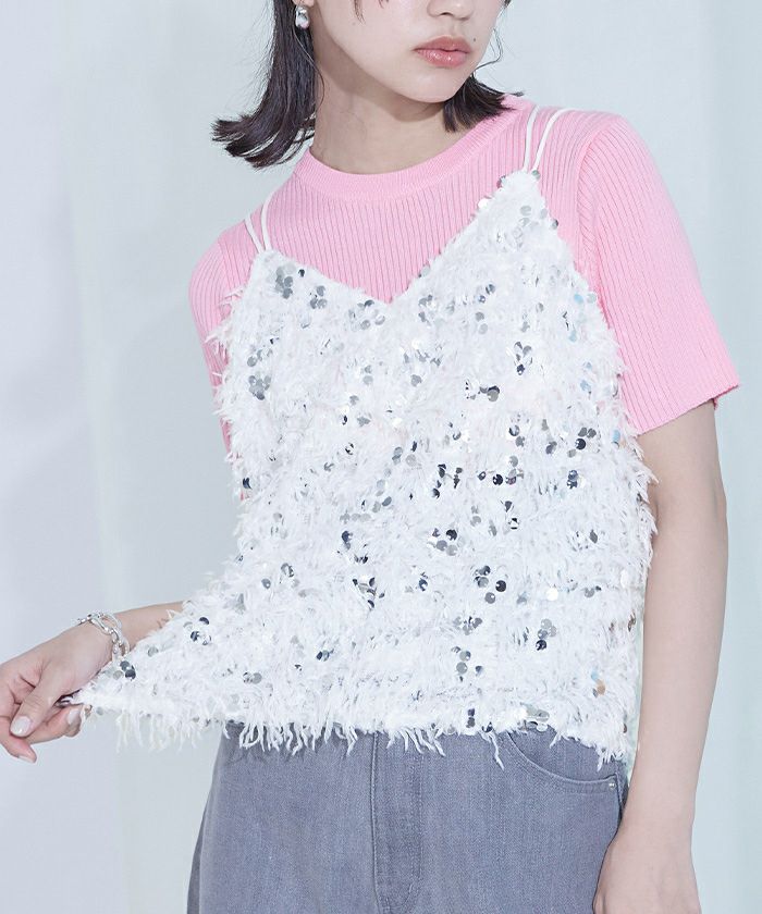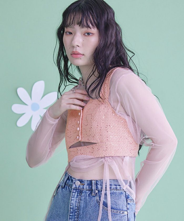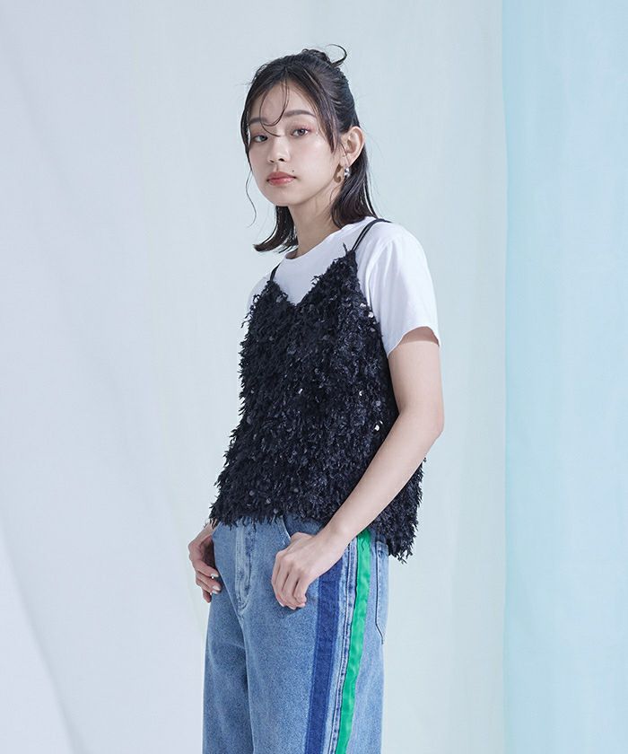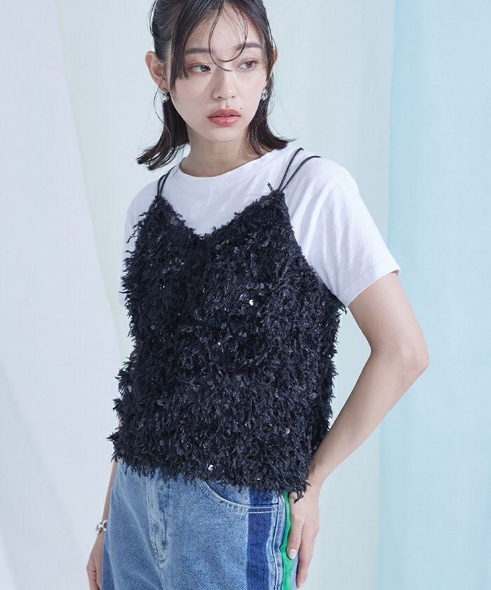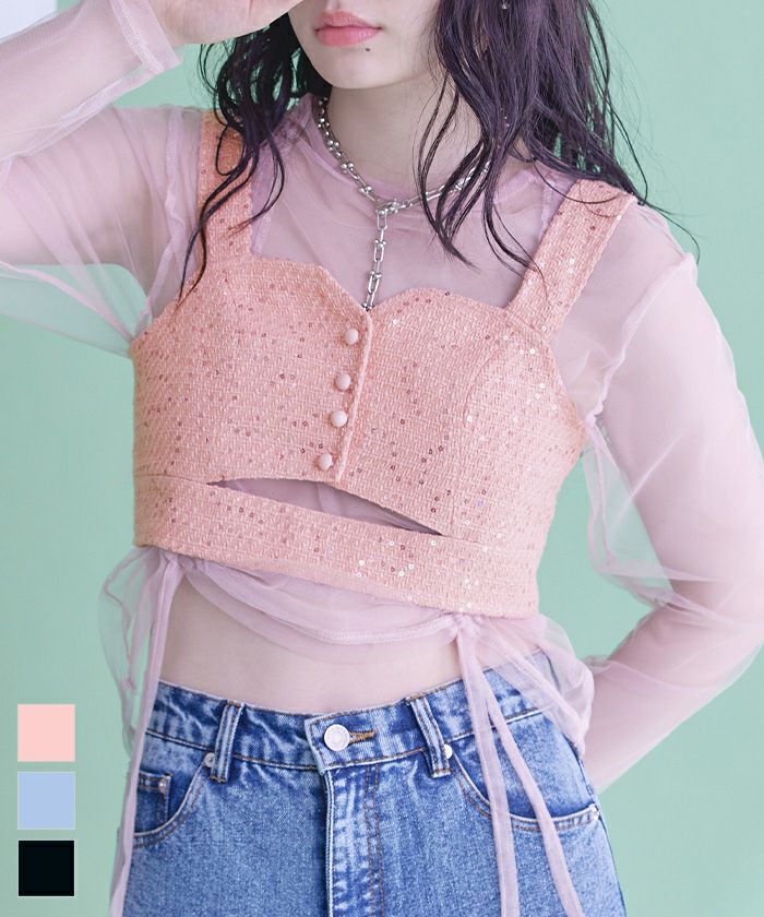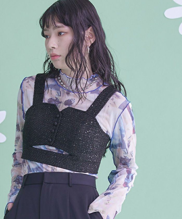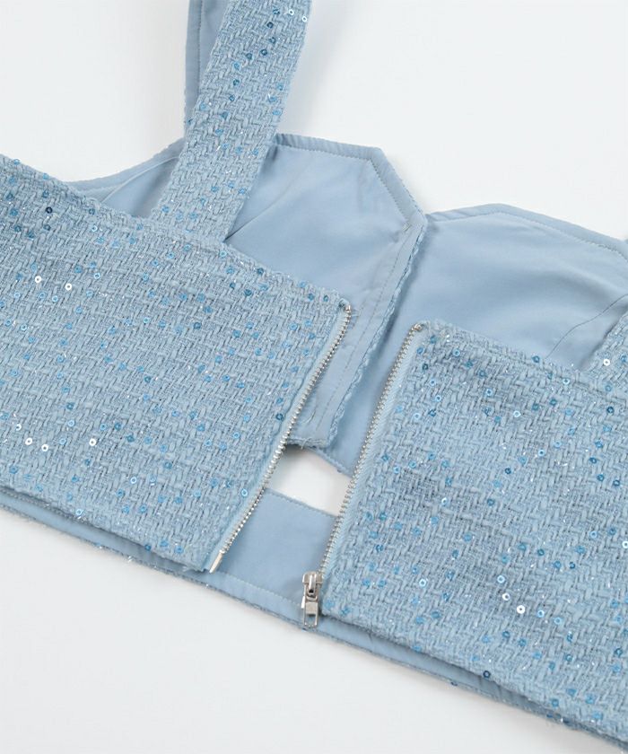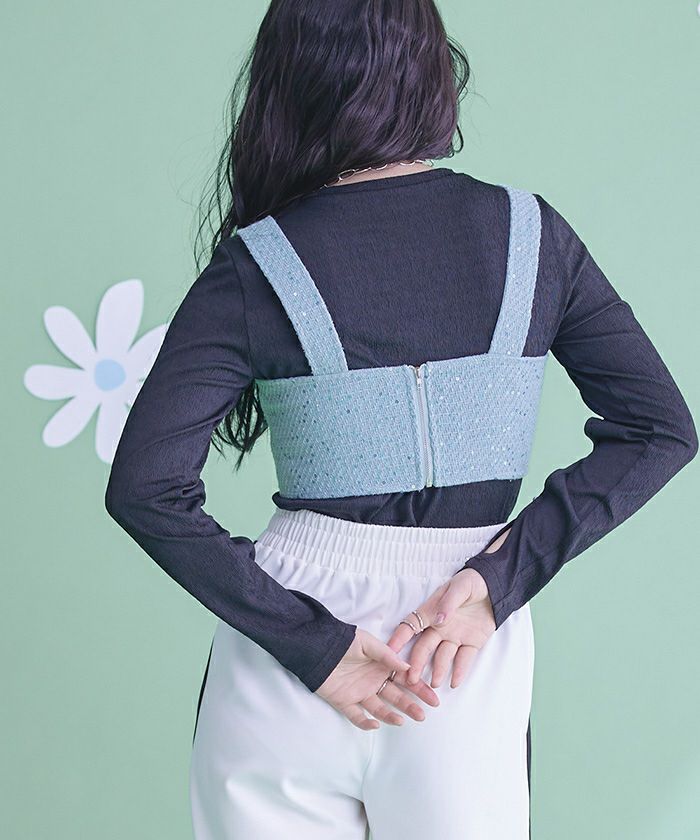 フロントカットスパンコールツイードビスチェ〔メール便可/50〕