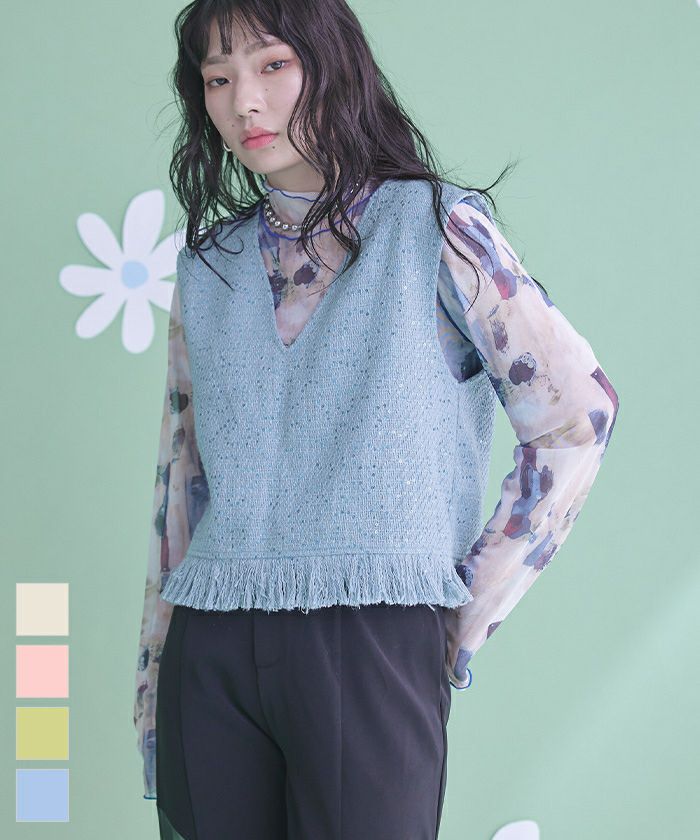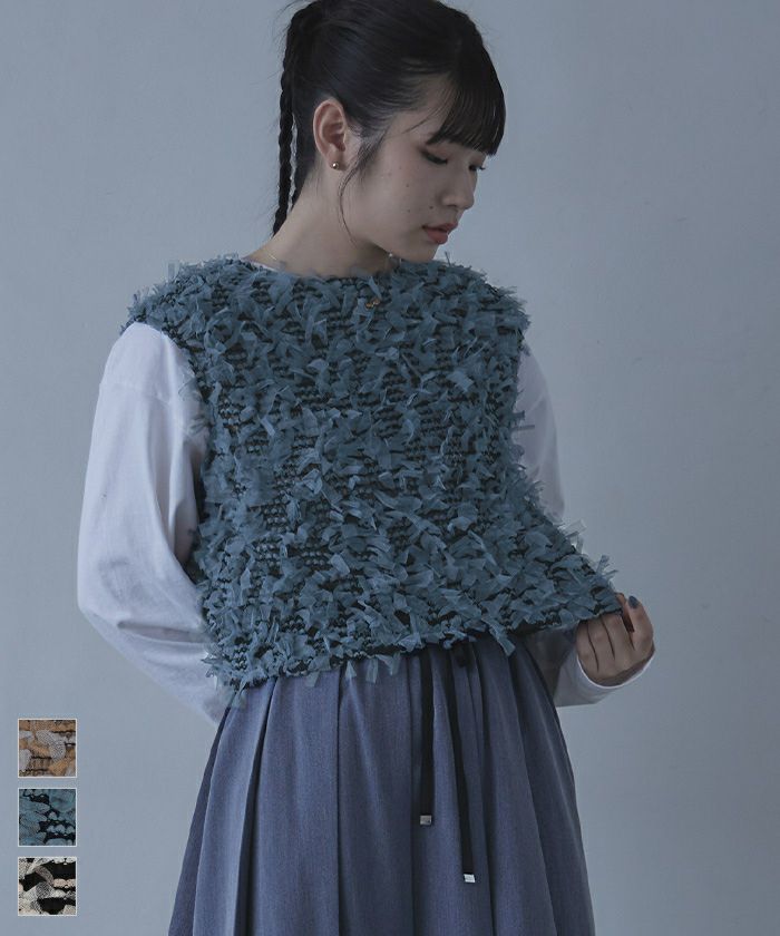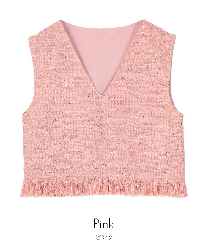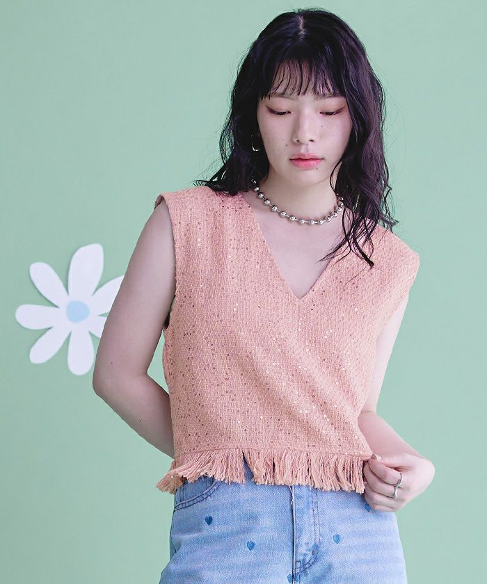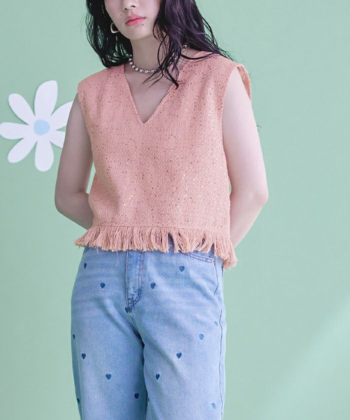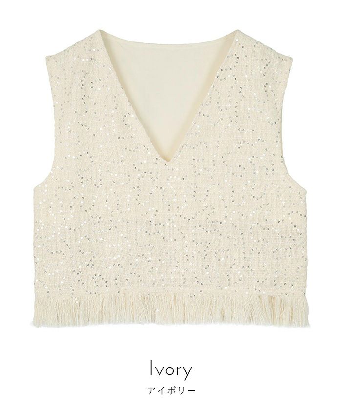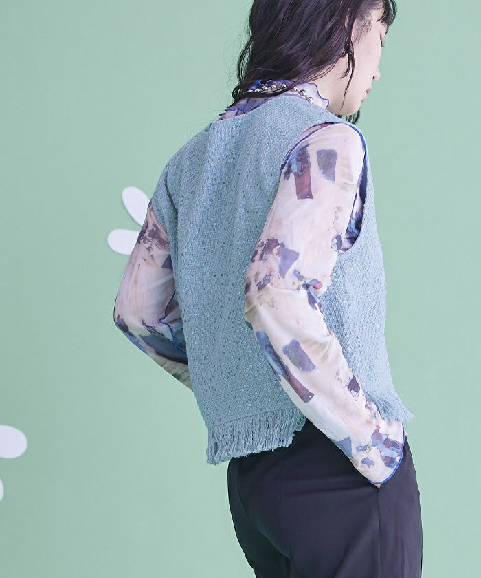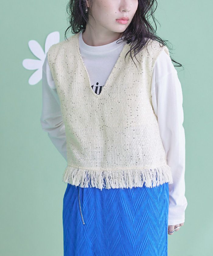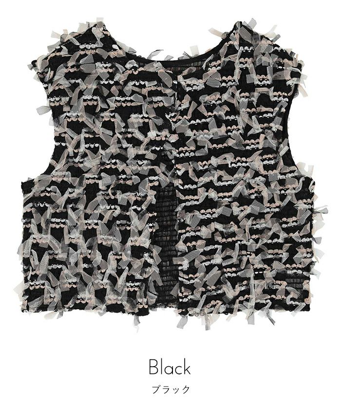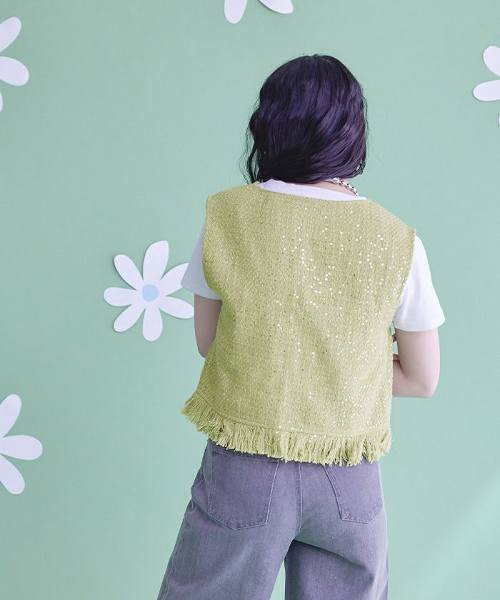 スパンコールツイードフリンジショートベスト〔メール便可/90〕