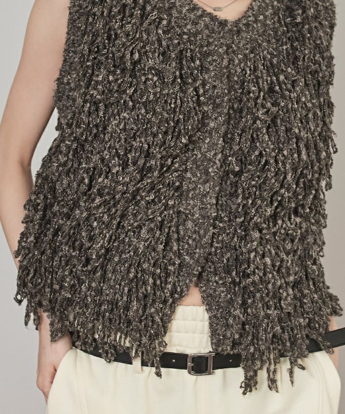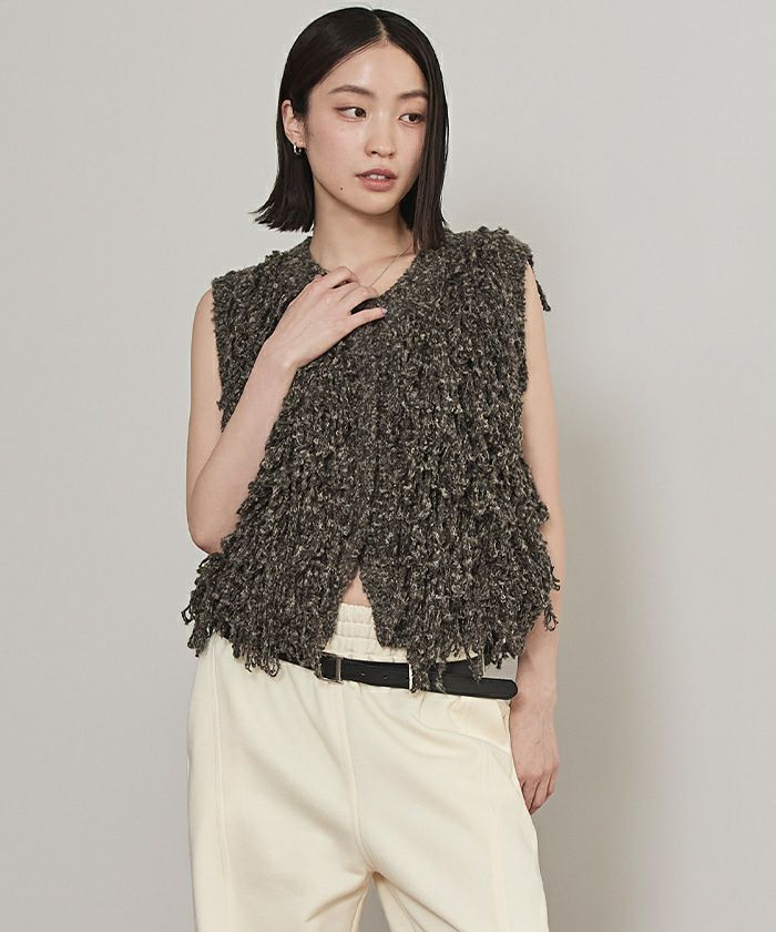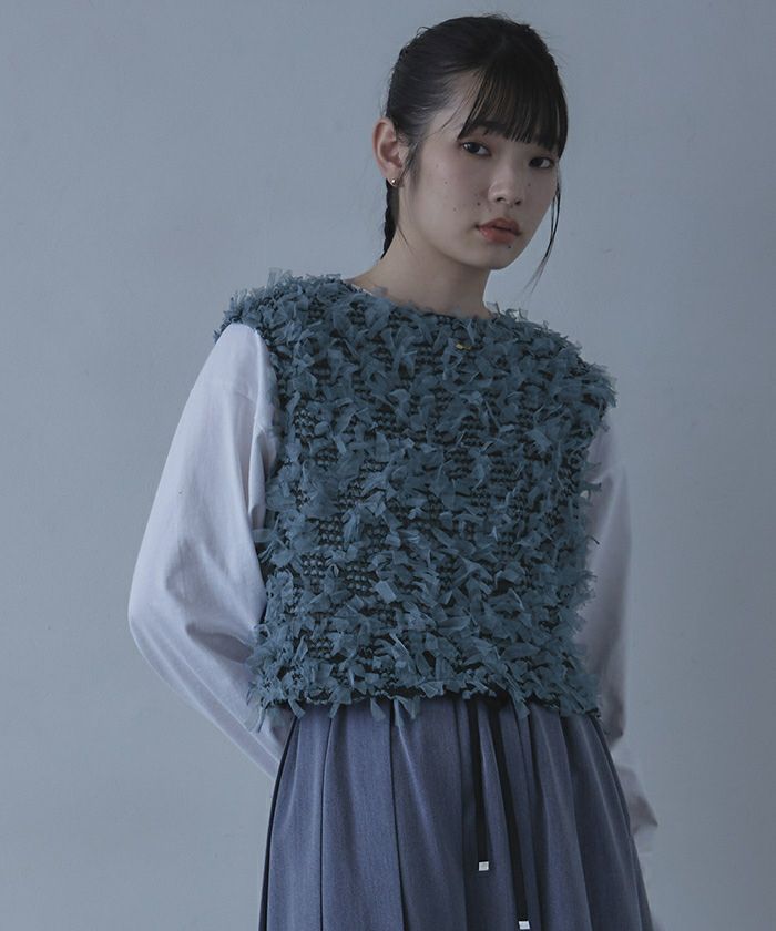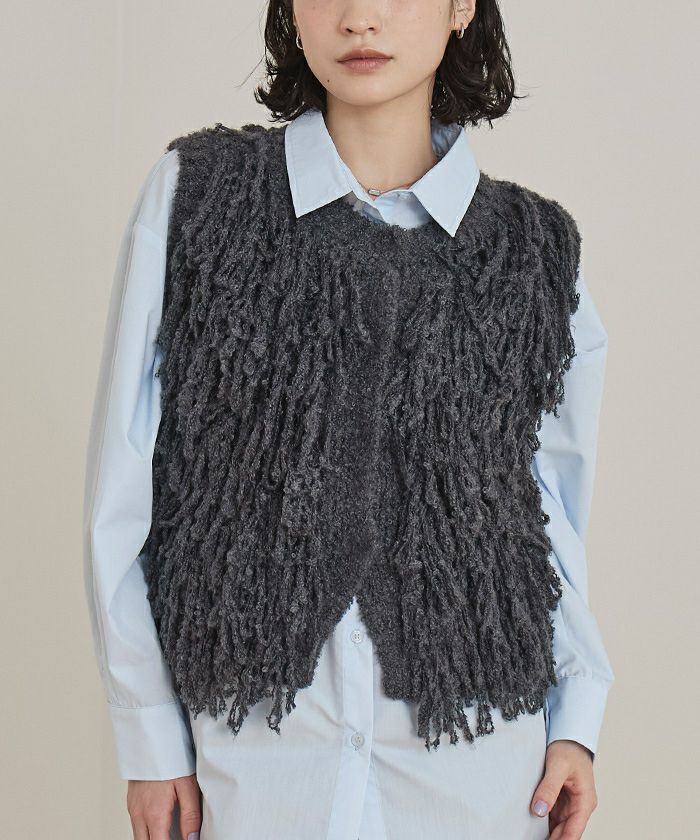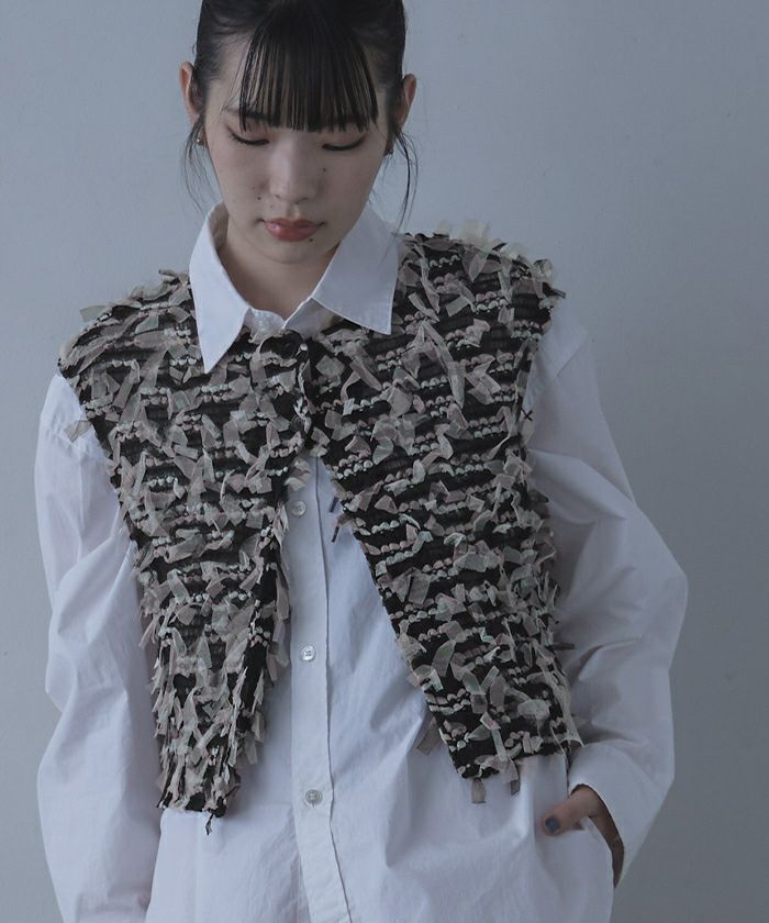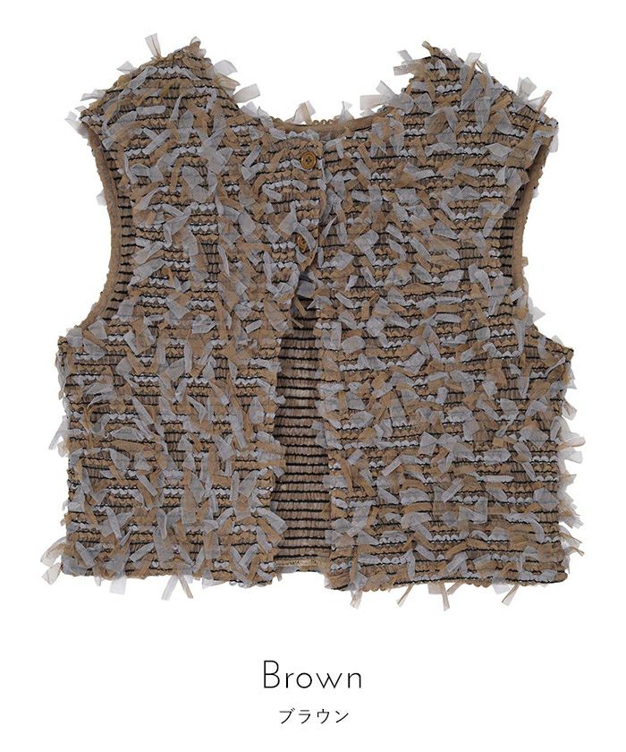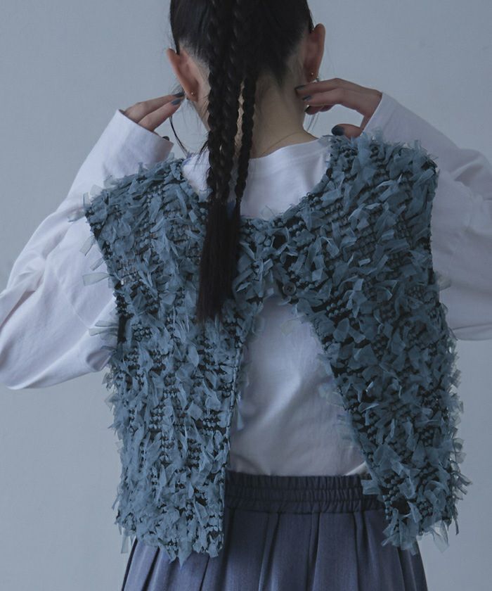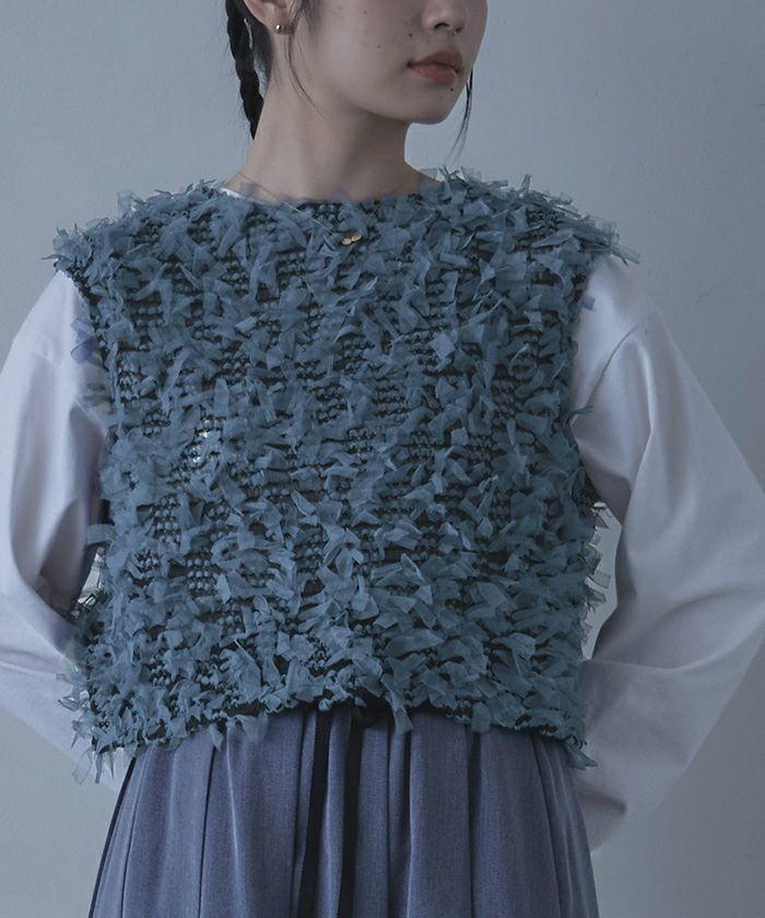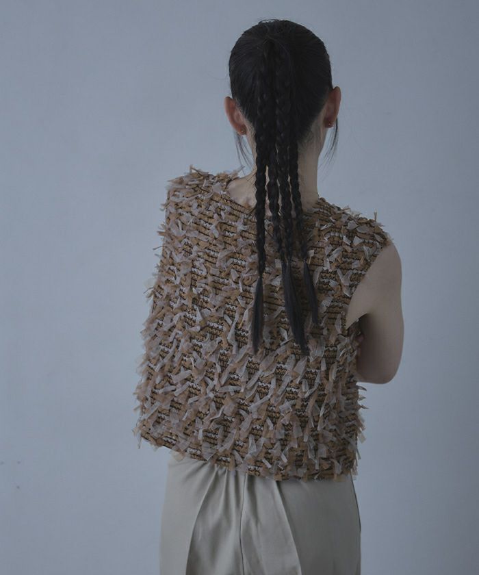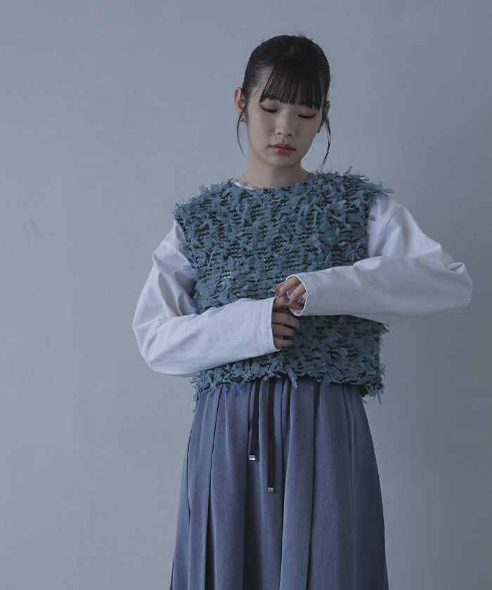 スパンコールツイードフリンジショートベスト〔メール便可/90〕