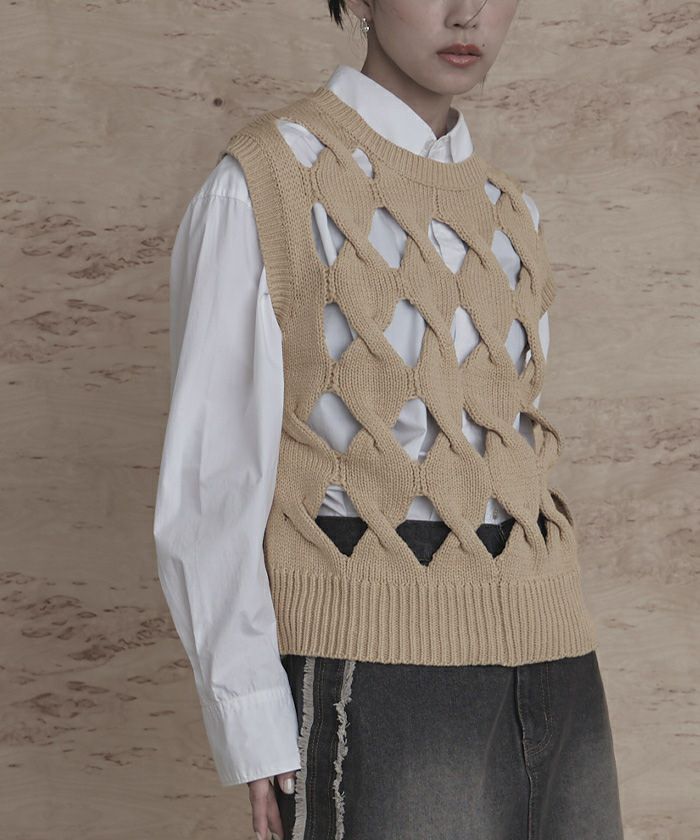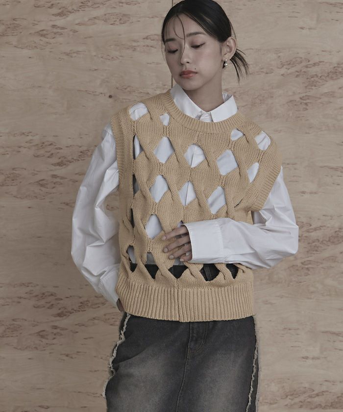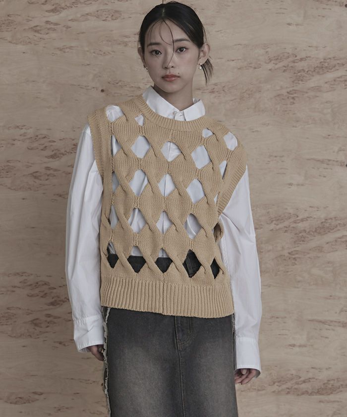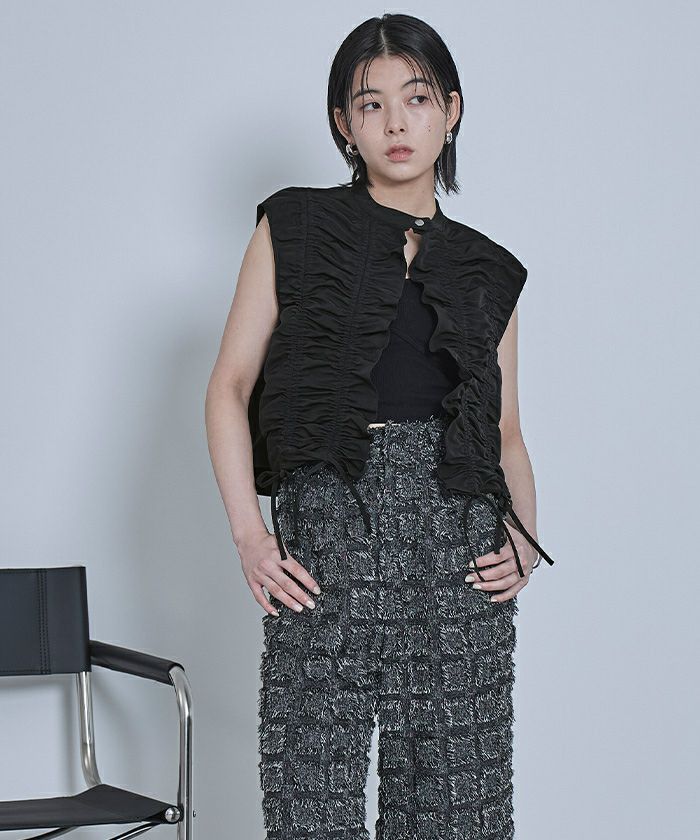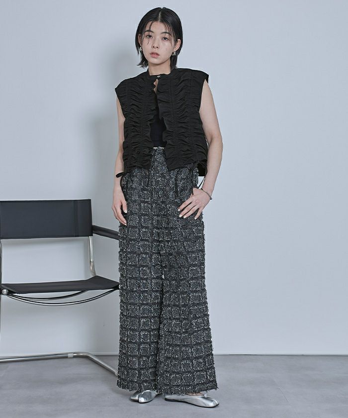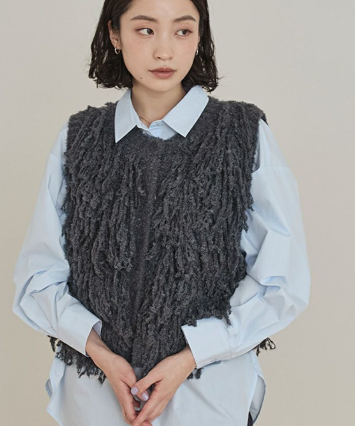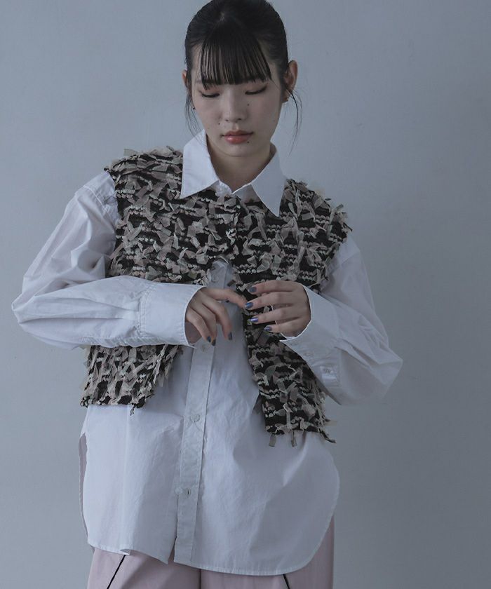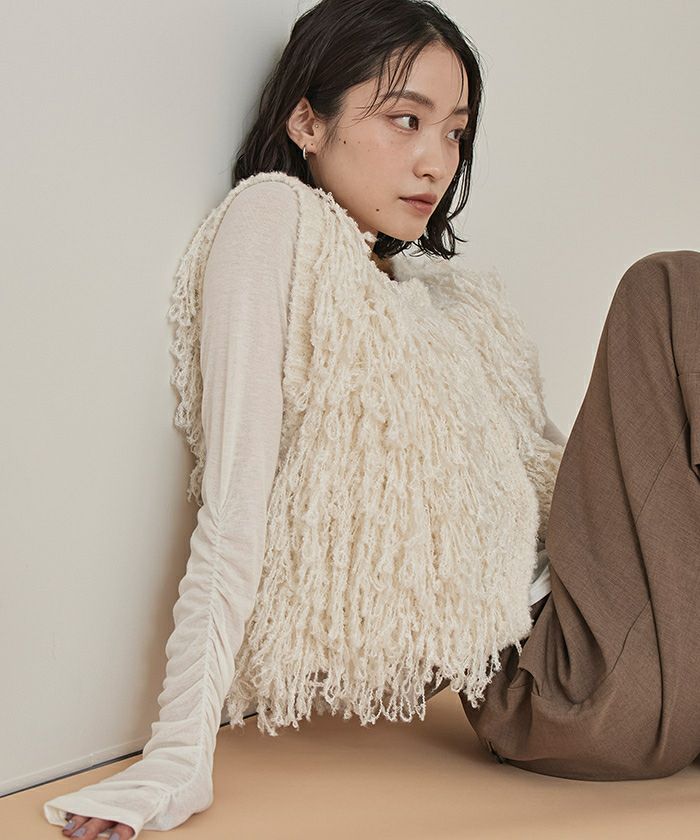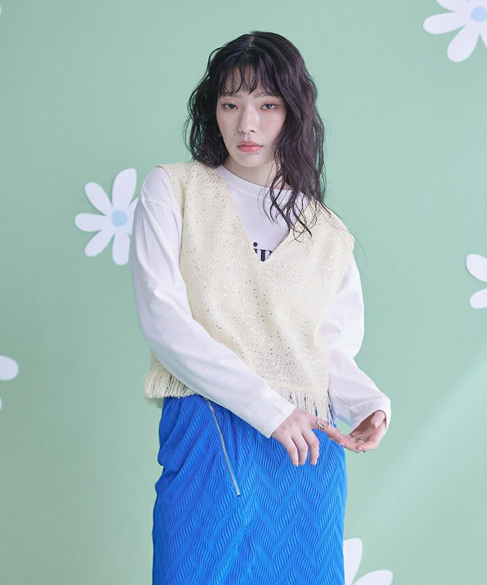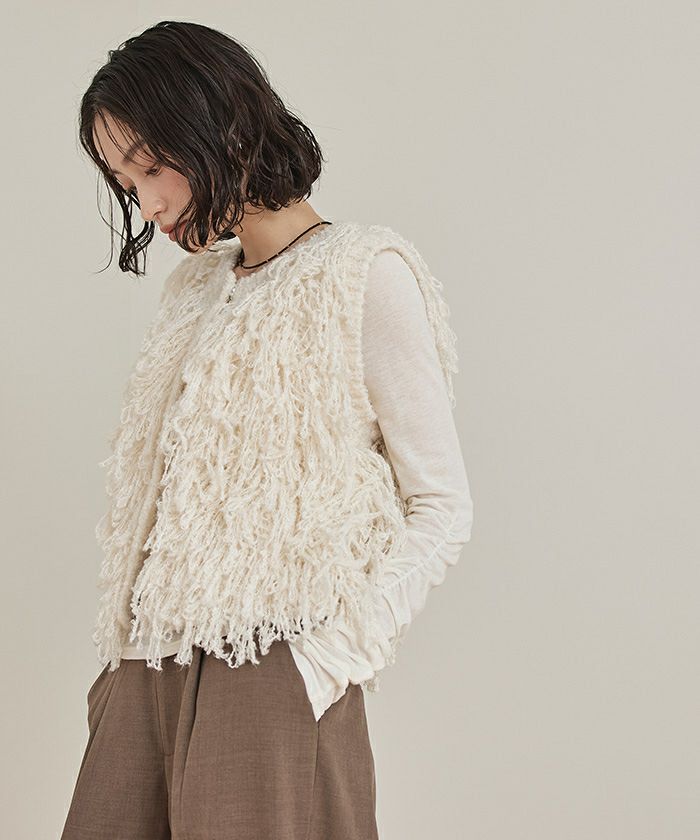 スパンコールツイードフリンジショートベスト〔メール便可/90〕