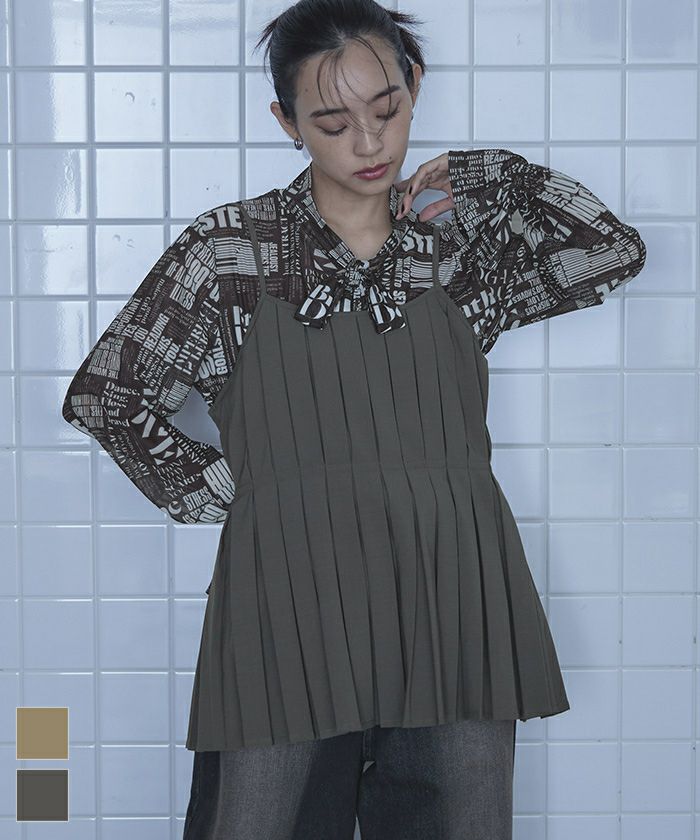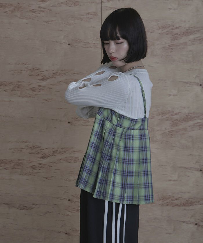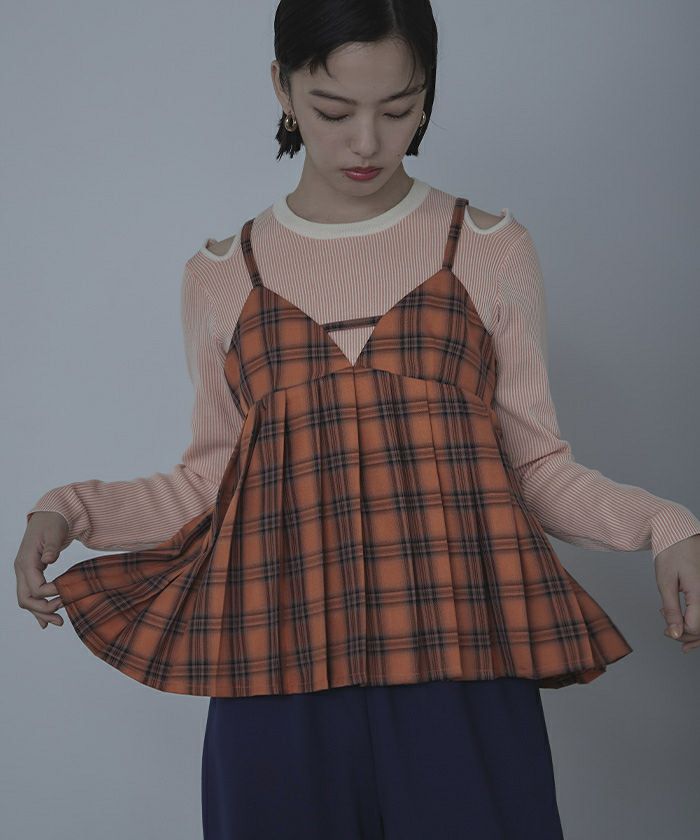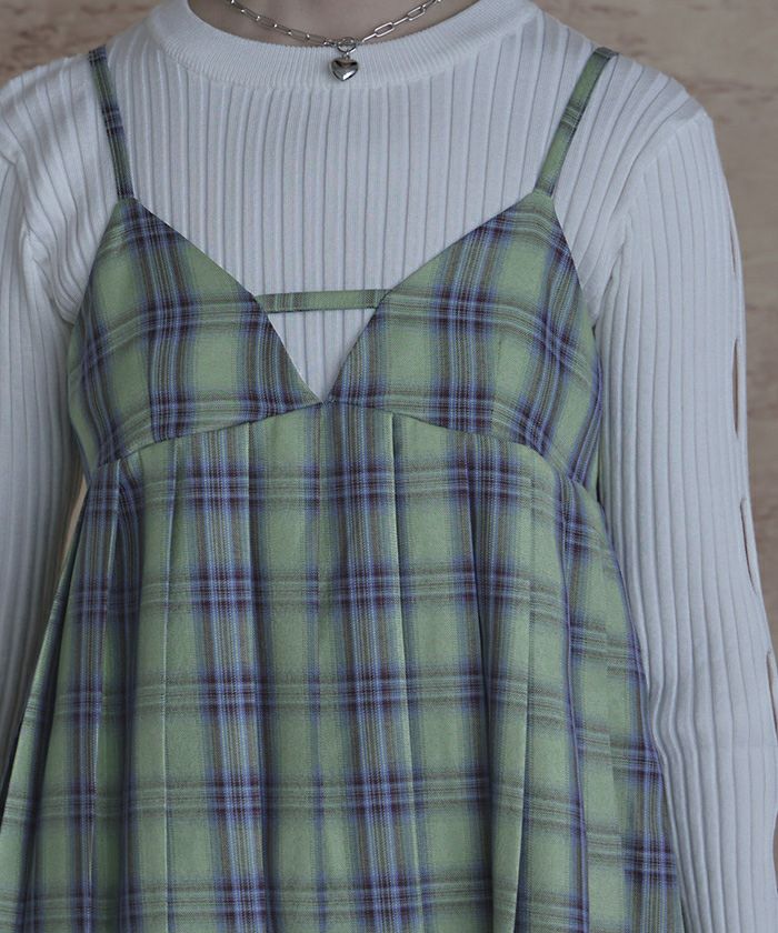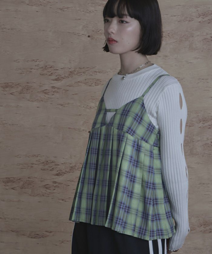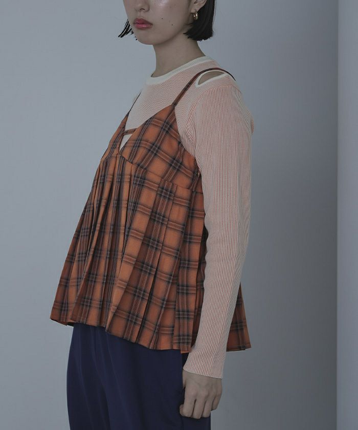 チェック柄プリーツビスチェ〔メール便可/100〕