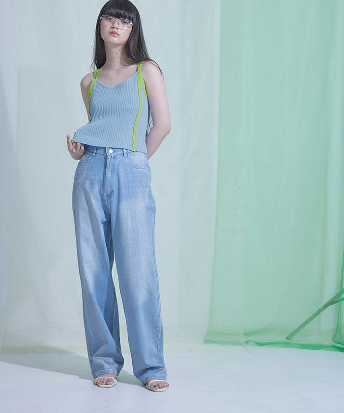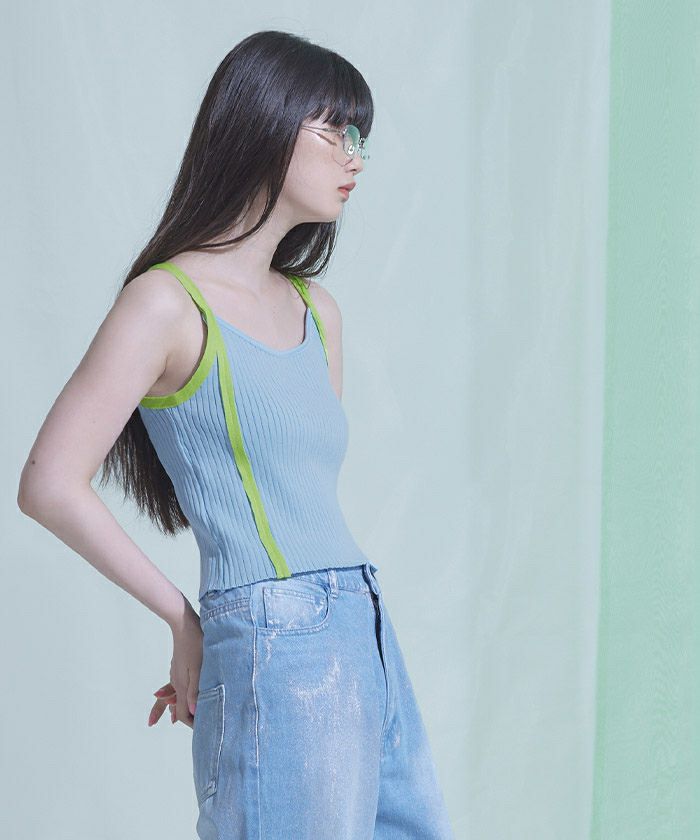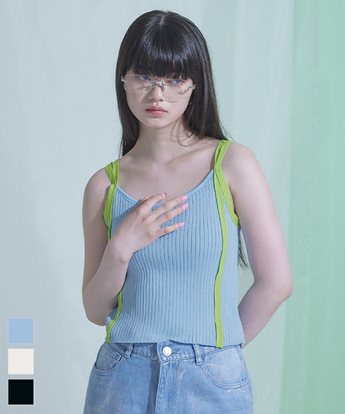 配色ダブルストラップキャミソール〔メール便可/50〕