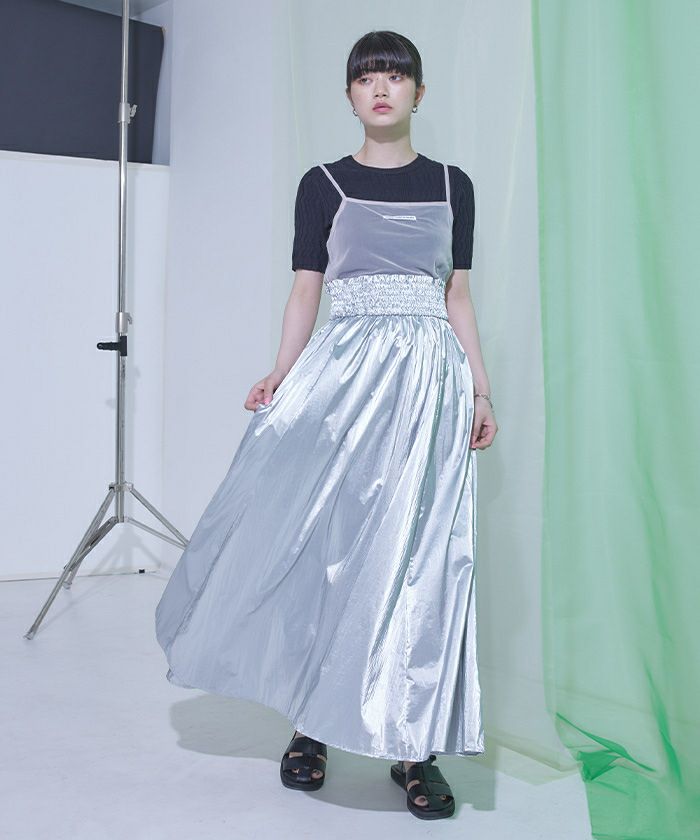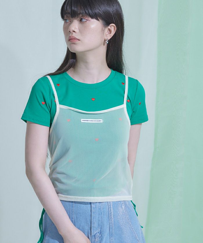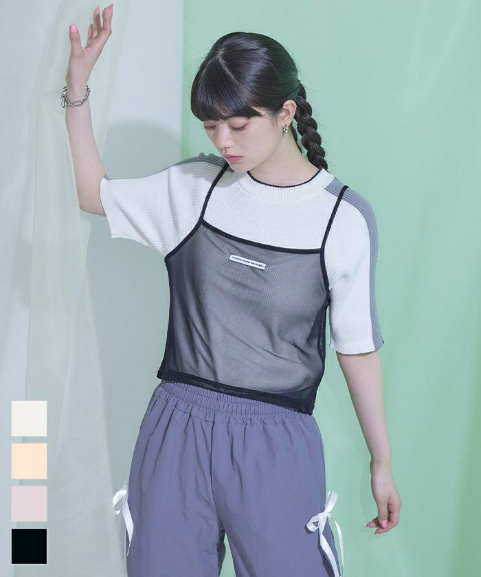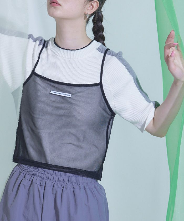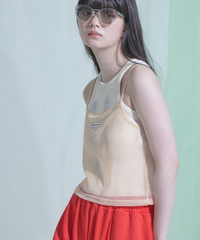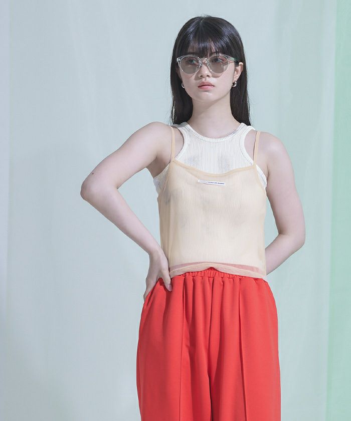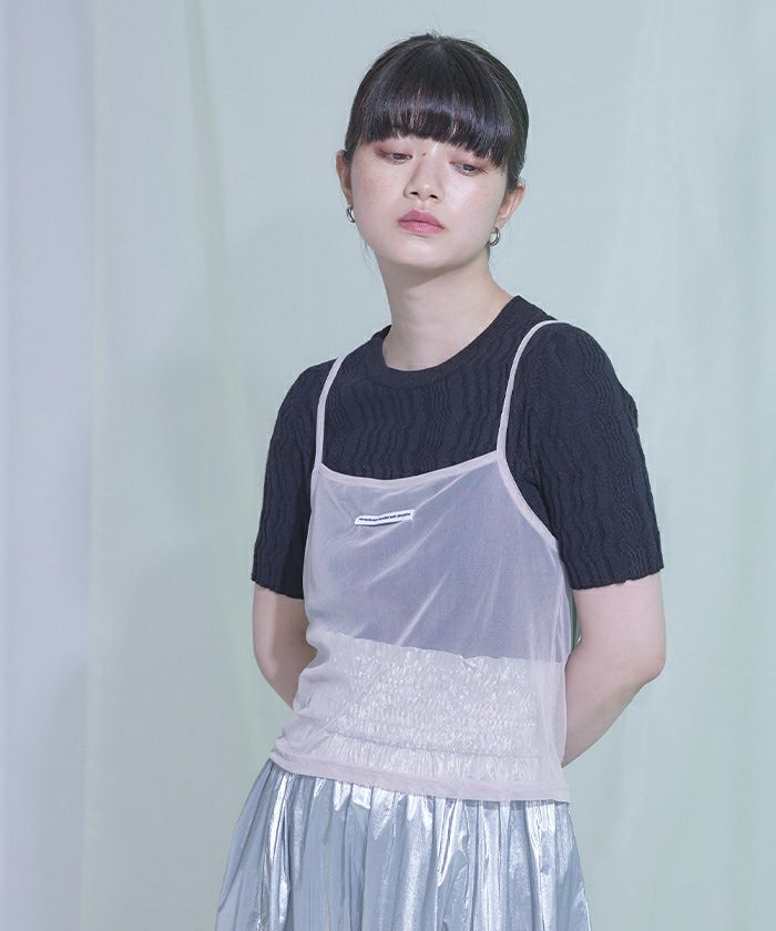 ・ロゴタグデザインがポイントのシアーキャミソール。