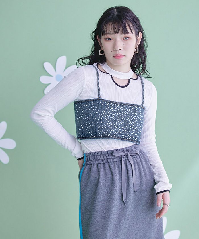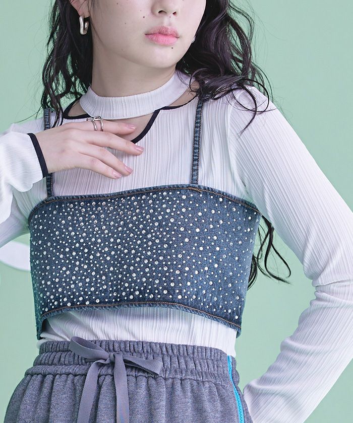 ・ラインストーンを散りばめたキラキラ感がかわいいデニムビスチェ。