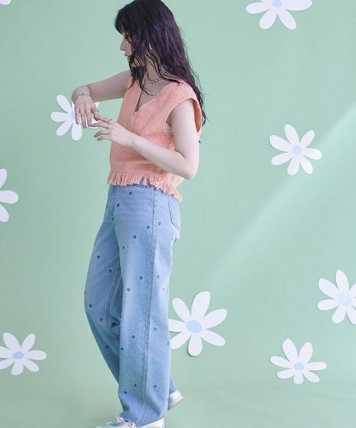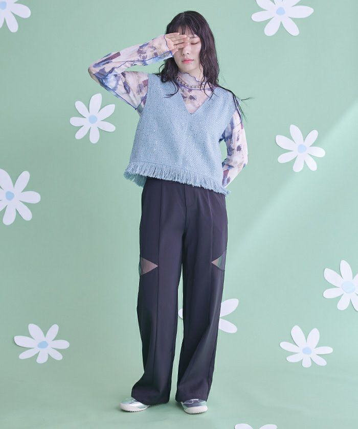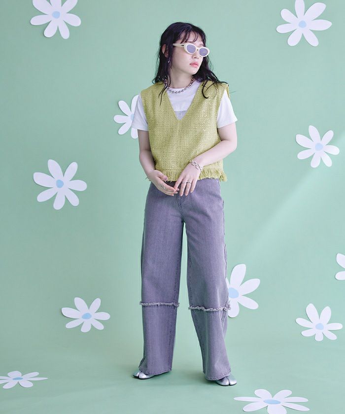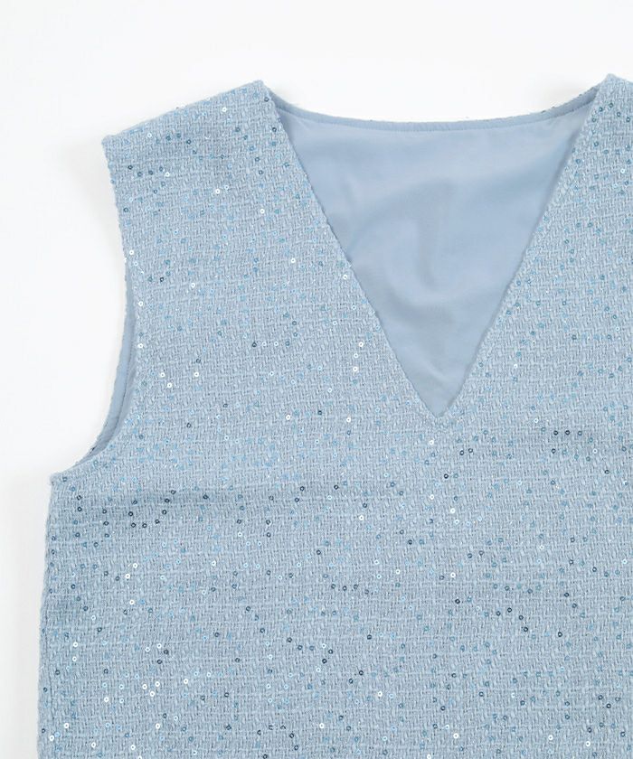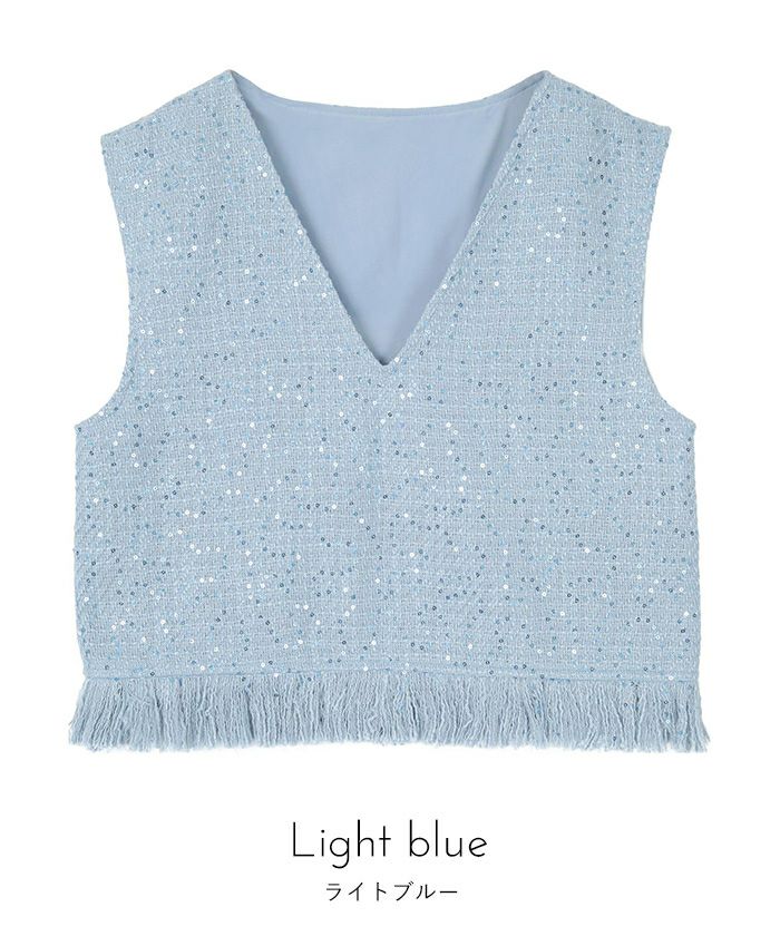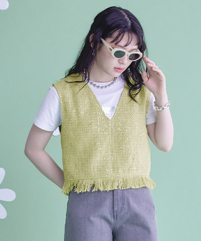 スパンコールツイードフリンジショートベスト〔メール便可/90〕