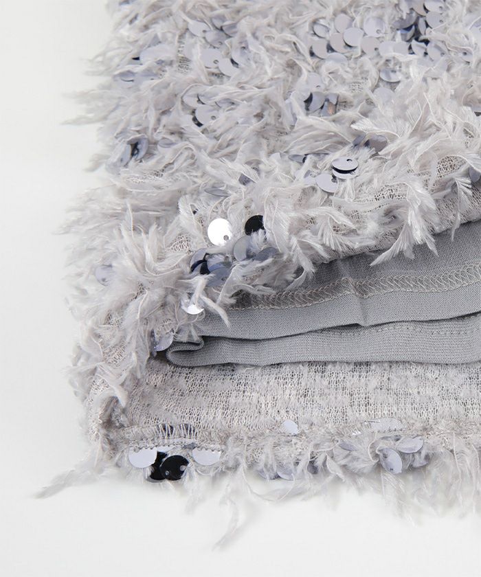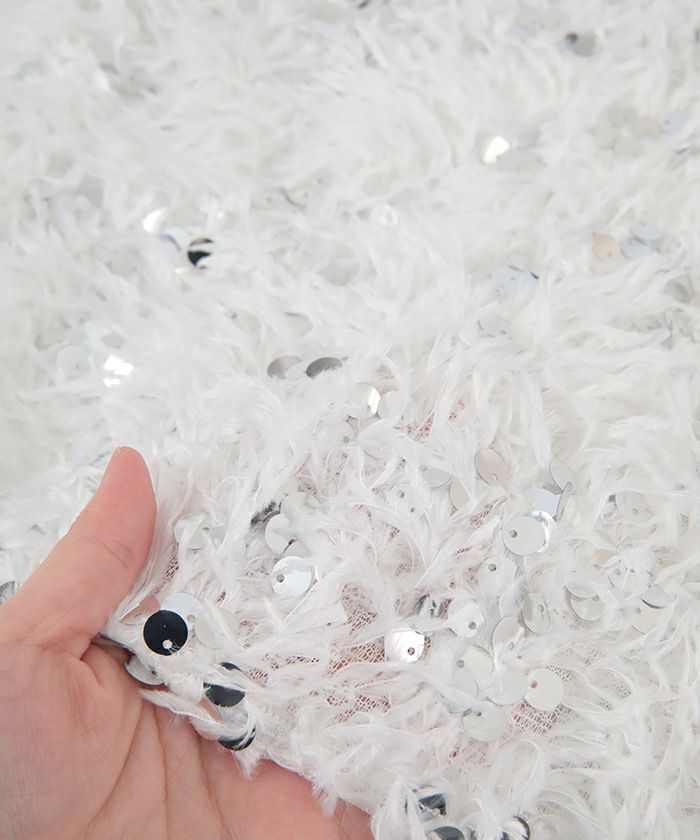 ・スパンコール付きのふわふわのフェザー素材を使用。