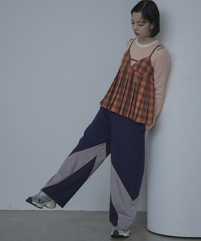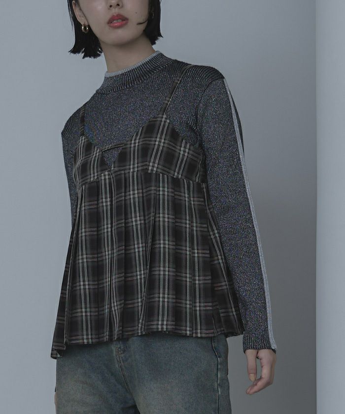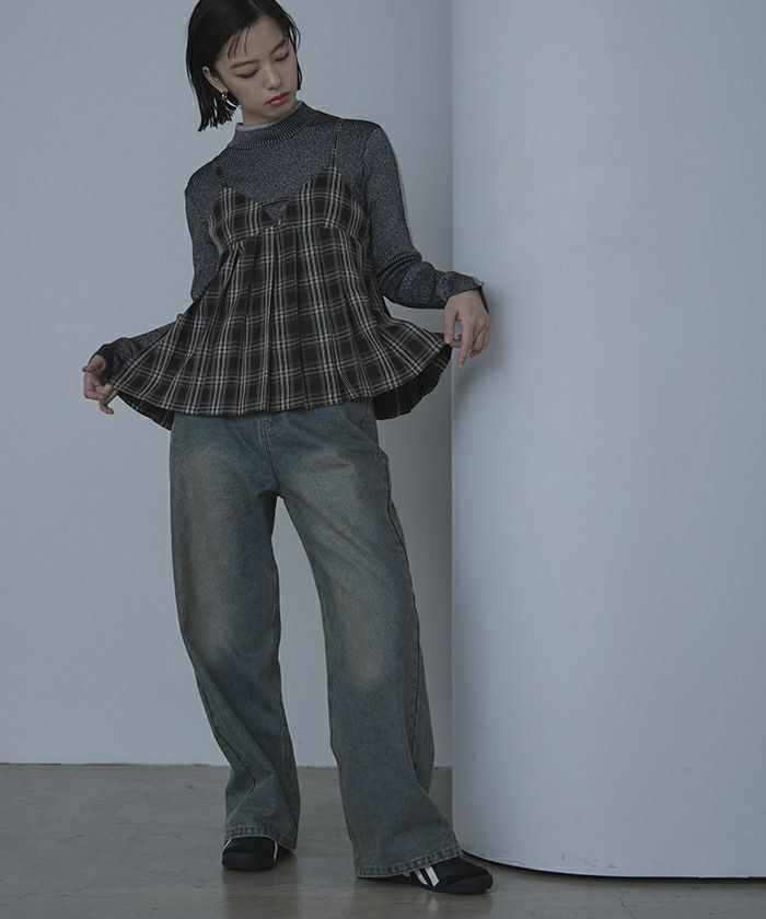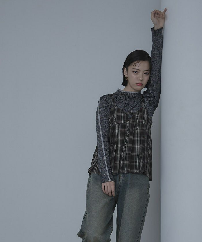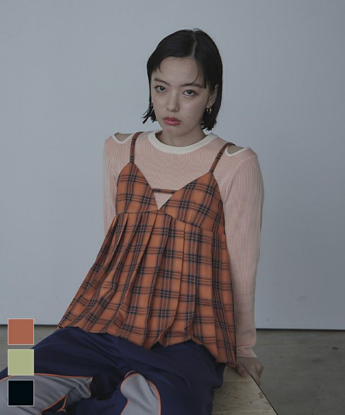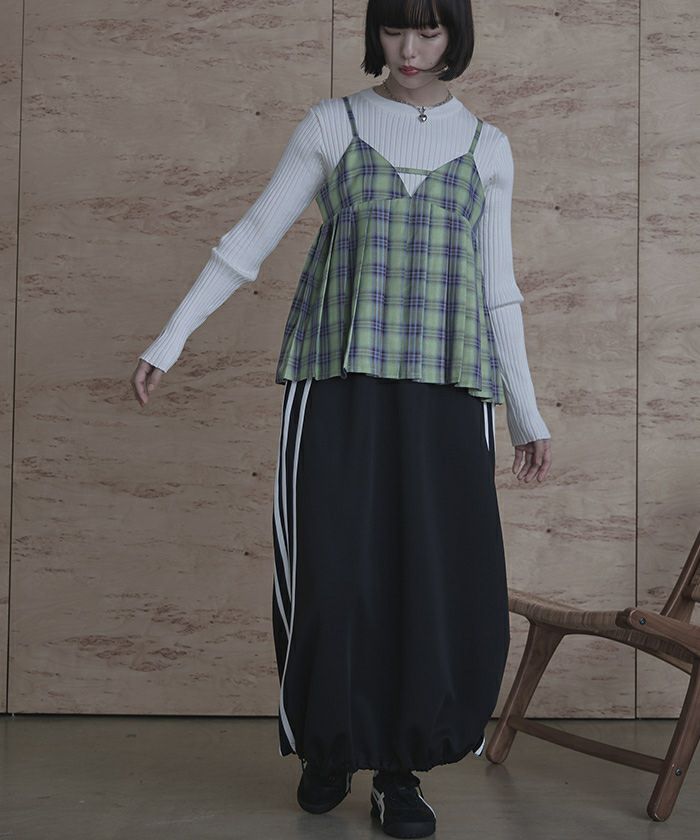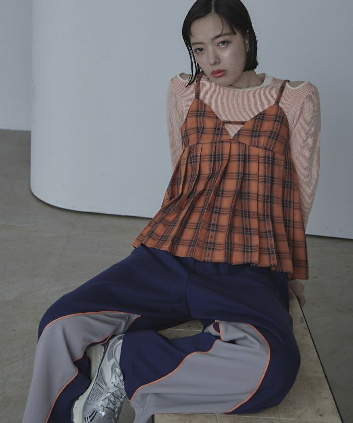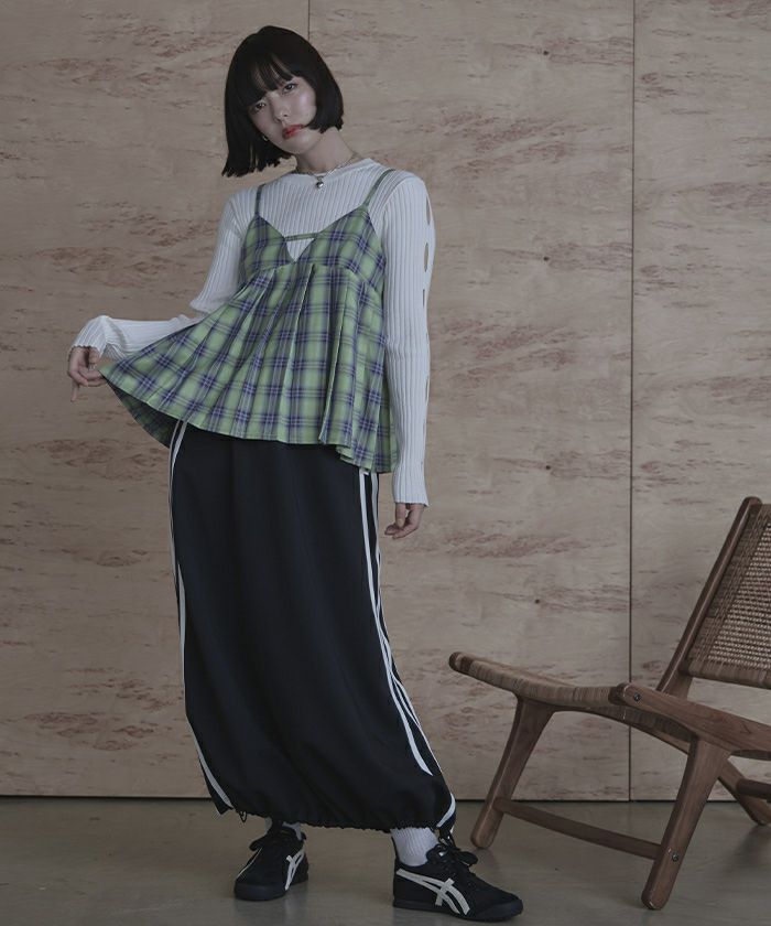 ・大胆なチェック柄がスタイリングに映えるビスチェ