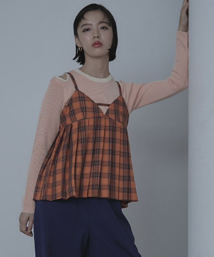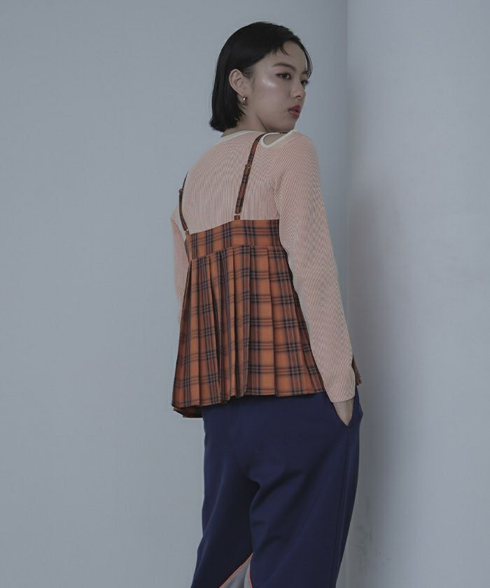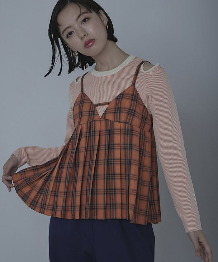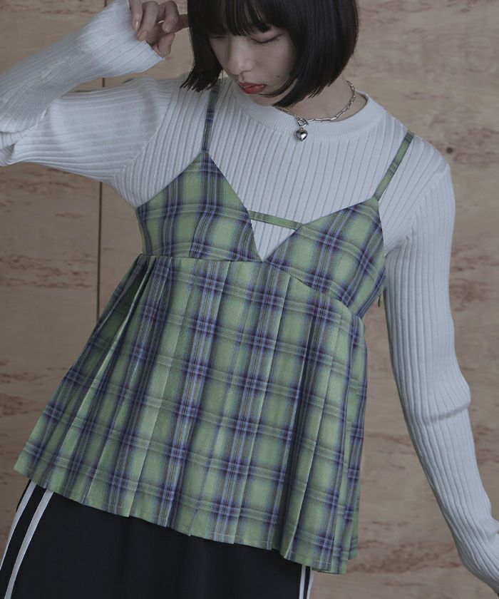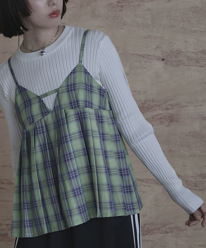 チェック柄プリーツビスチェ〔メール便可/100〕