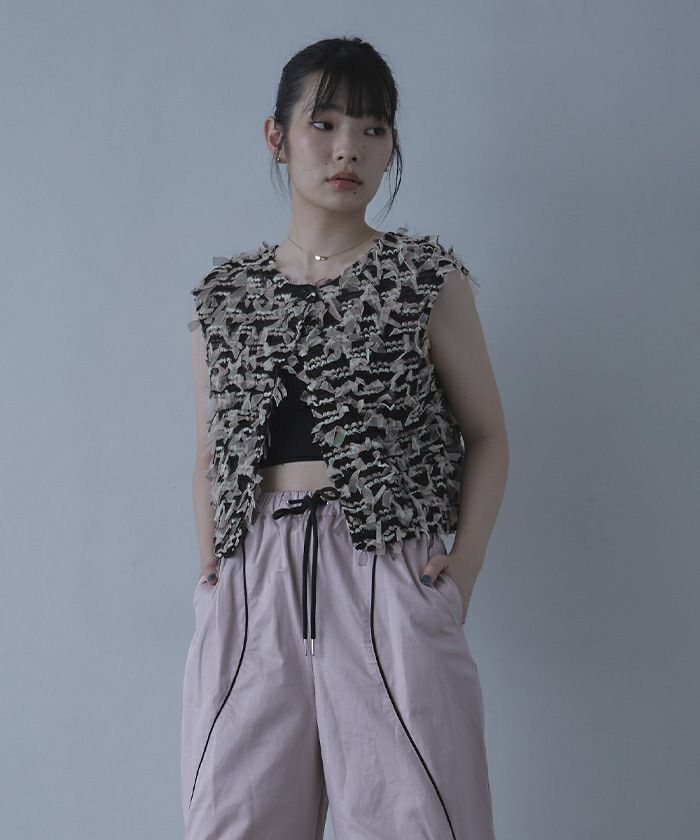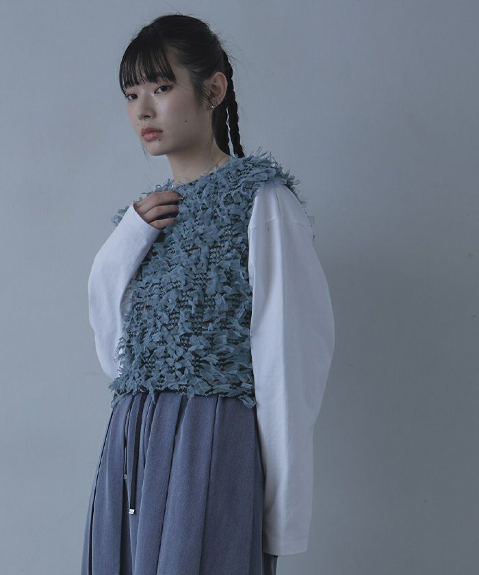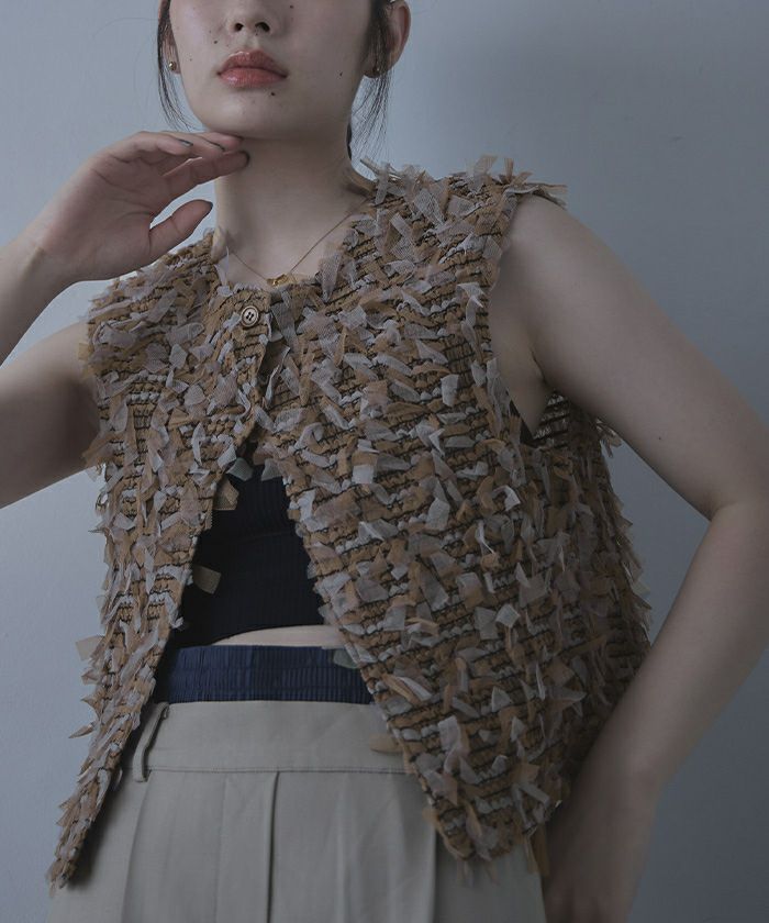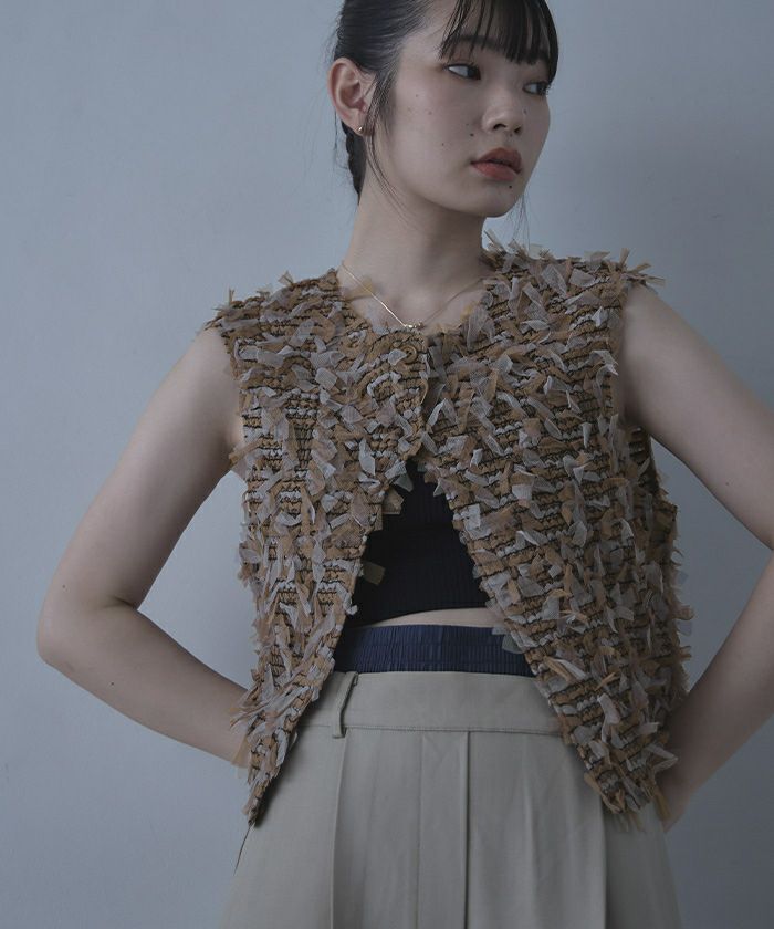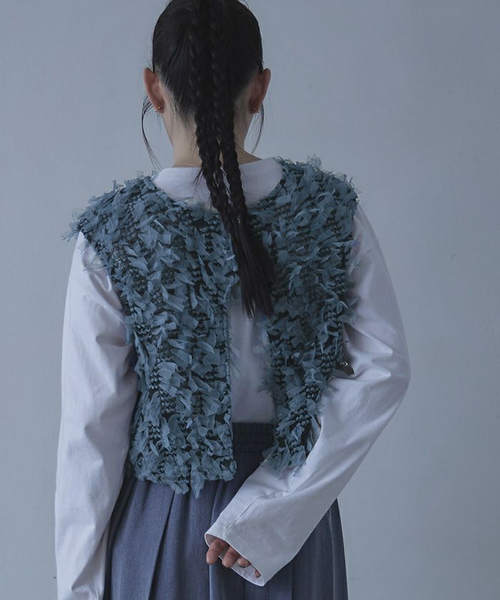 ・フリフリのチュールジャガード素材がアクセントのベスト