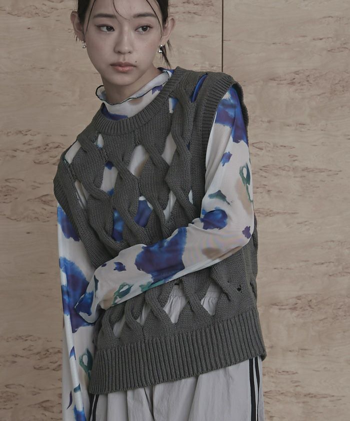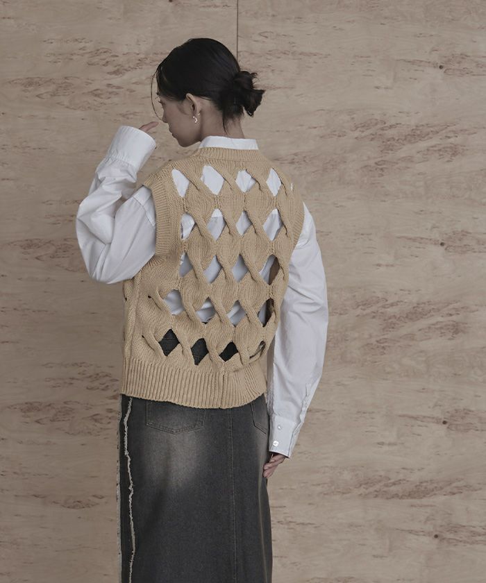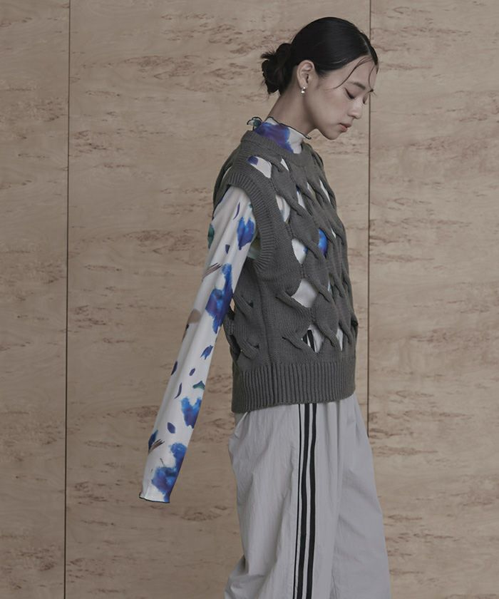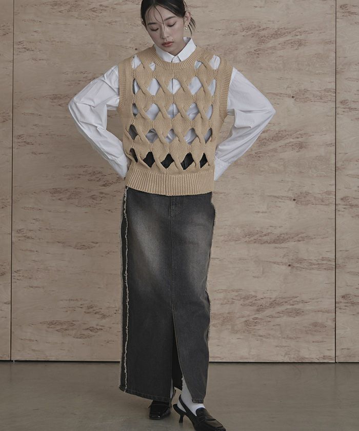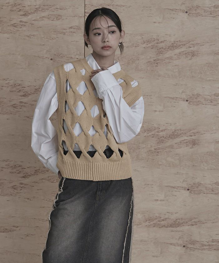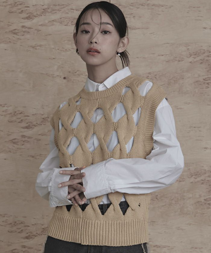 スラッシュケーブルニットベスト