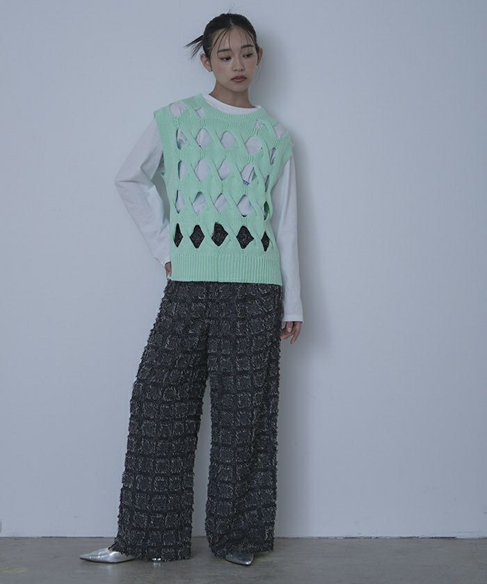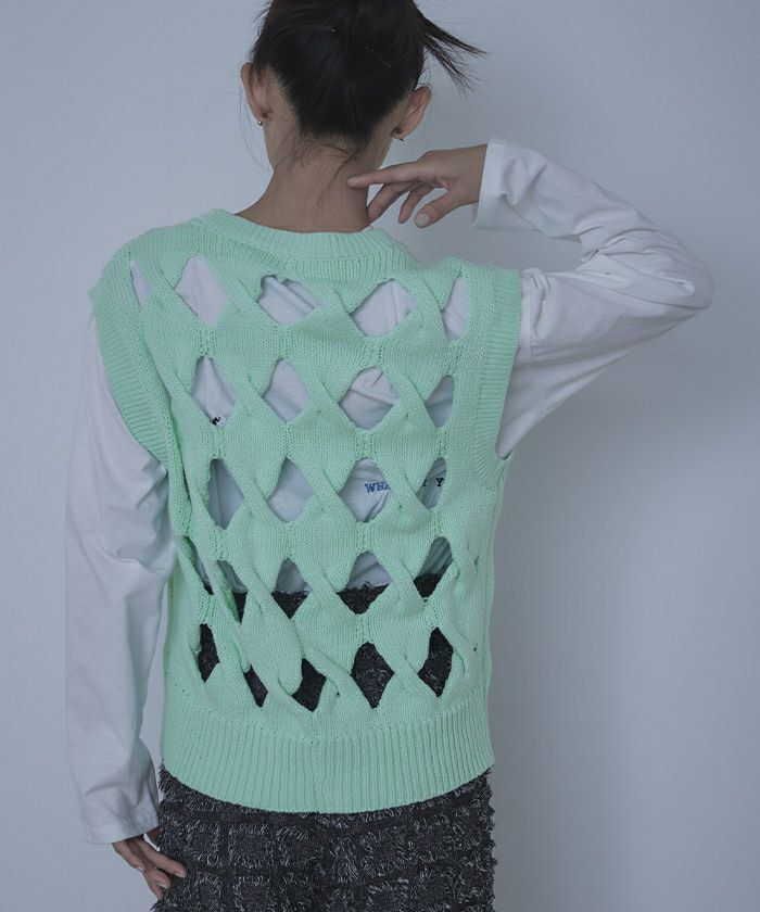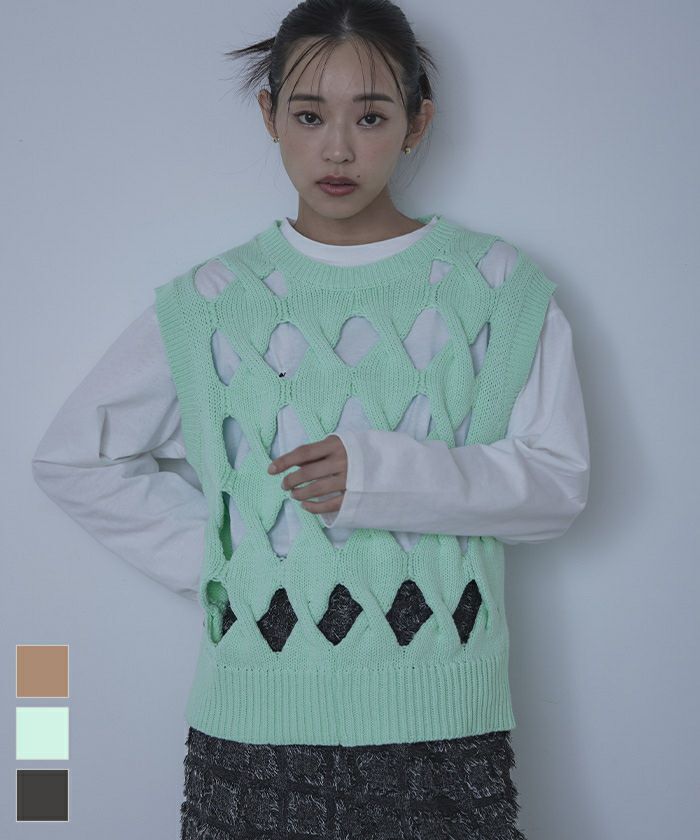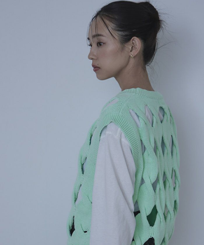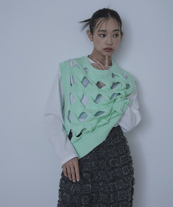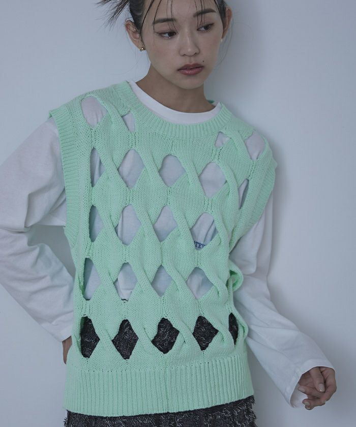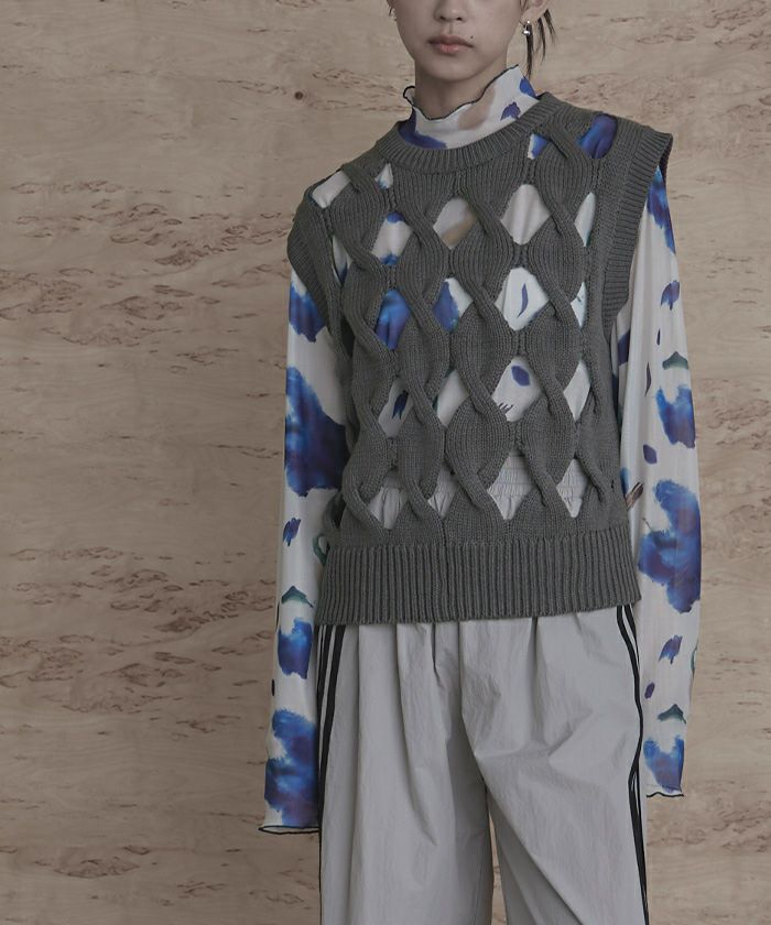 スラッシュケーブルニットベスト