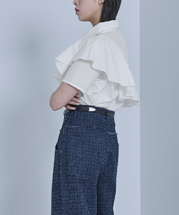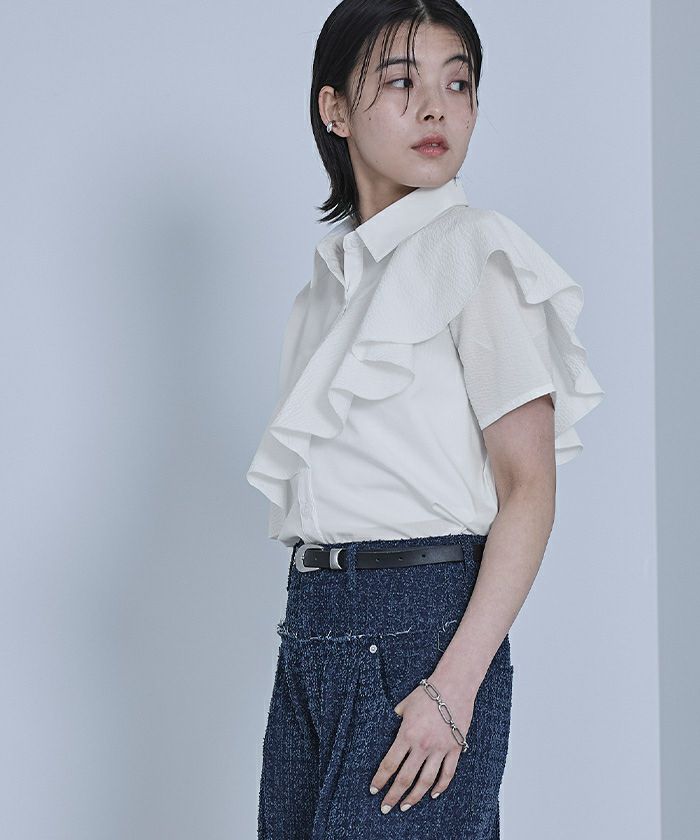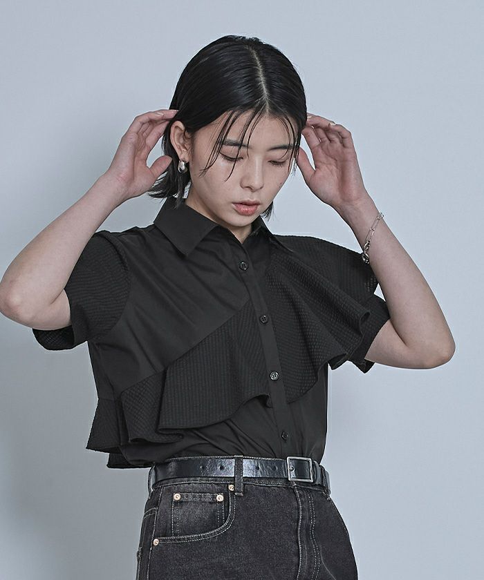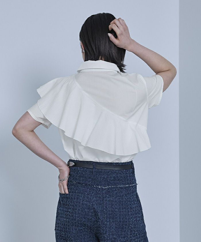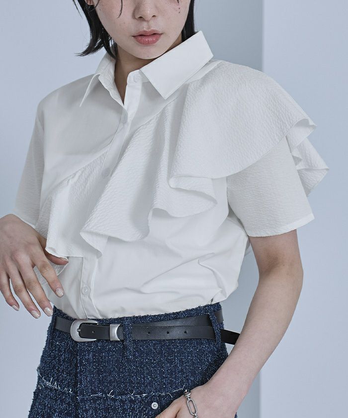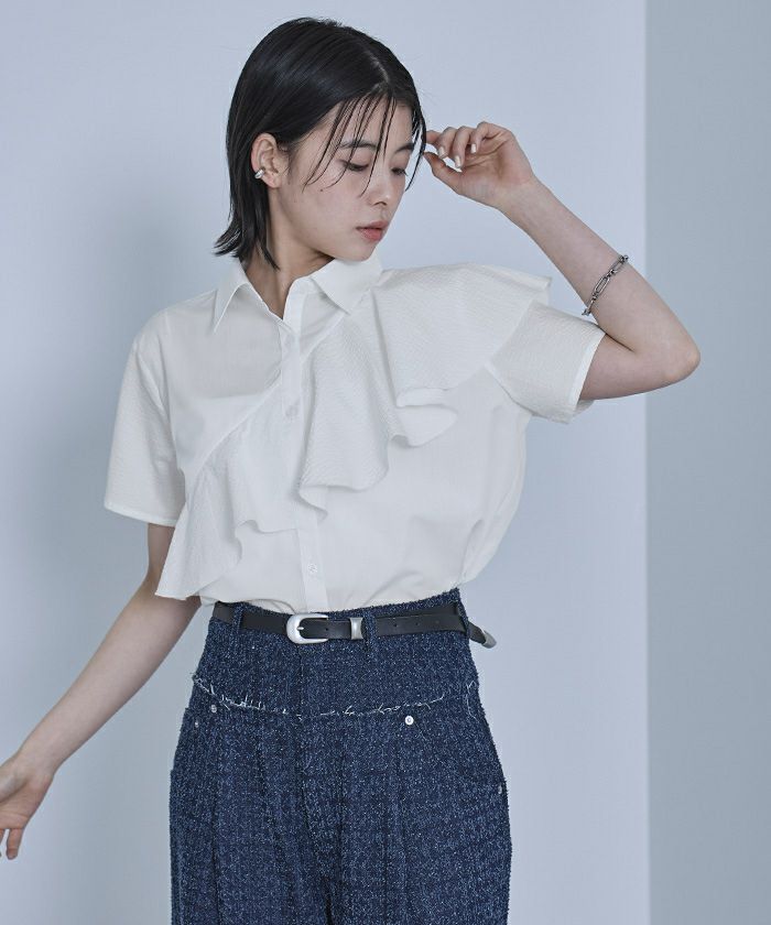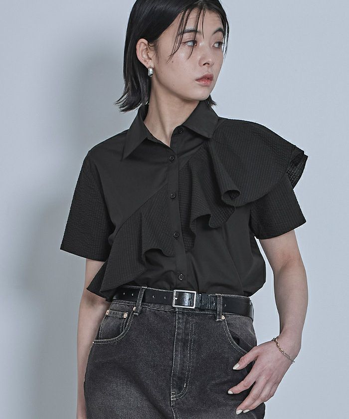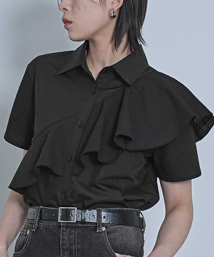 アシンメトリーラッフル半袖シャツ〔メール便可/100〕