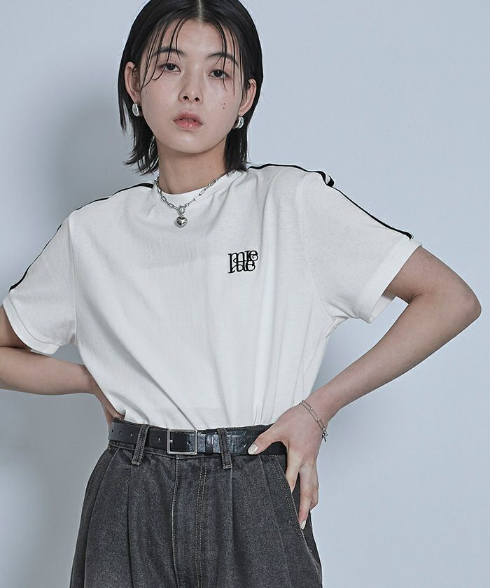 ロゴ刺繍ラインTシャツ〔メール便可/100〕