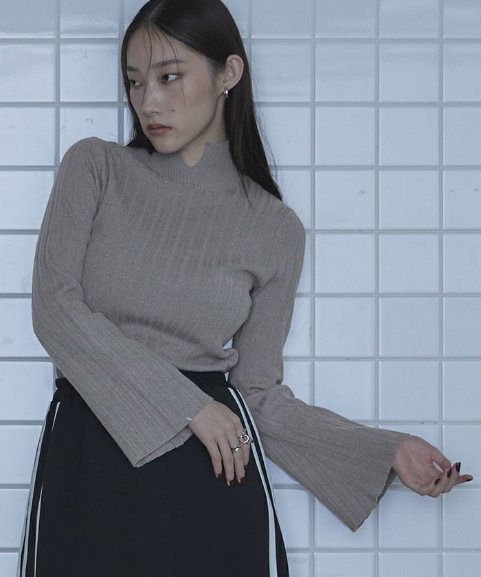 ランダムリブフレアスリーブニット