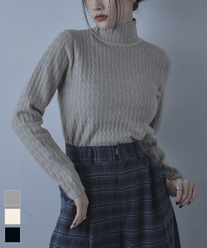 ハイネックジグザグリブニット