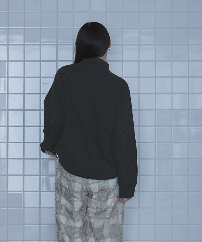 シャギー切替ハーフジップニット