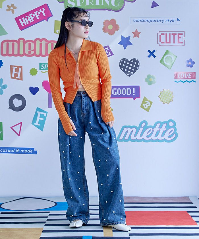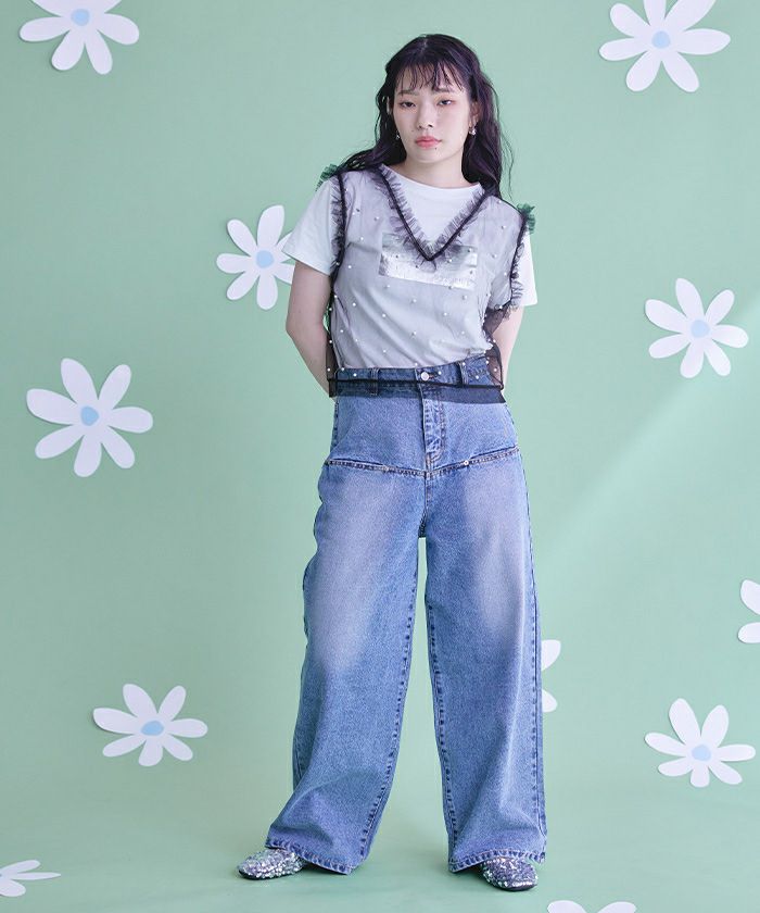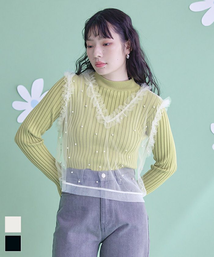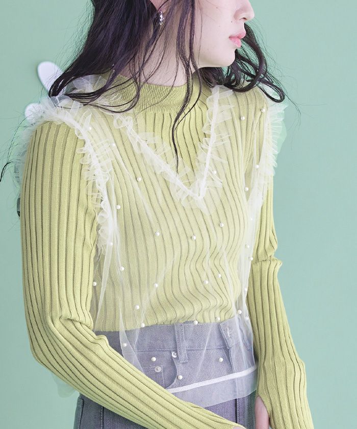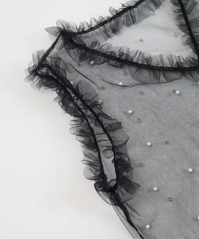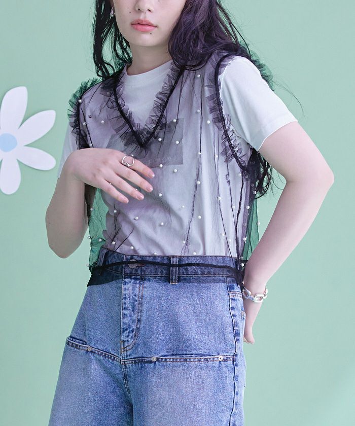 パール付きチュールフリルVネックトップス〔メール便可/80〕