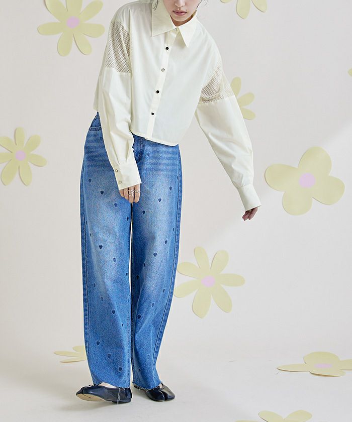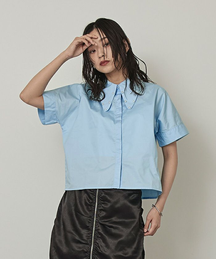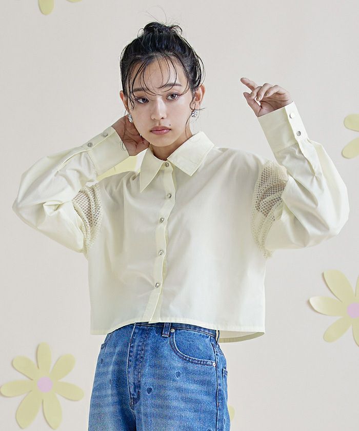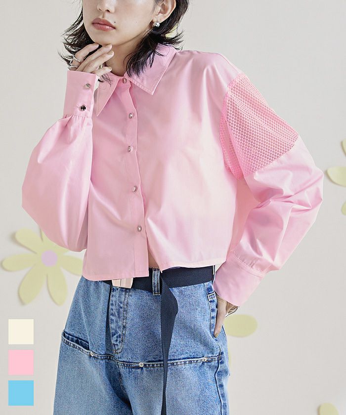 メッシュ切替クロップドシャツ〔メール便可/100〕