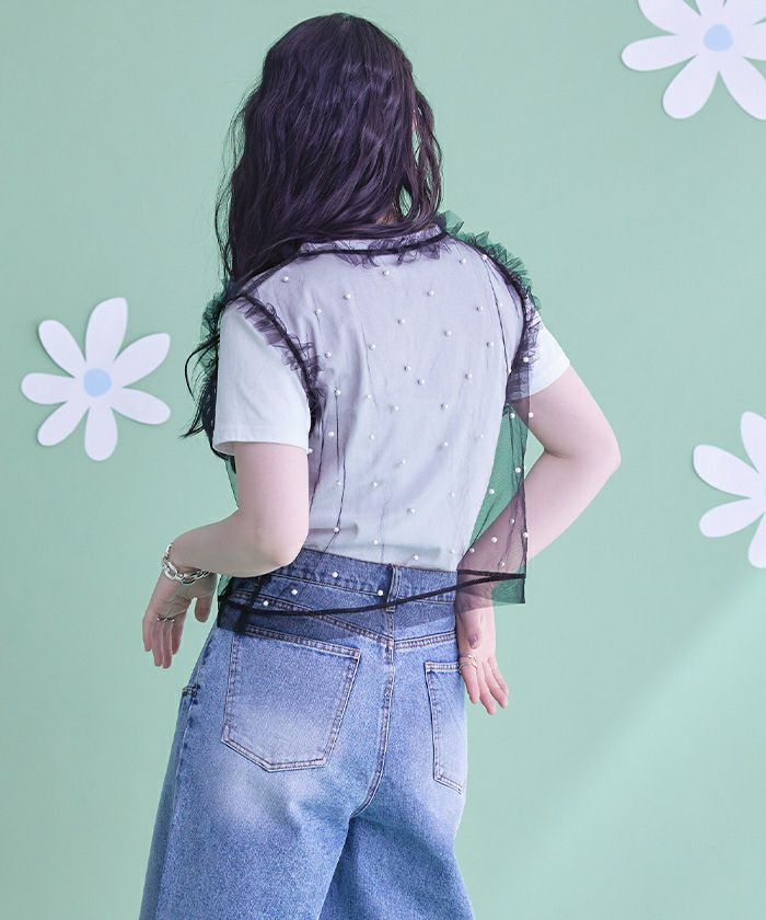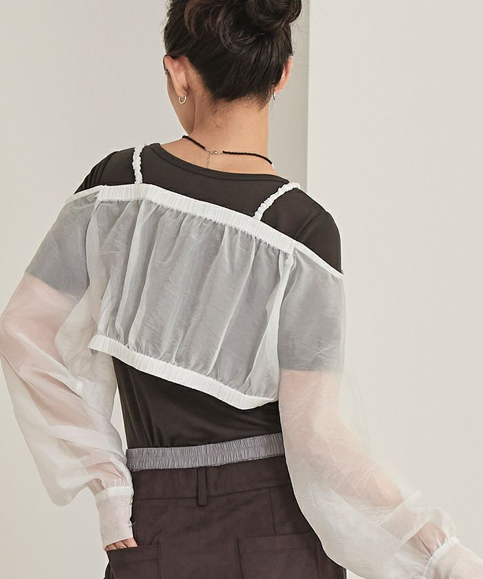 チュールフロントシャーリングトップス〔メール便可/50〕