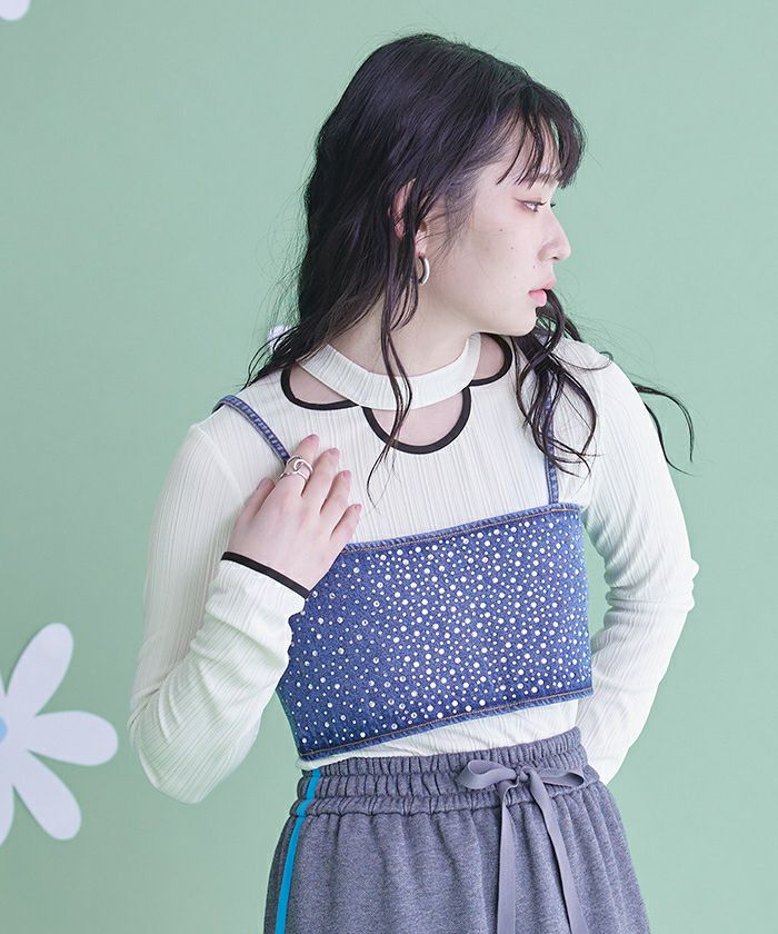 ラインストーンデニムビスチェ〔メール便可/50〕
