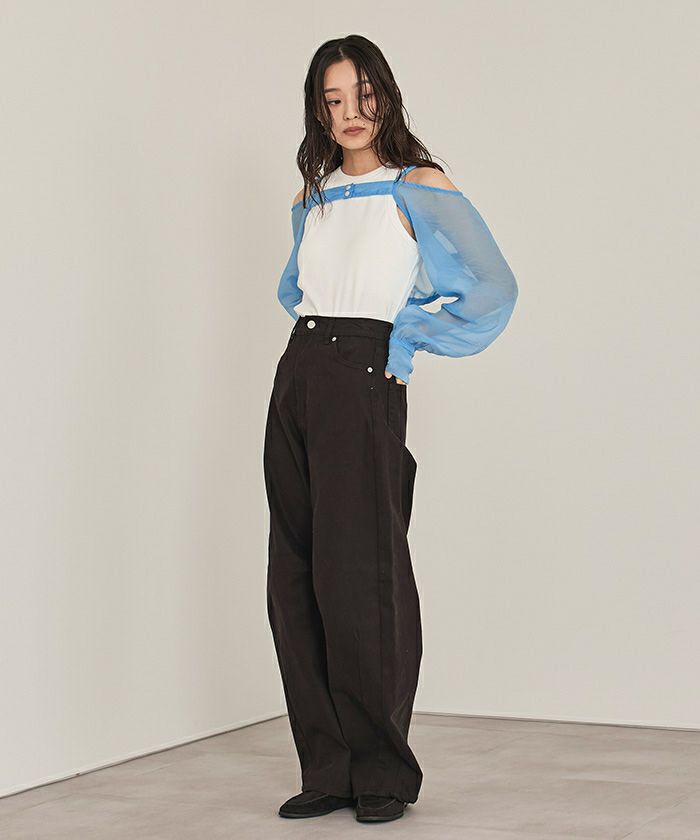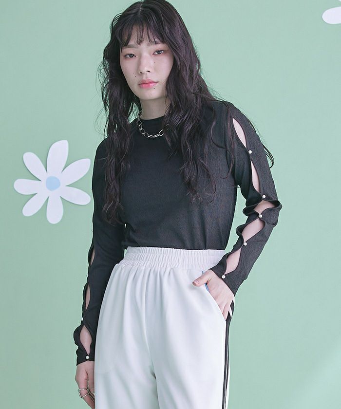 ショルダーカットアウトフロントジップシャツ〔メール便可/100〕