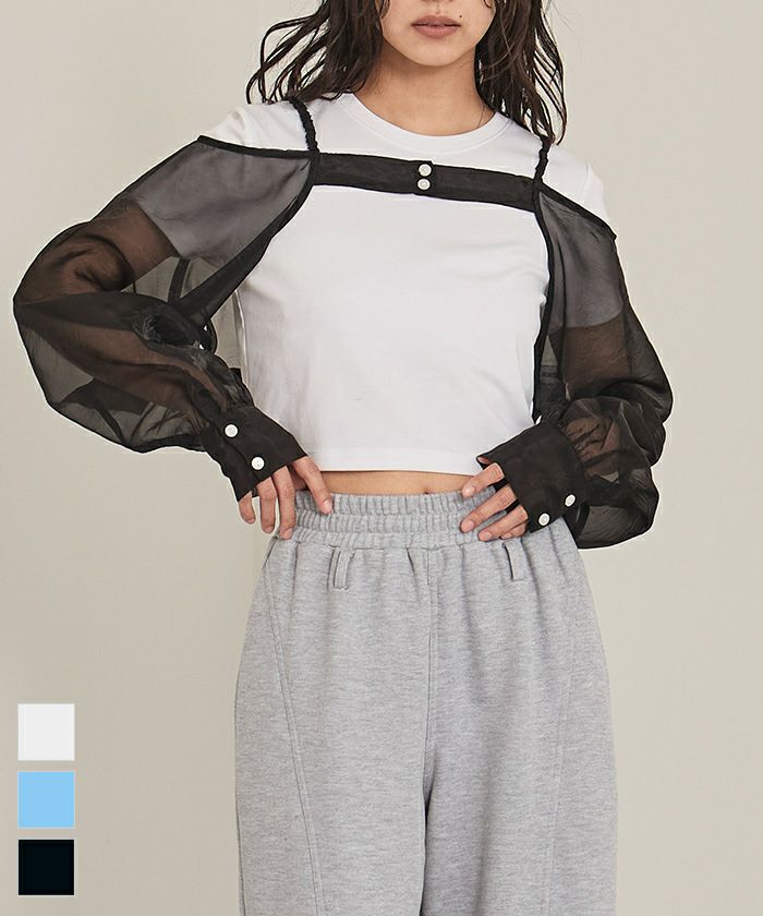 フロントチェーンボリュームスリーブシアーボレロ〔メール便可/70〕