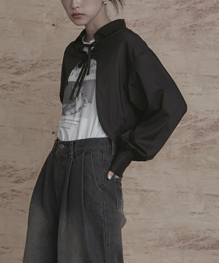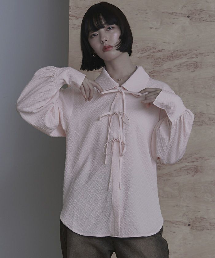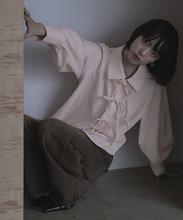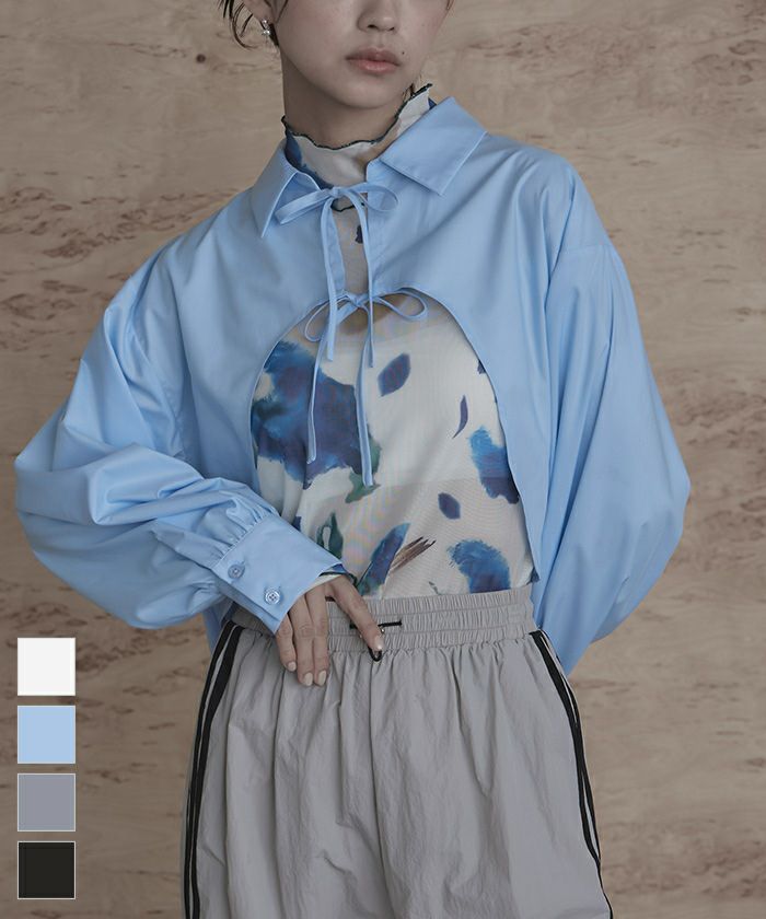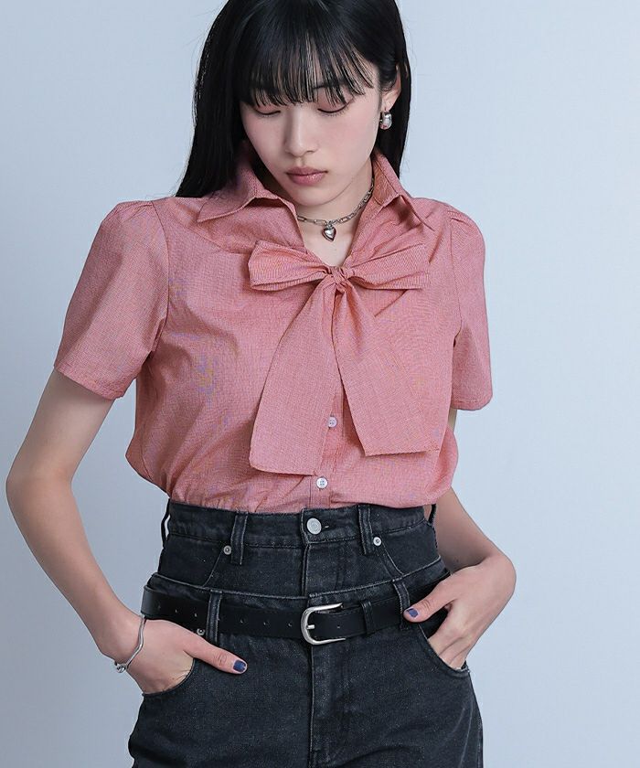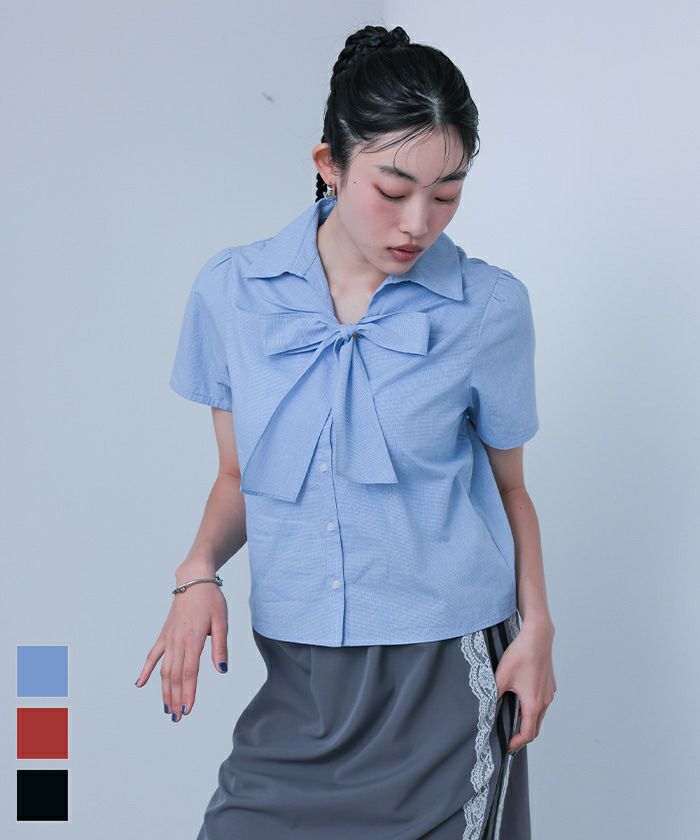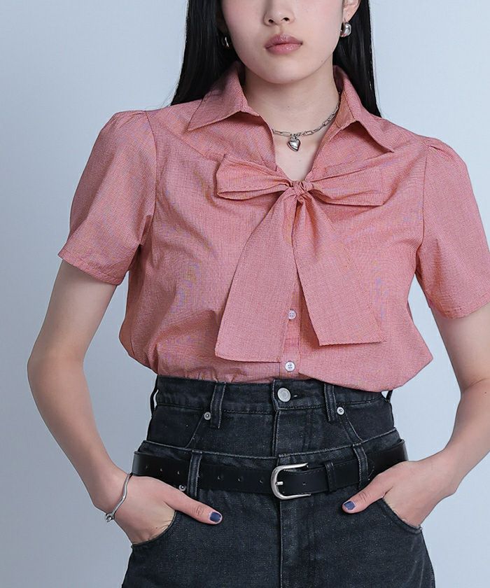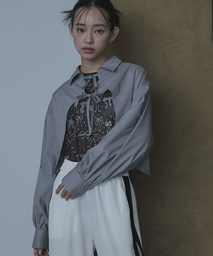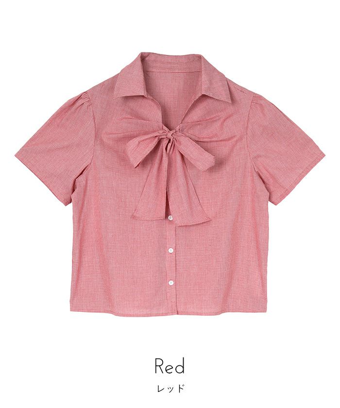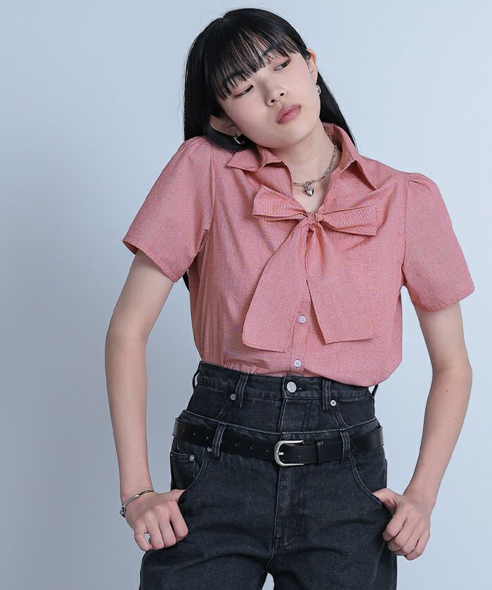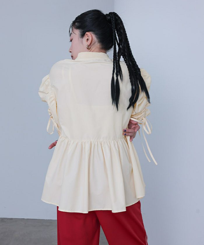 フロントリボンパフスリーブシャツ〔メール便可/100〕