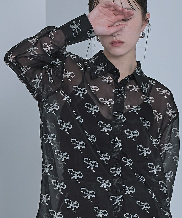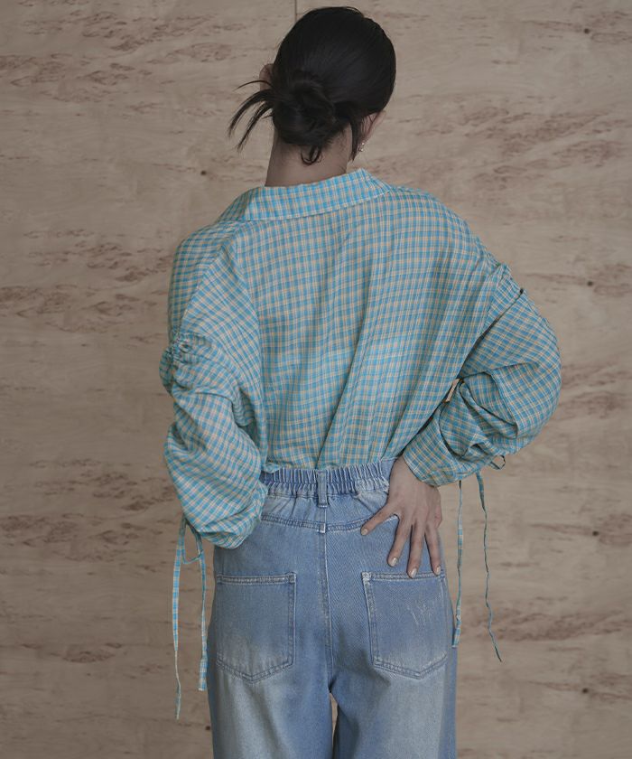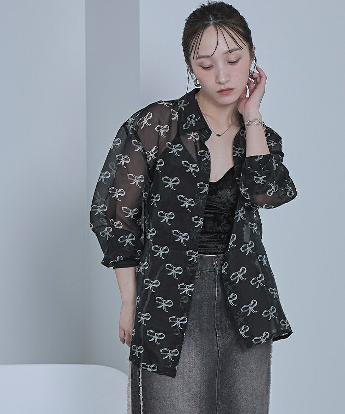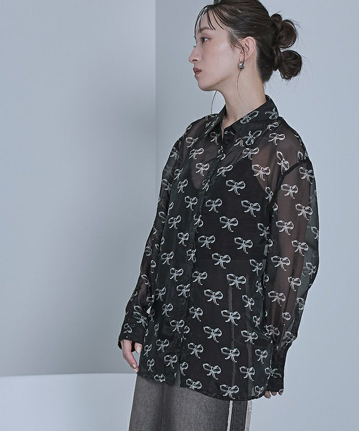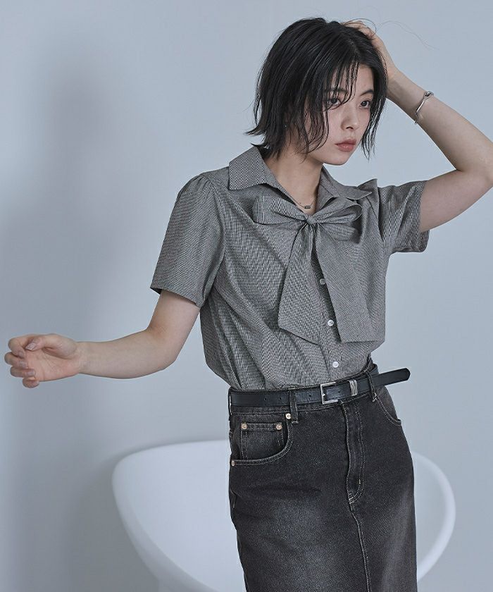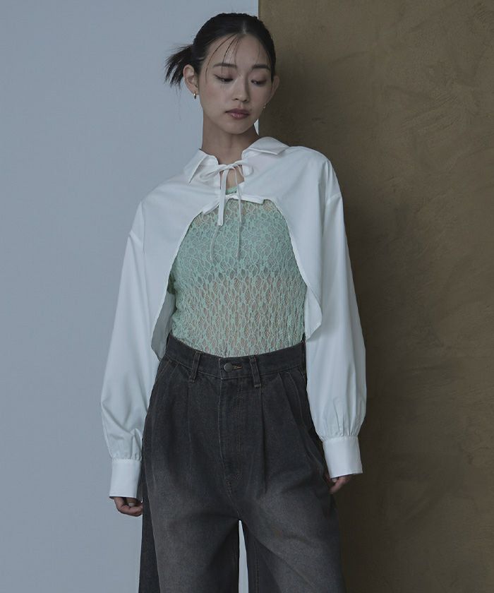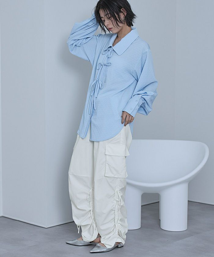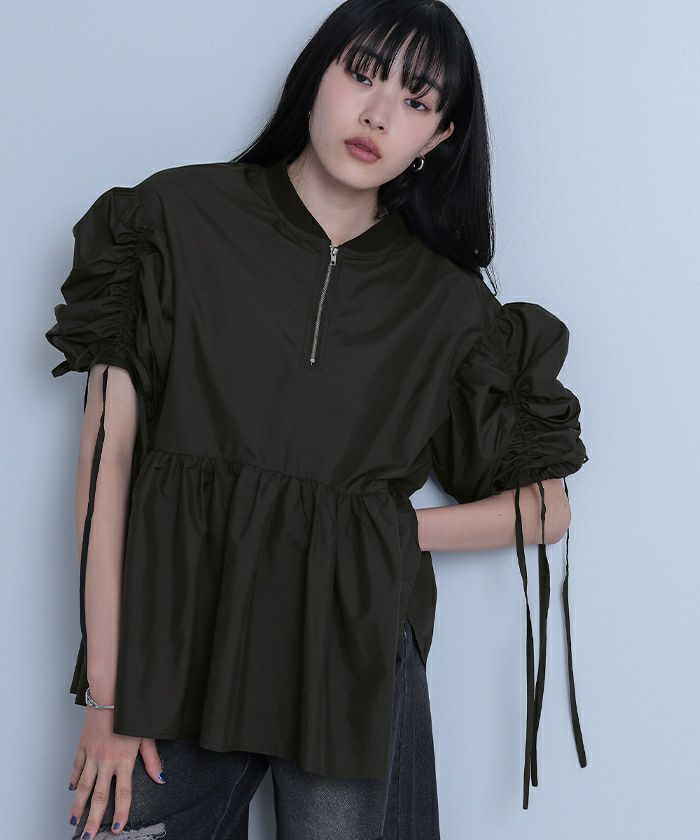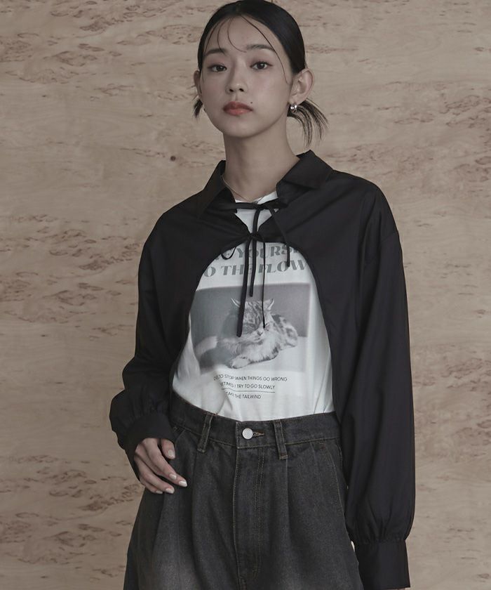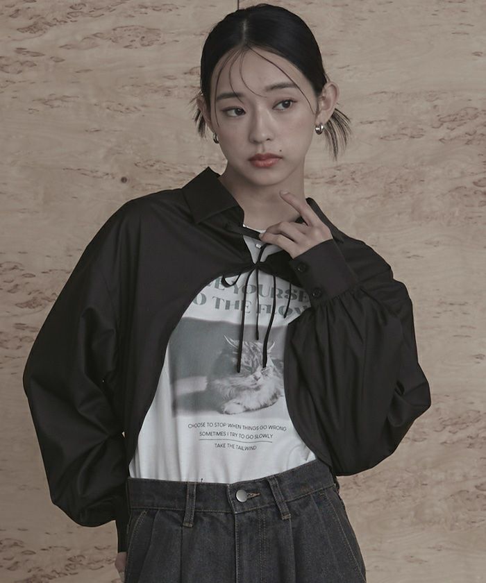 フロントリボンパフスリーブシャツ〔メール便可/100〕