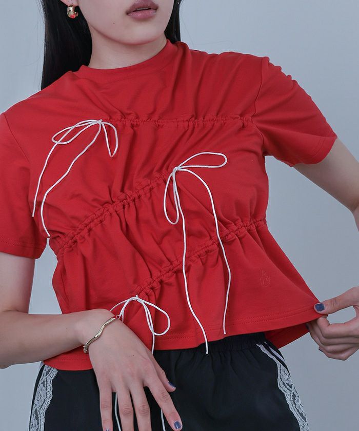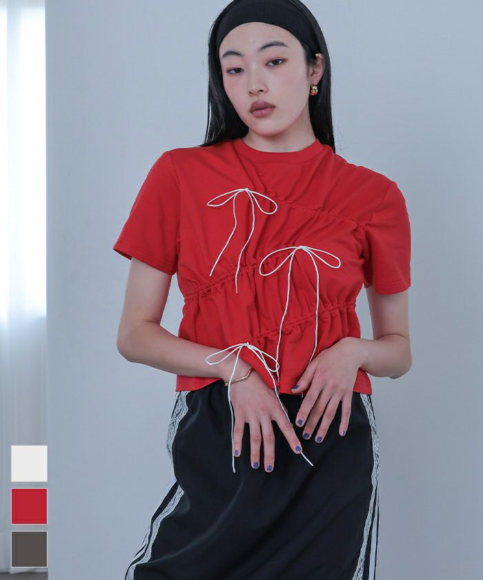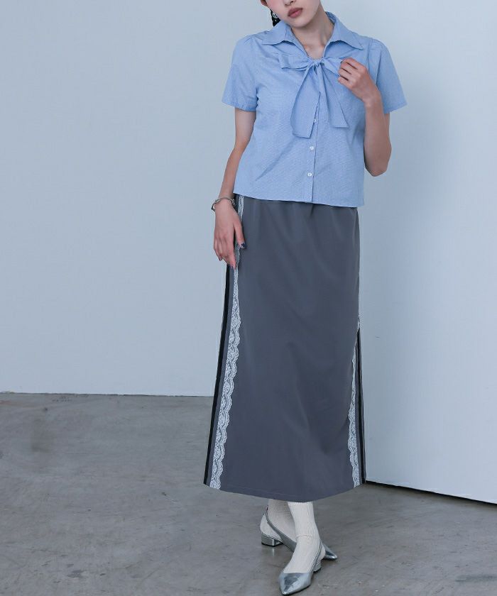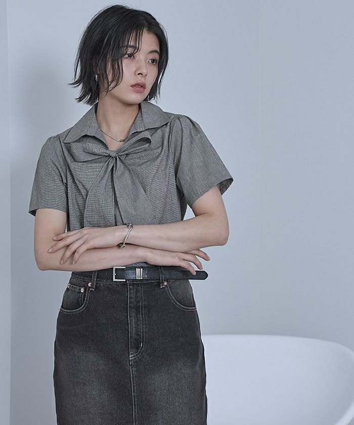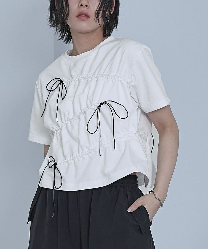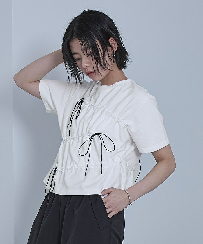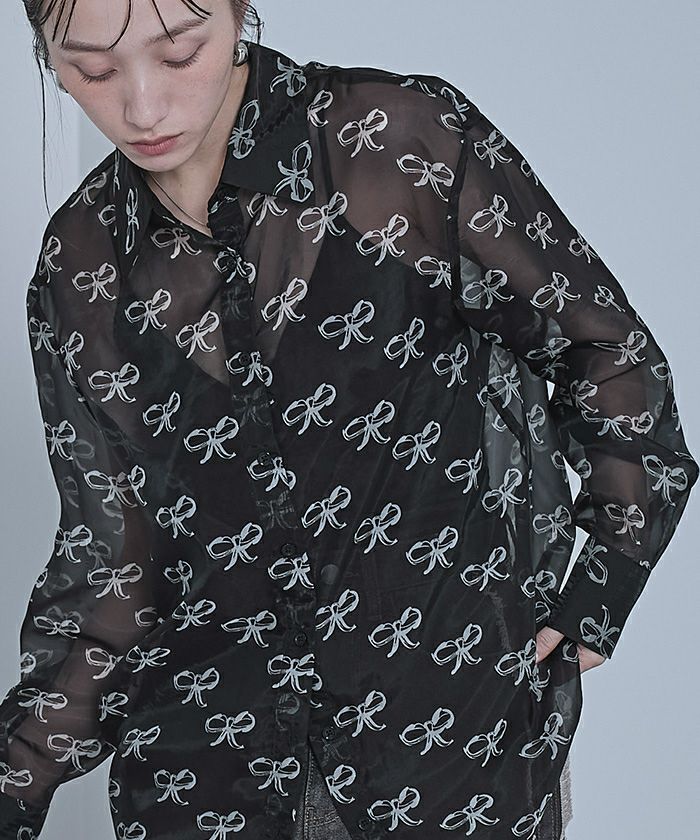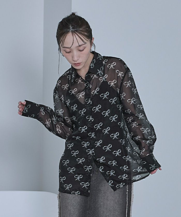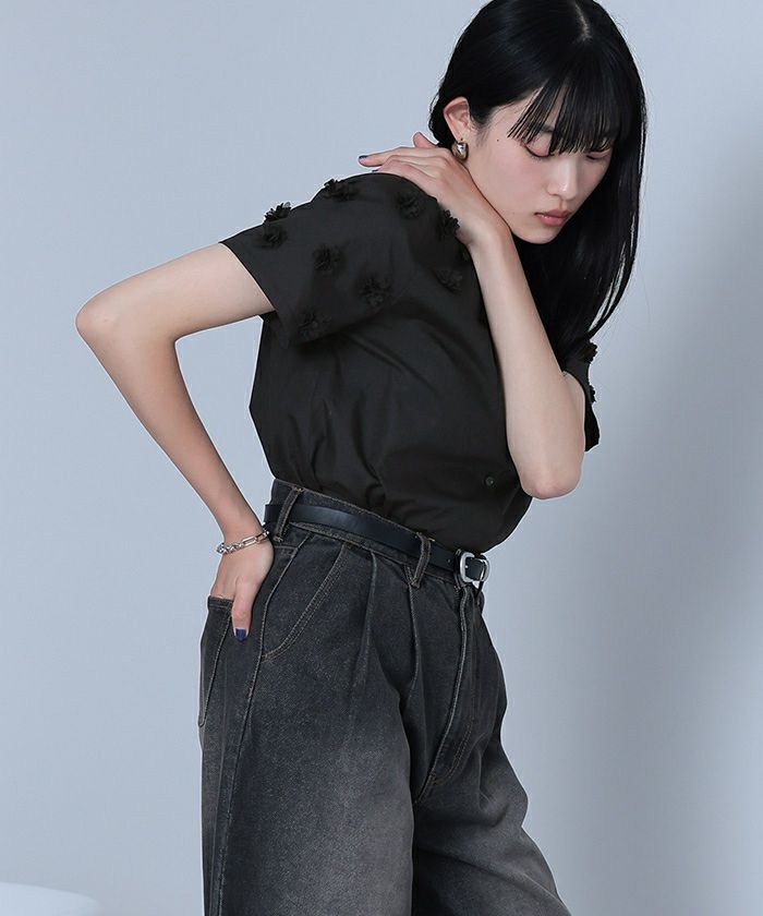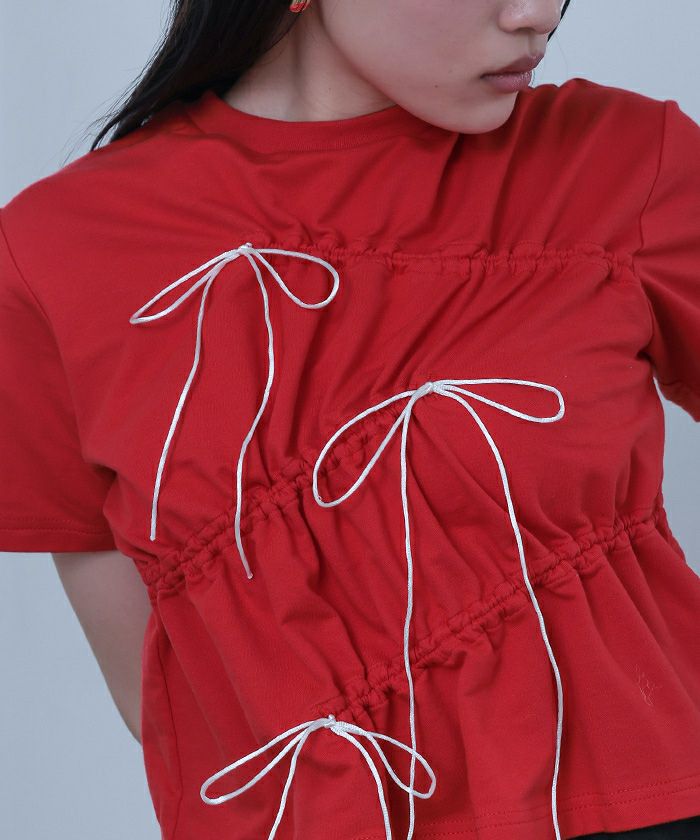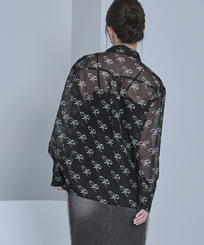 フロントリボンパフスリーブシャツ〔メール便可/100〕