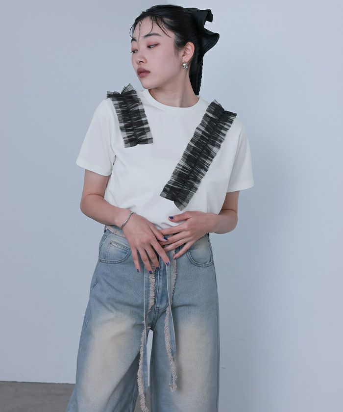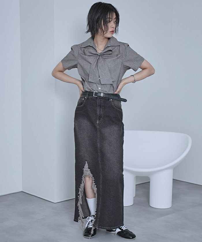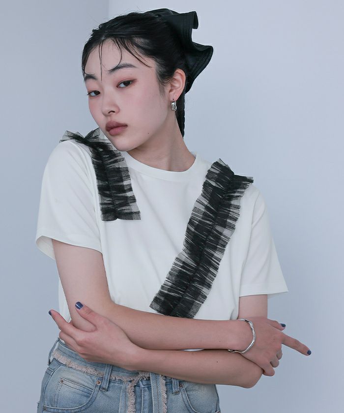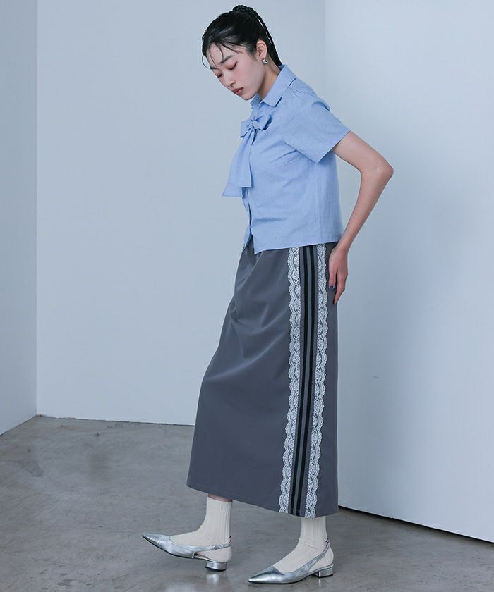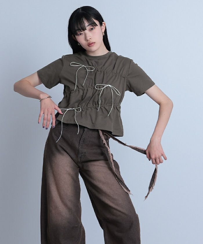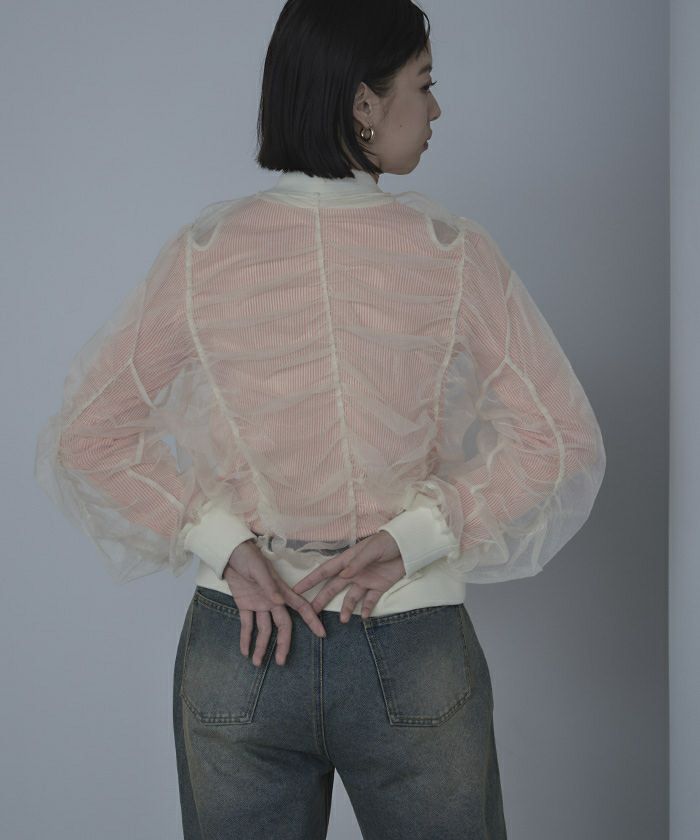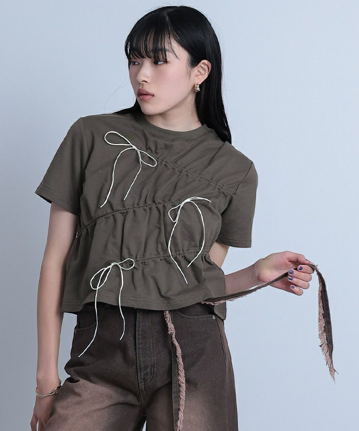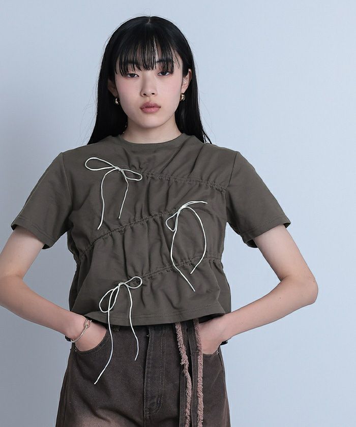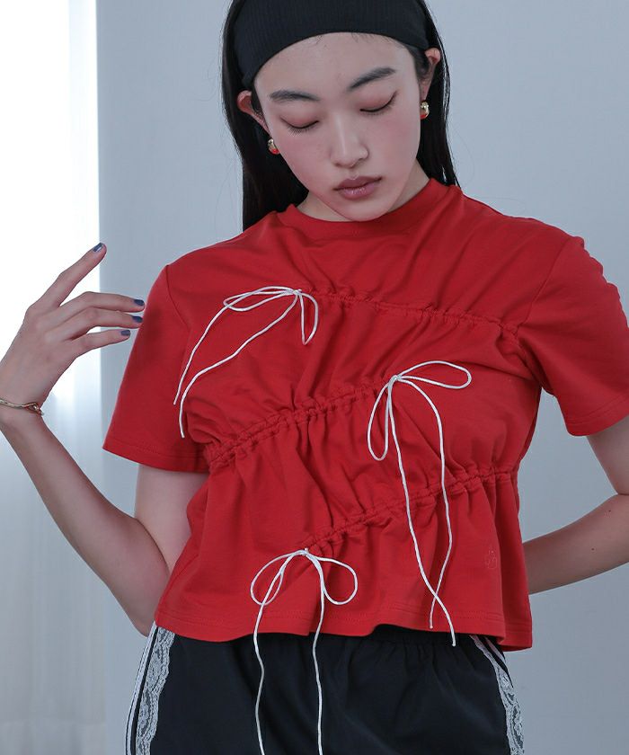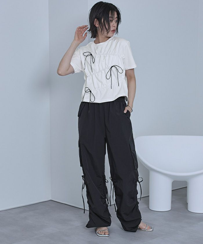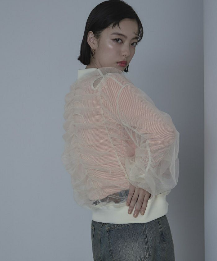 フロントリボンパフスリーブシャツ〔メール便可/100〕