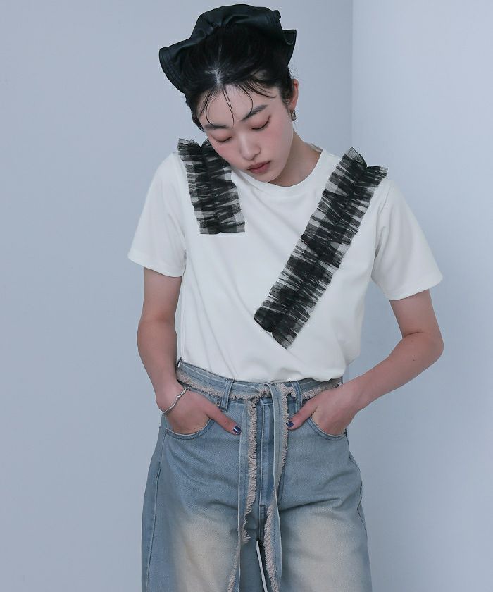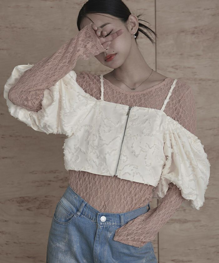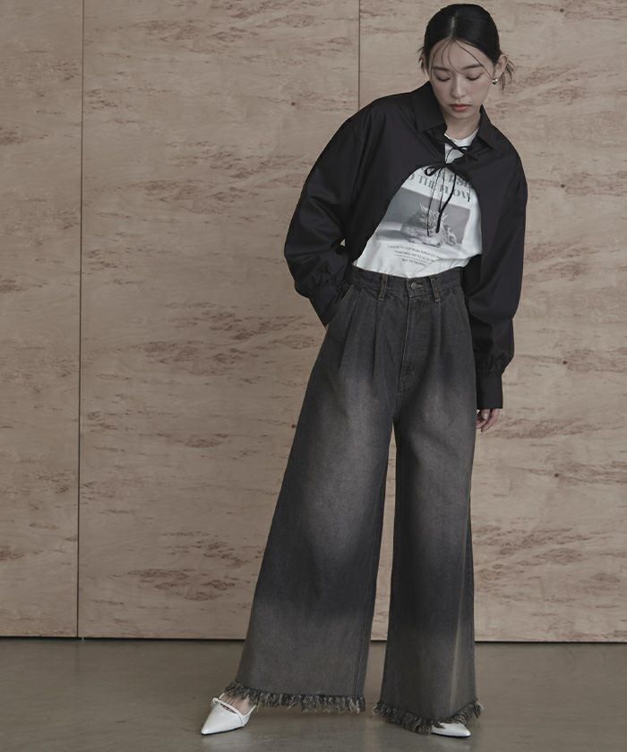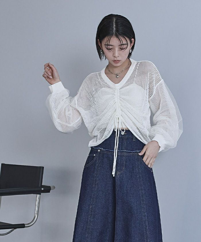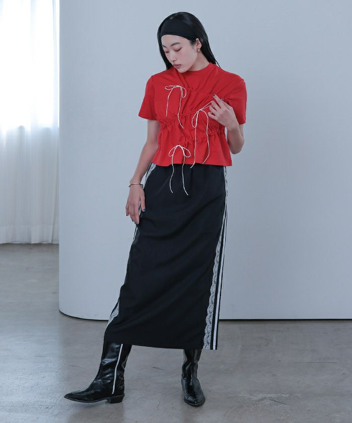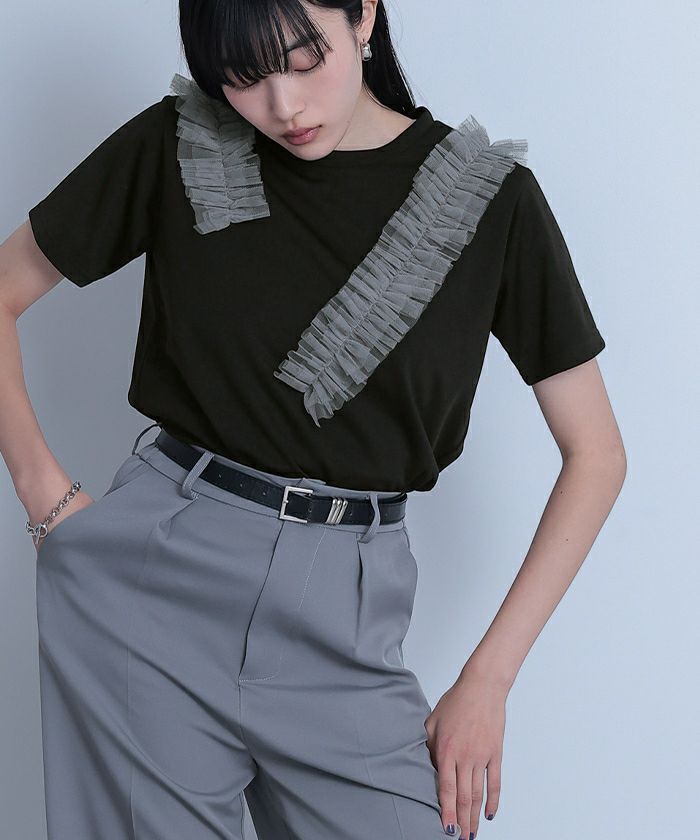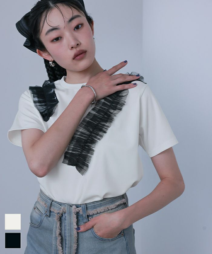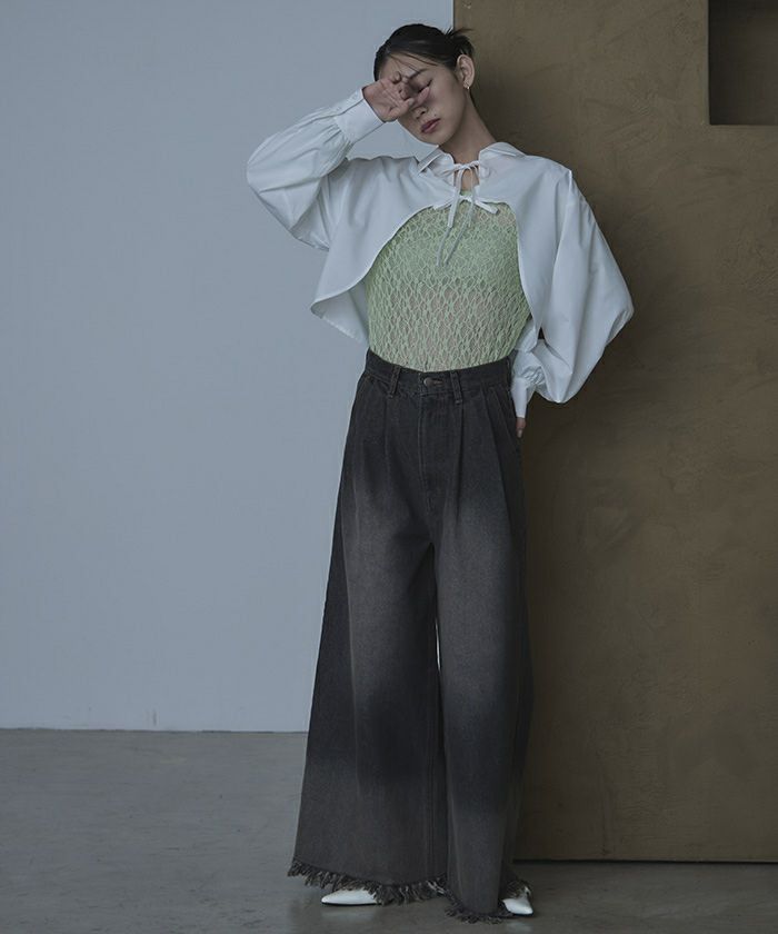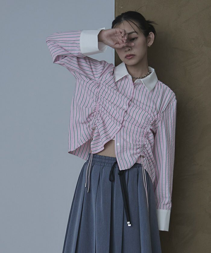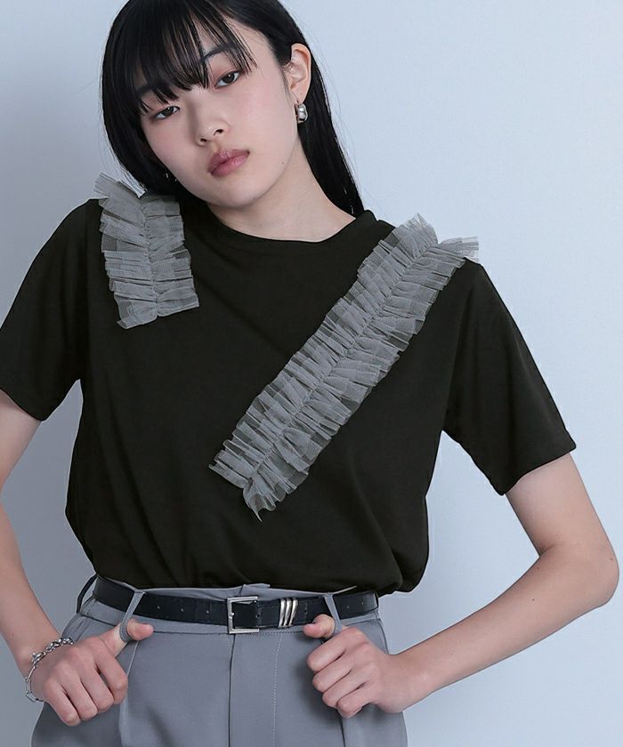フロントリボンパフスリーブシャツ〔メール便可/100〕