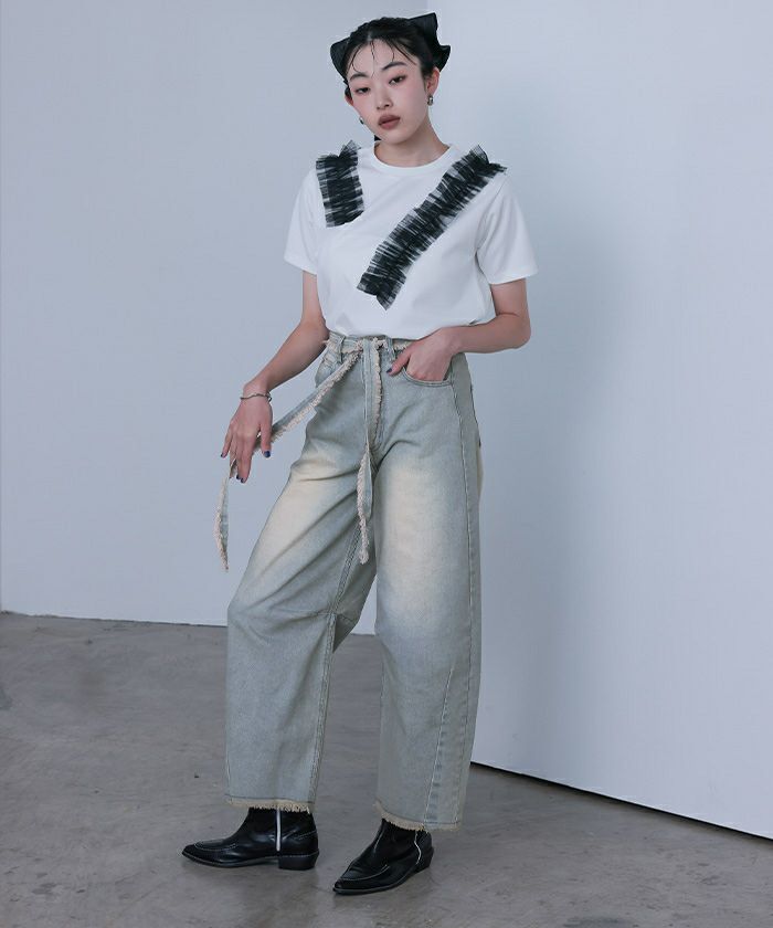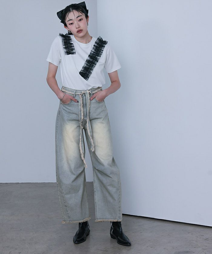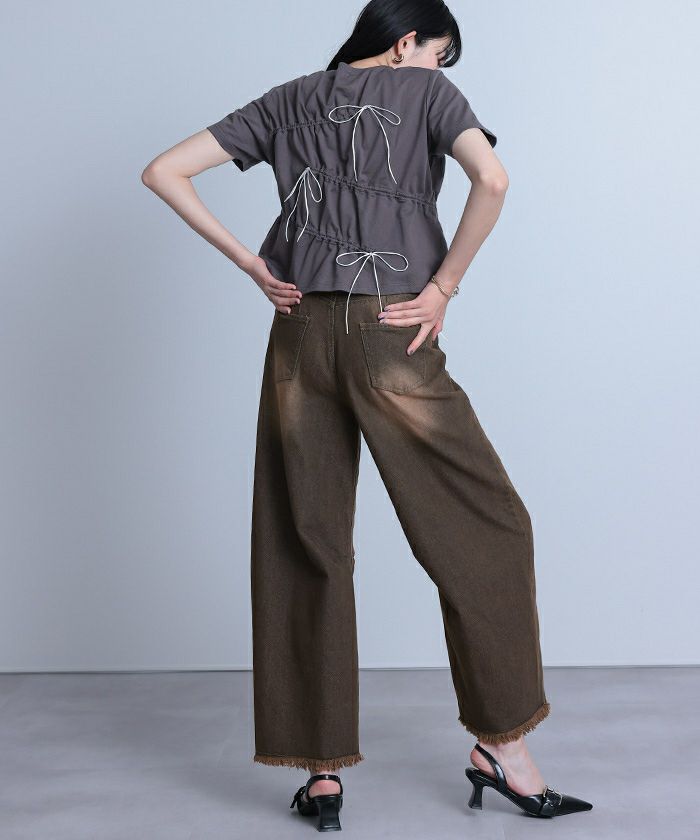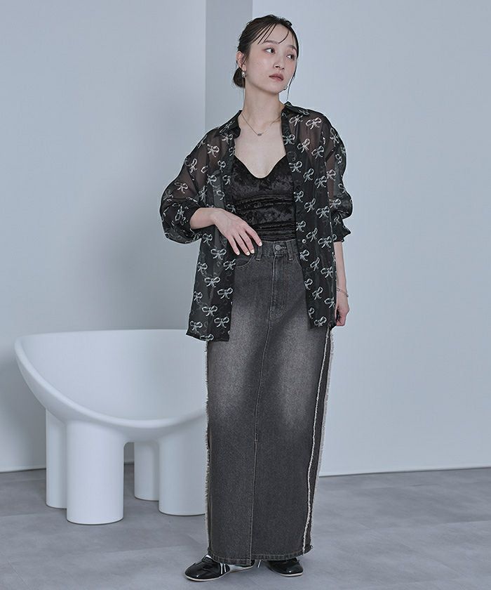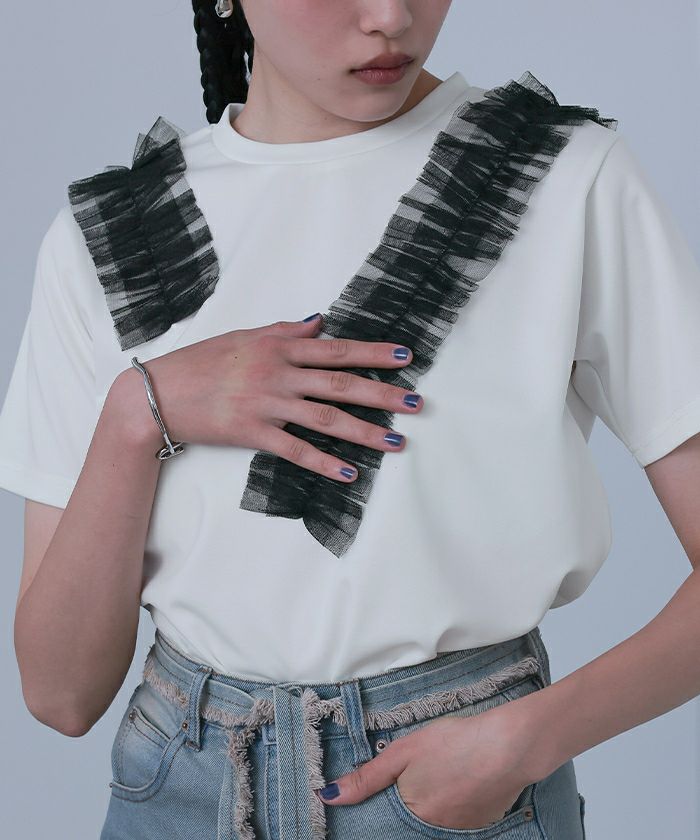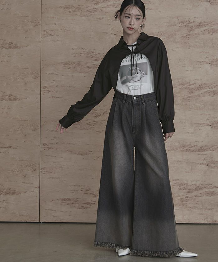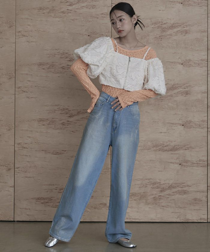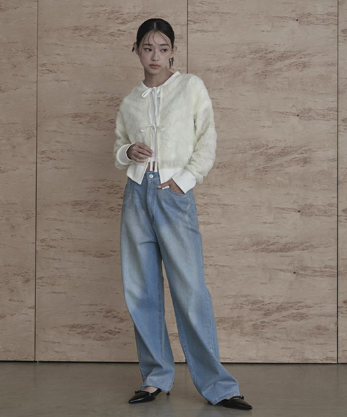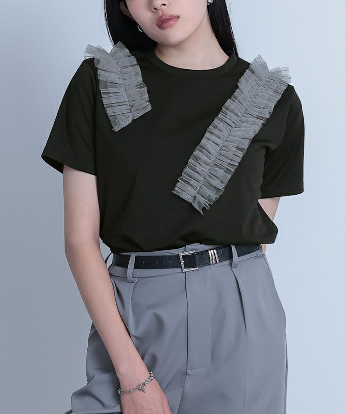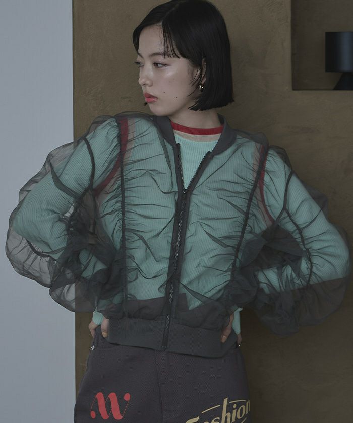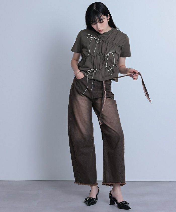 フロントリボンパフスリーブシャツ〔メール便可/100〕