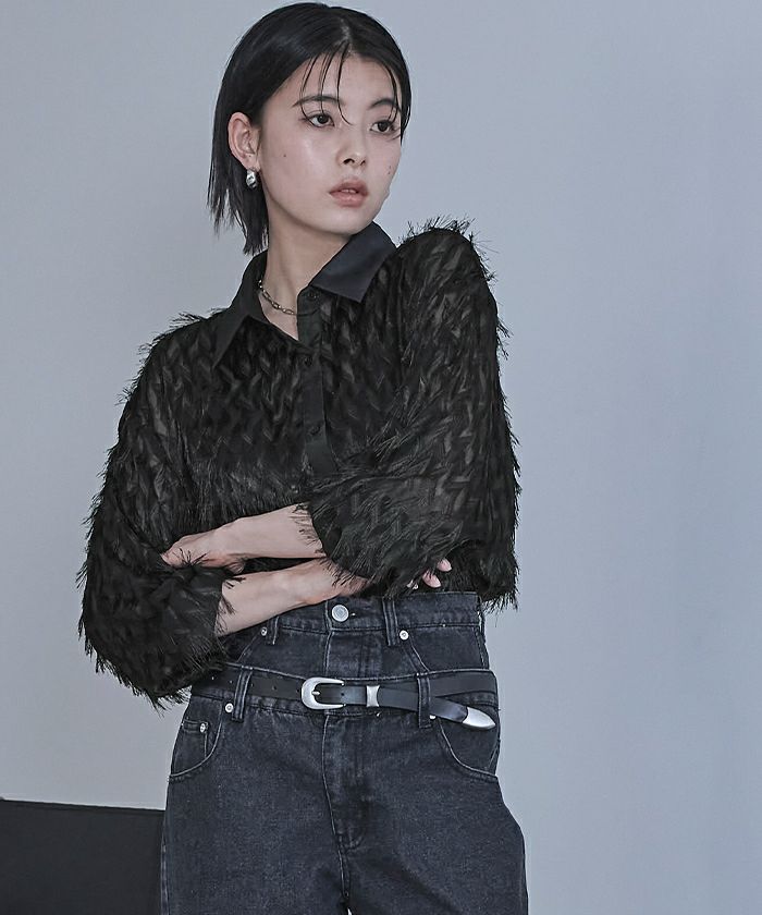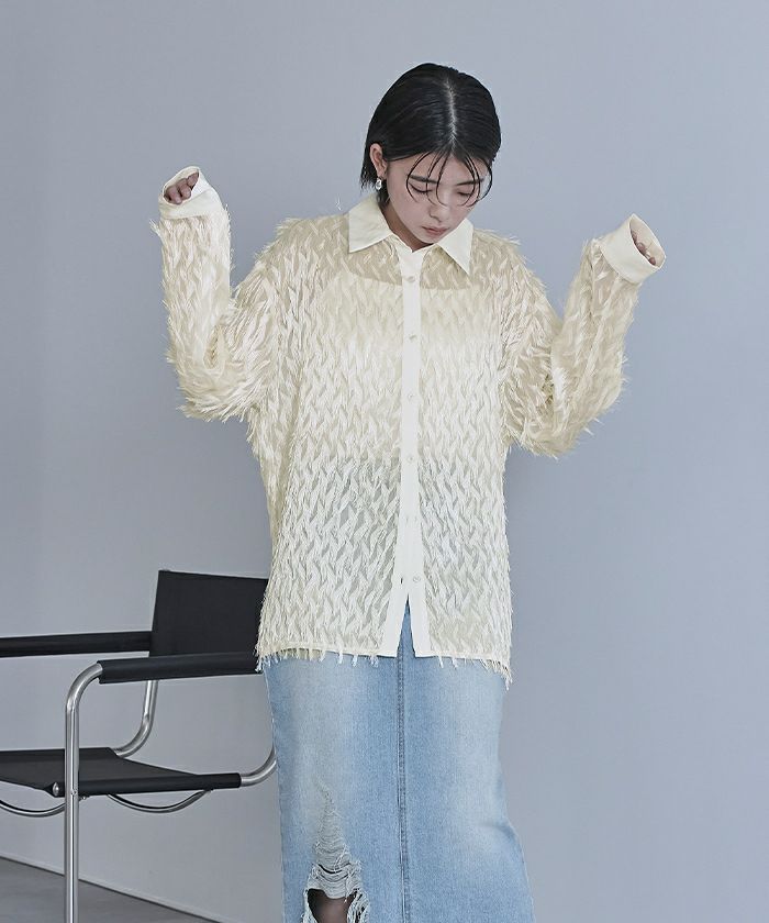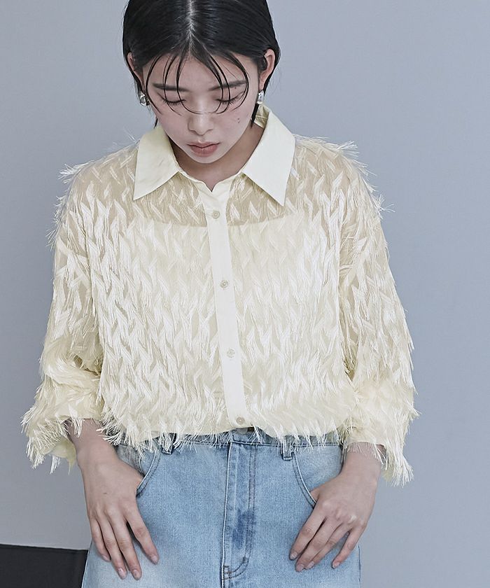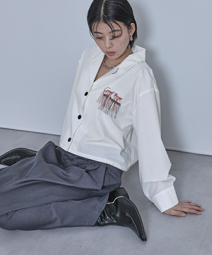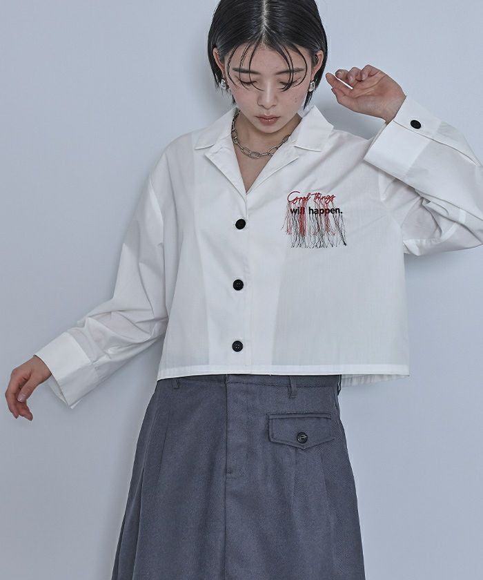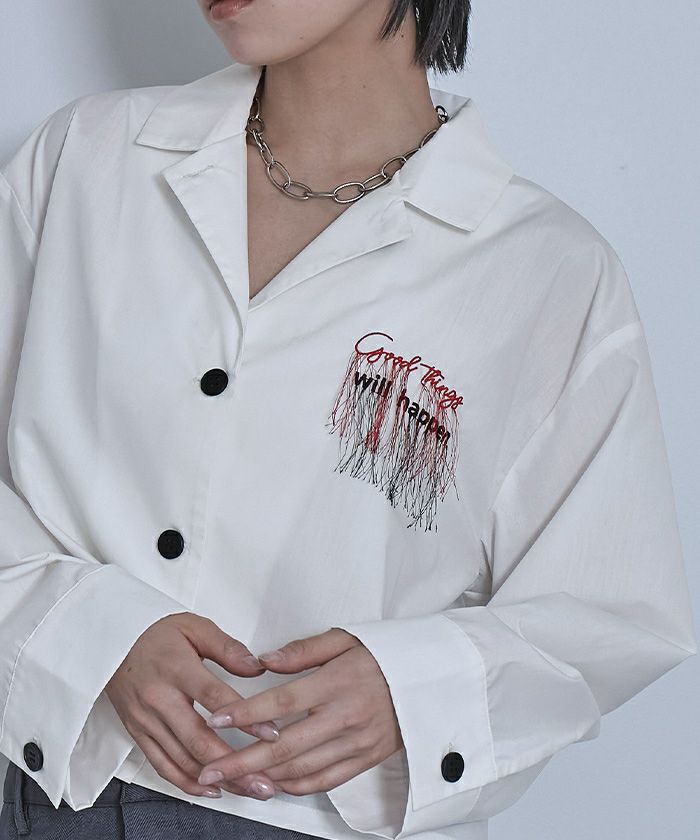 フリンジ刺繍開襟シャツ〔メール便可/100〕
