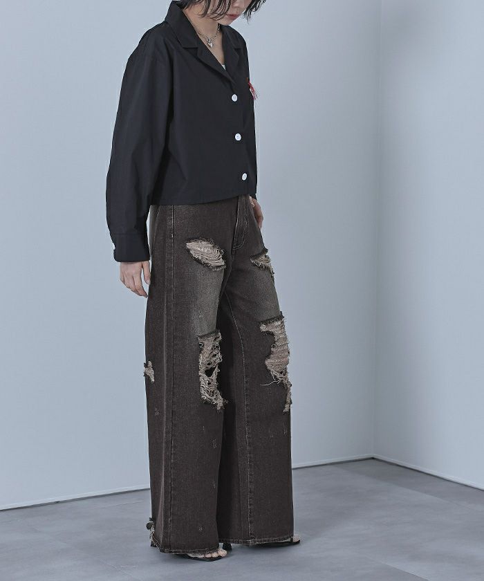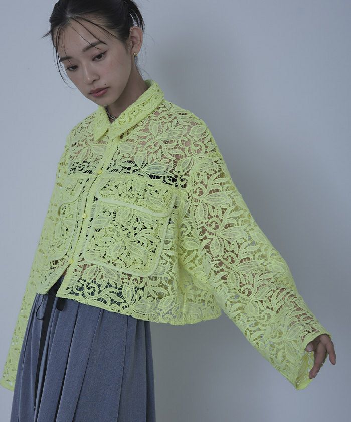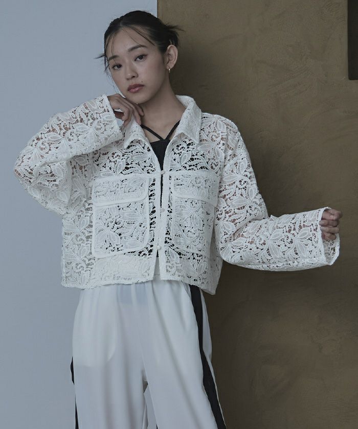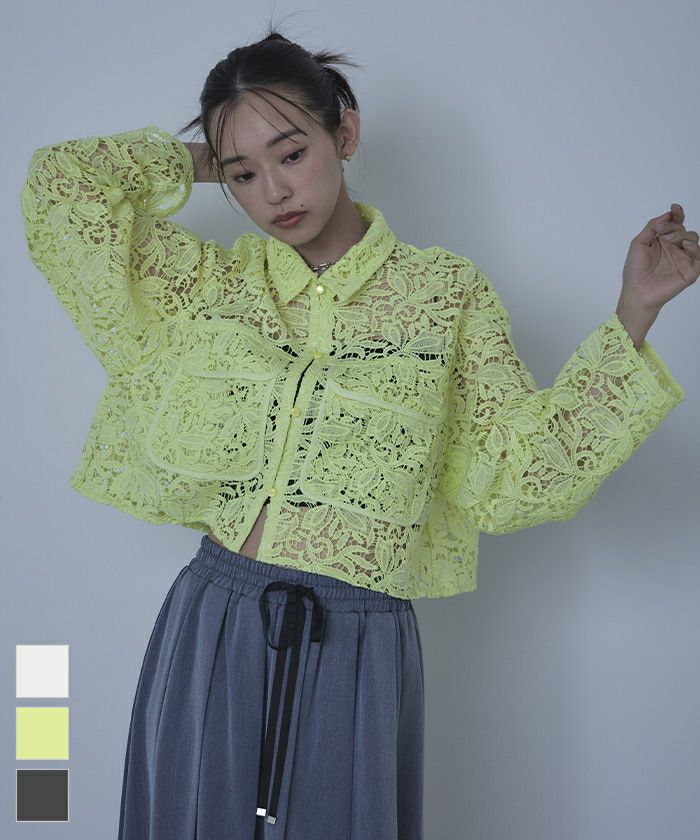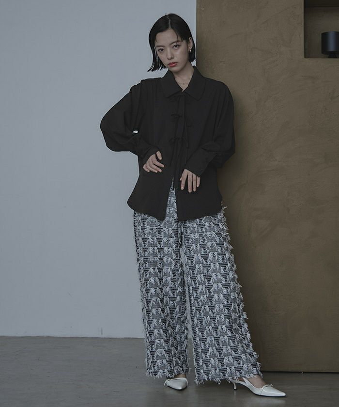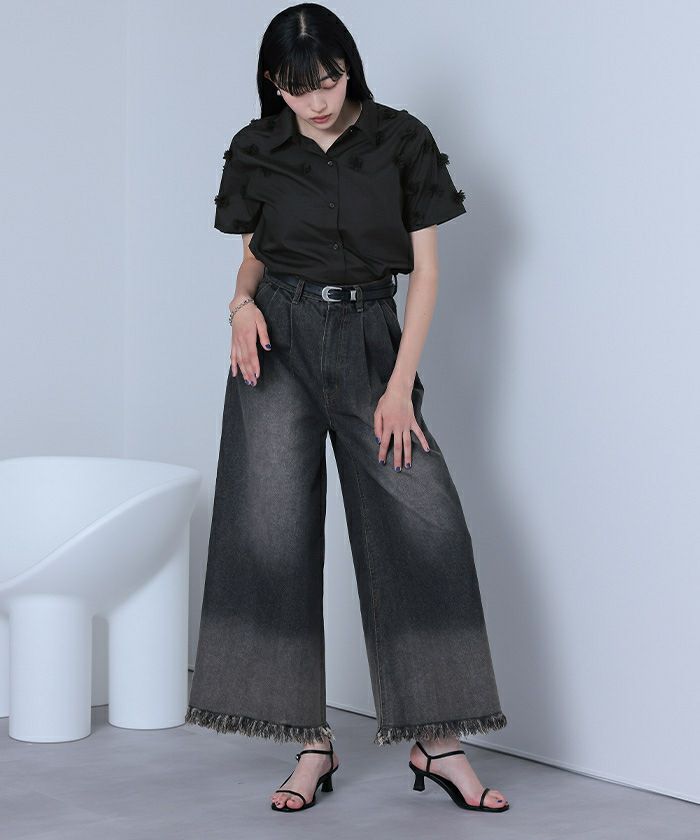 フリンジ刺繍開襟シャツ〔メール便可/100〕